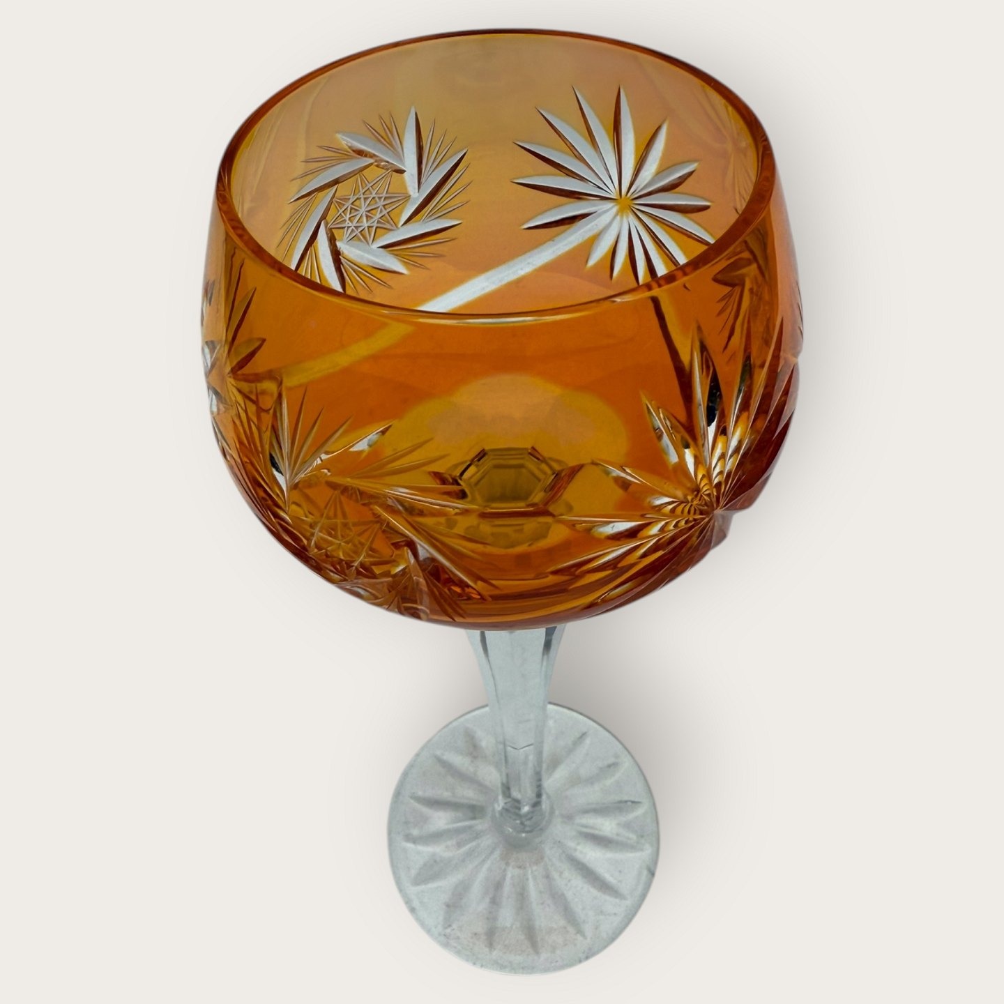 Bohemian crystal glass, Wine glass with cuts, Yellow, 19.5cm high, 8cm in diameter *Perfect condition*Stock: 1