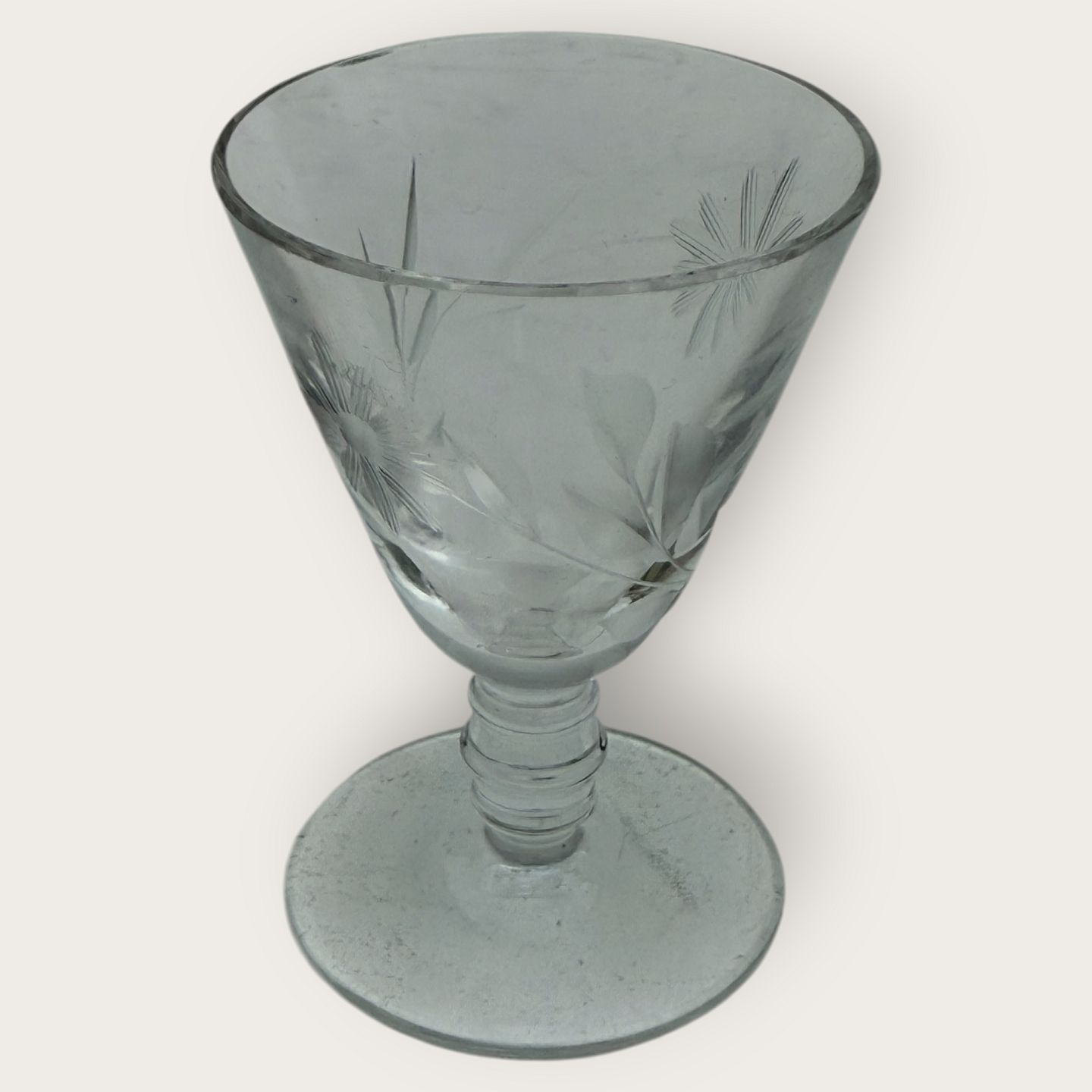 Schnapps glass with flower cuts, Height 6.5cm, diameter 4.5cm *nice condition*Stock: 5