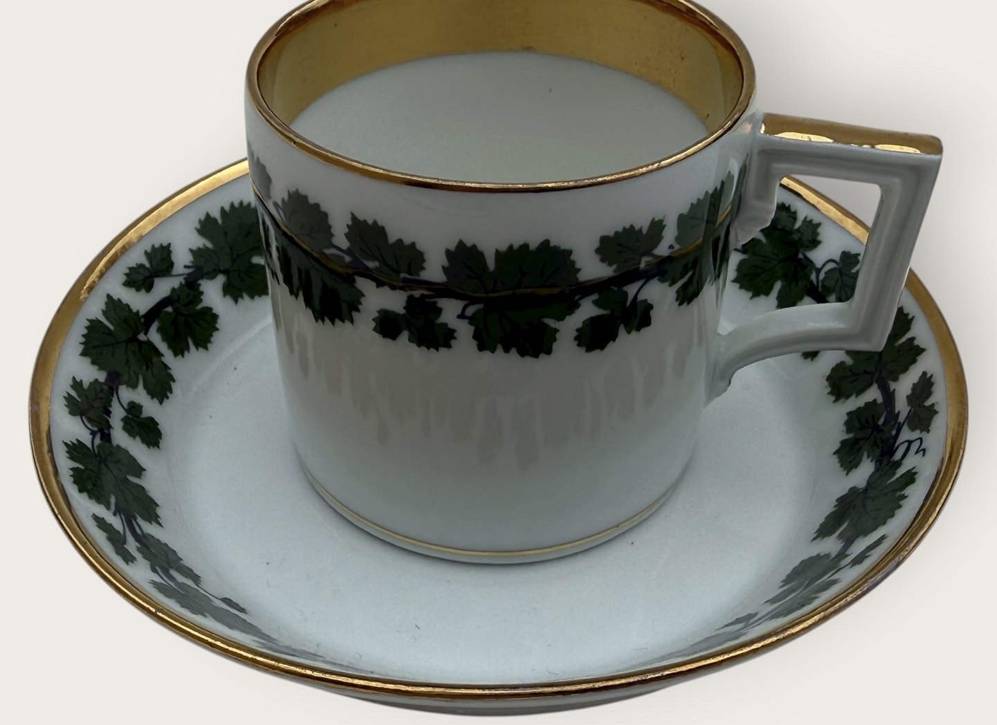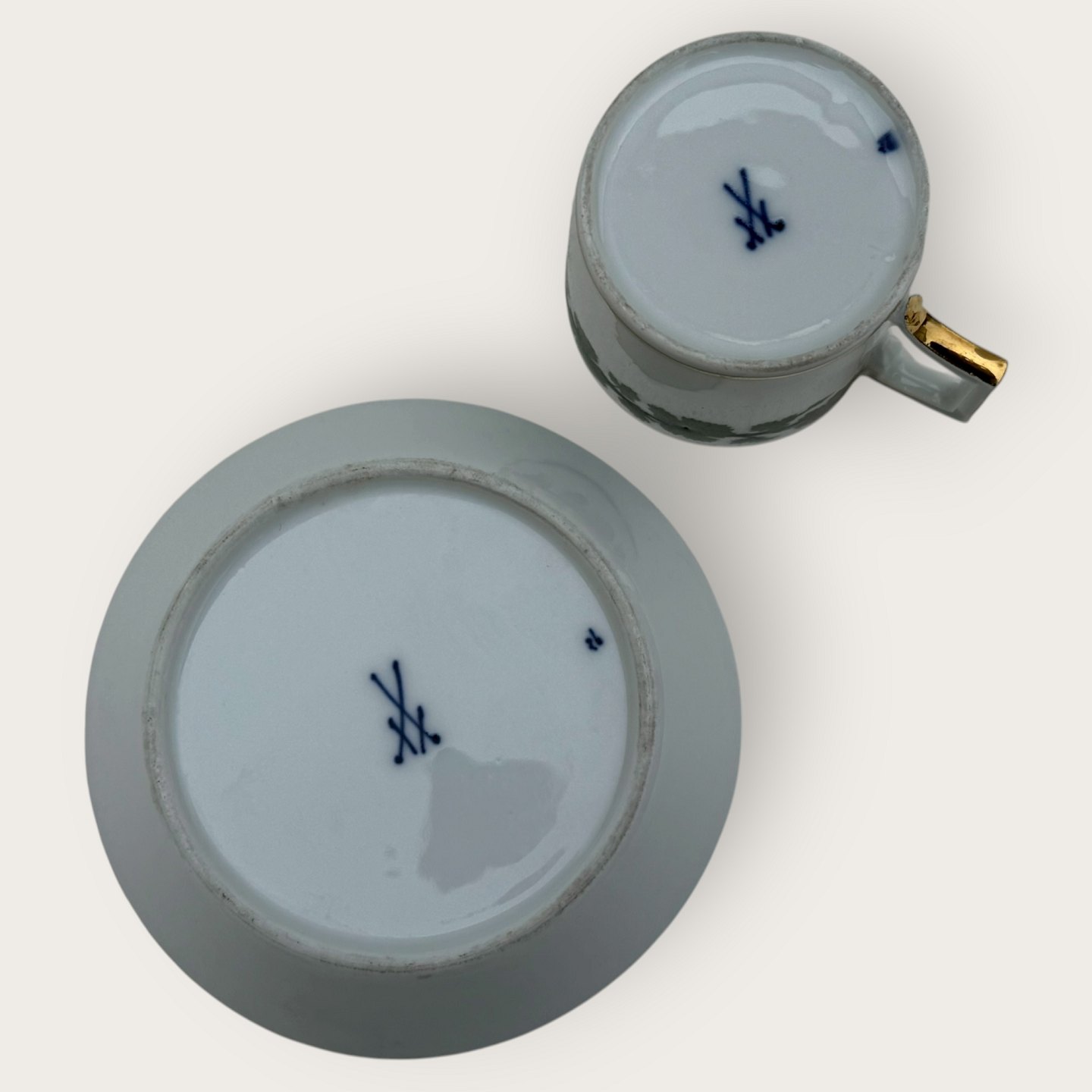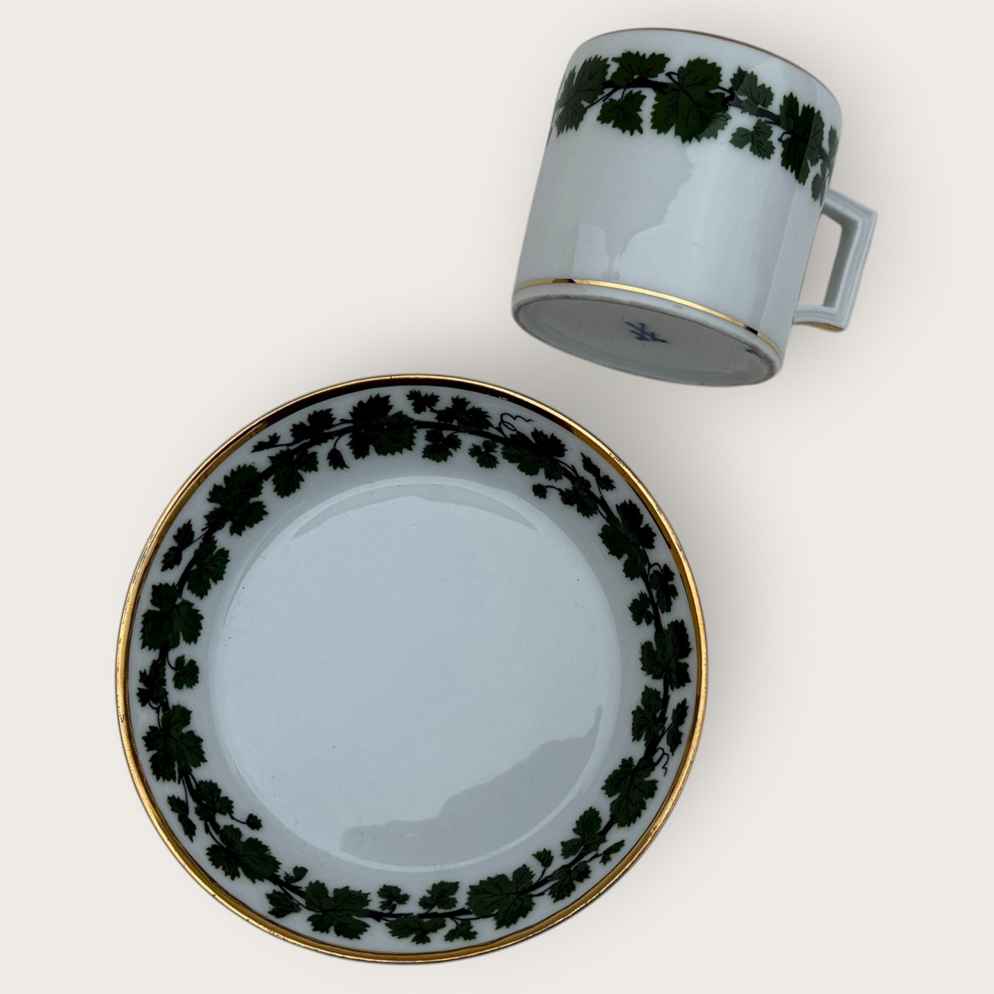 Meissen, Small coffee cup with vine leaves and gold edges, height 5cm, diameter 5cm *fine condition*Stock: 1