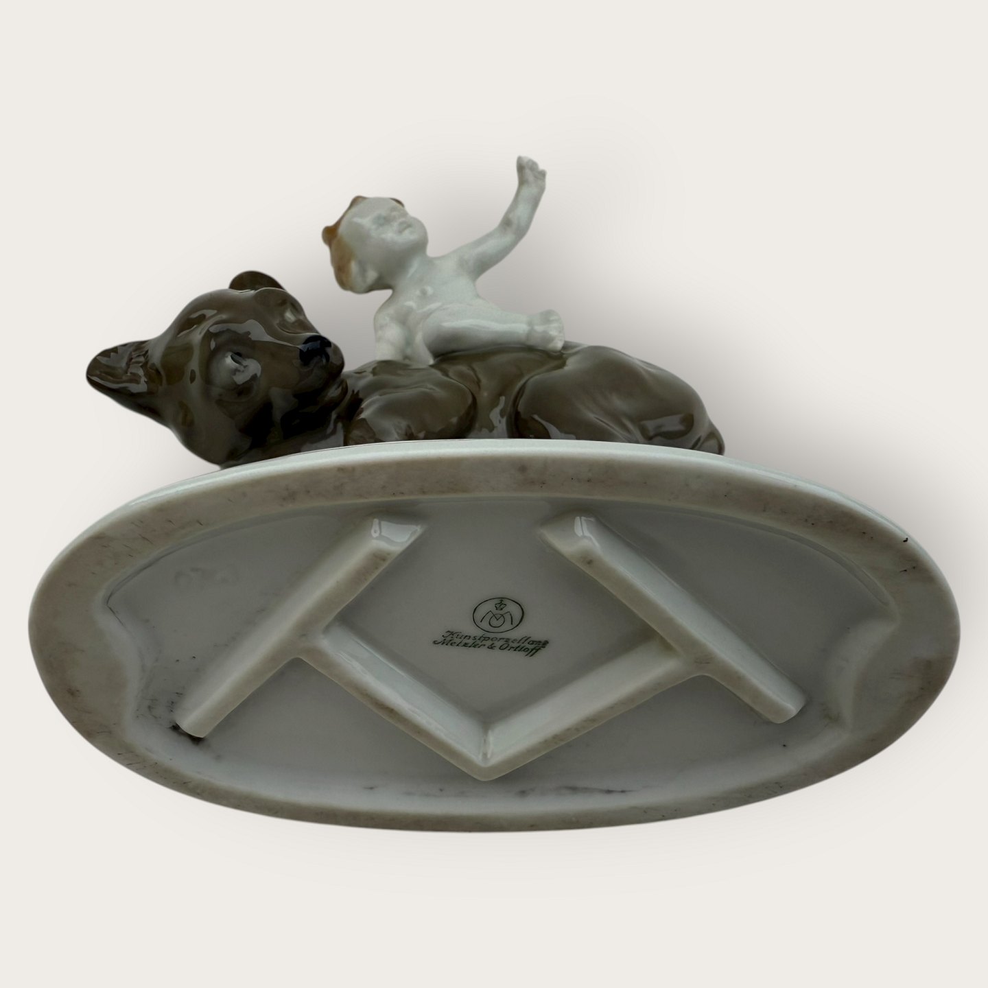 Metzler & Ortloff, Boy on bear, approx. 12x14.5cm *fine condition*Stock: 1
