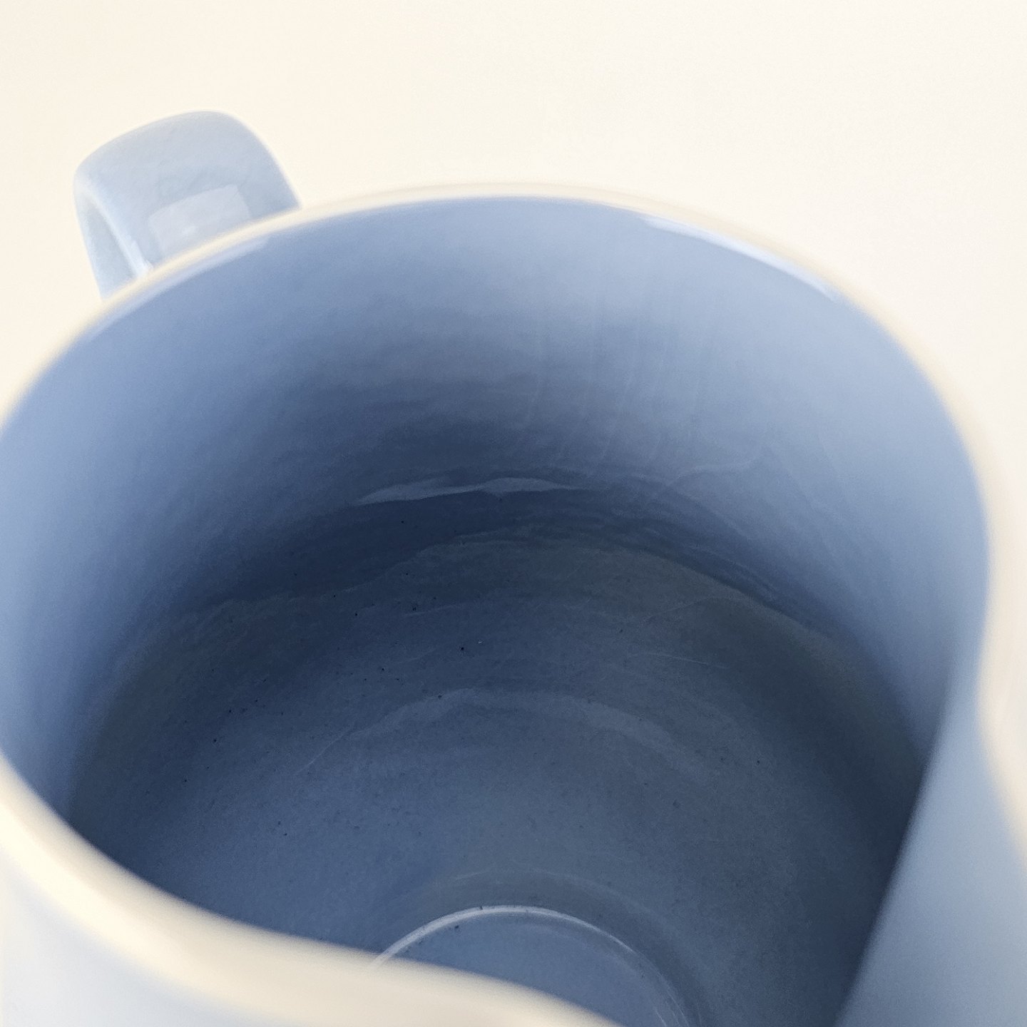 Fremstår med krakeleringer i glasuren og en farveforskel på indersiden