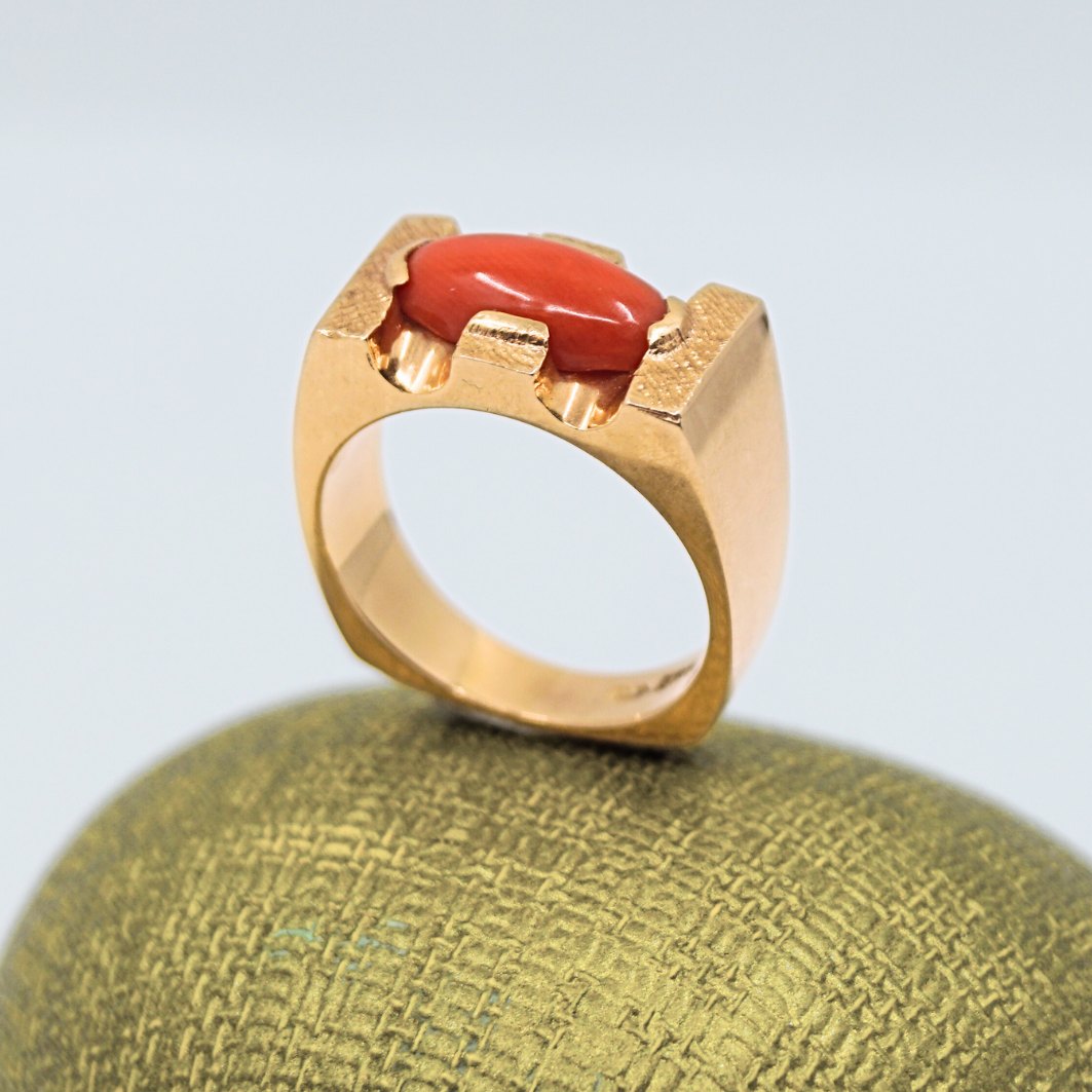 A ring in 14k gold. Set with a coral.Ring size 53.