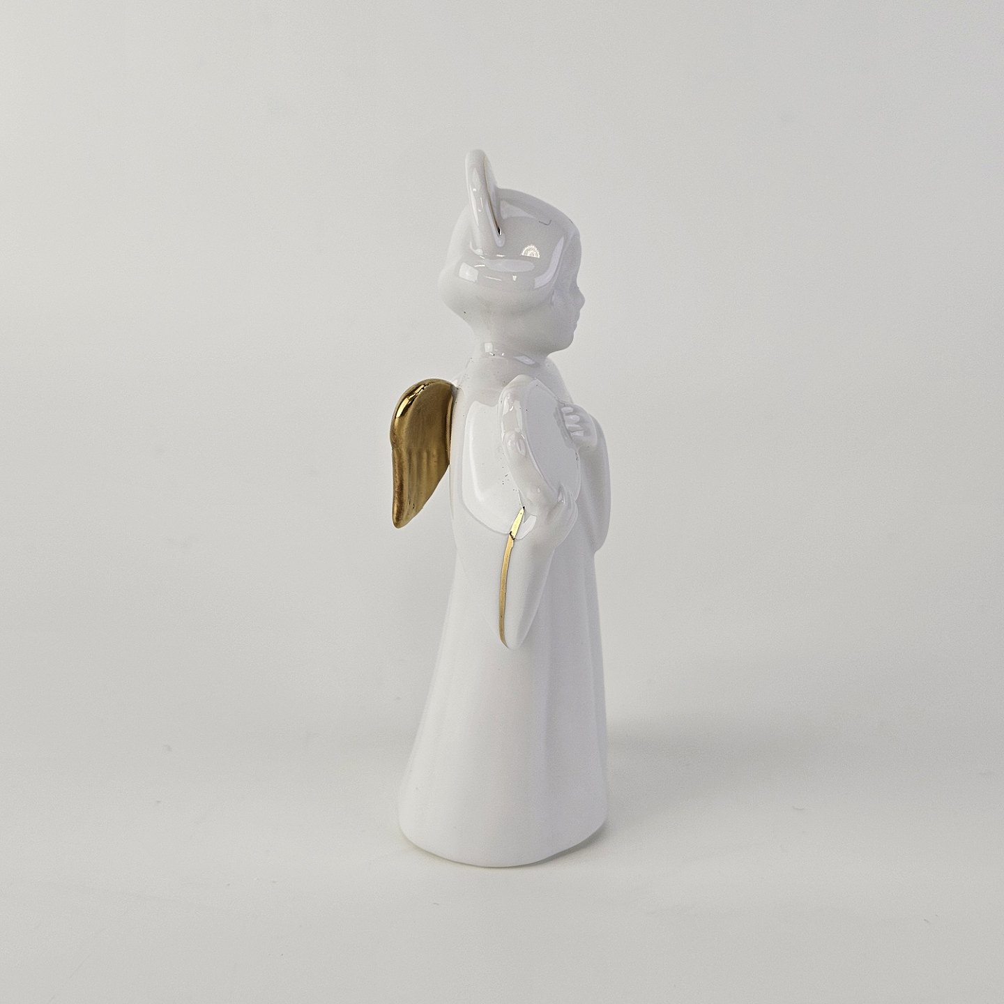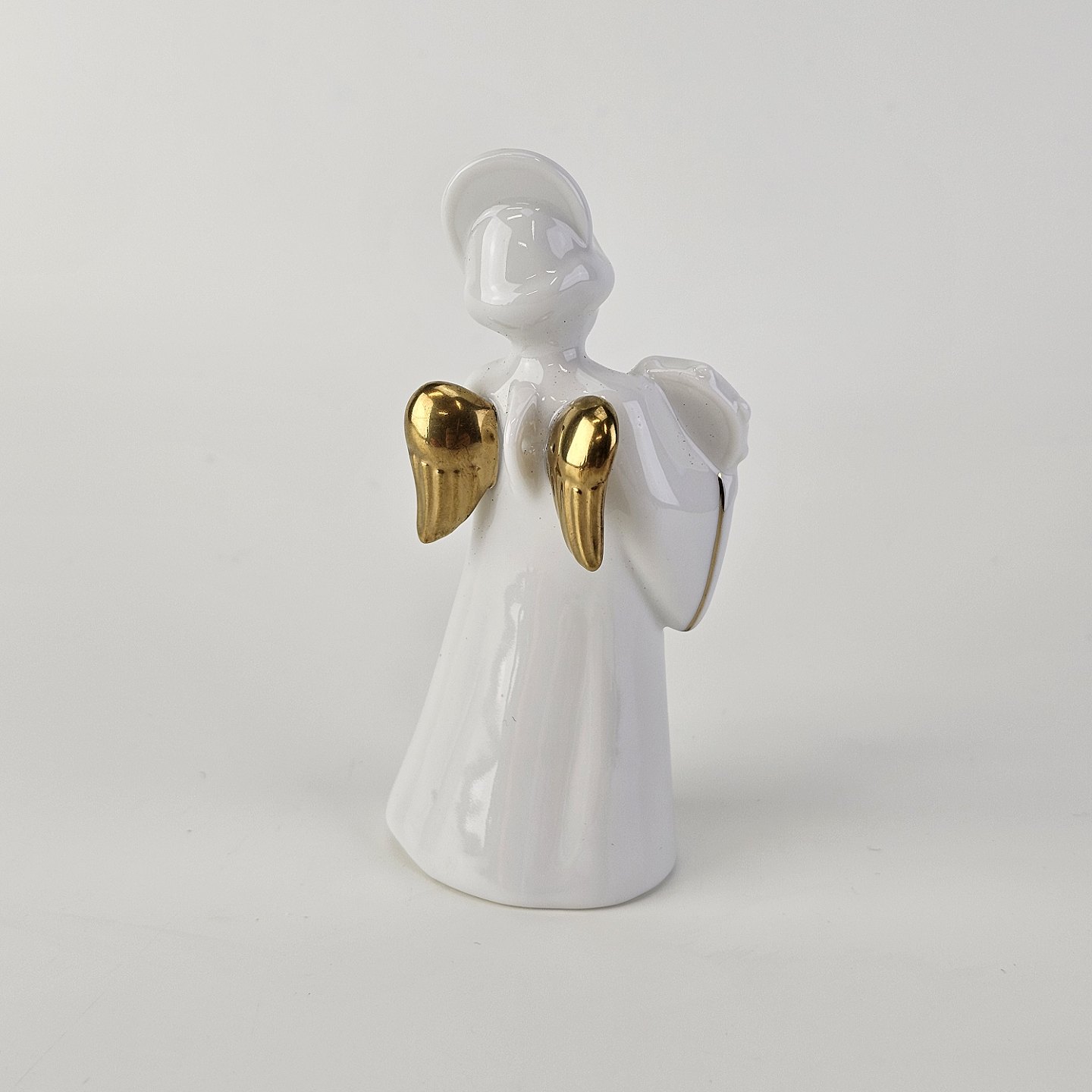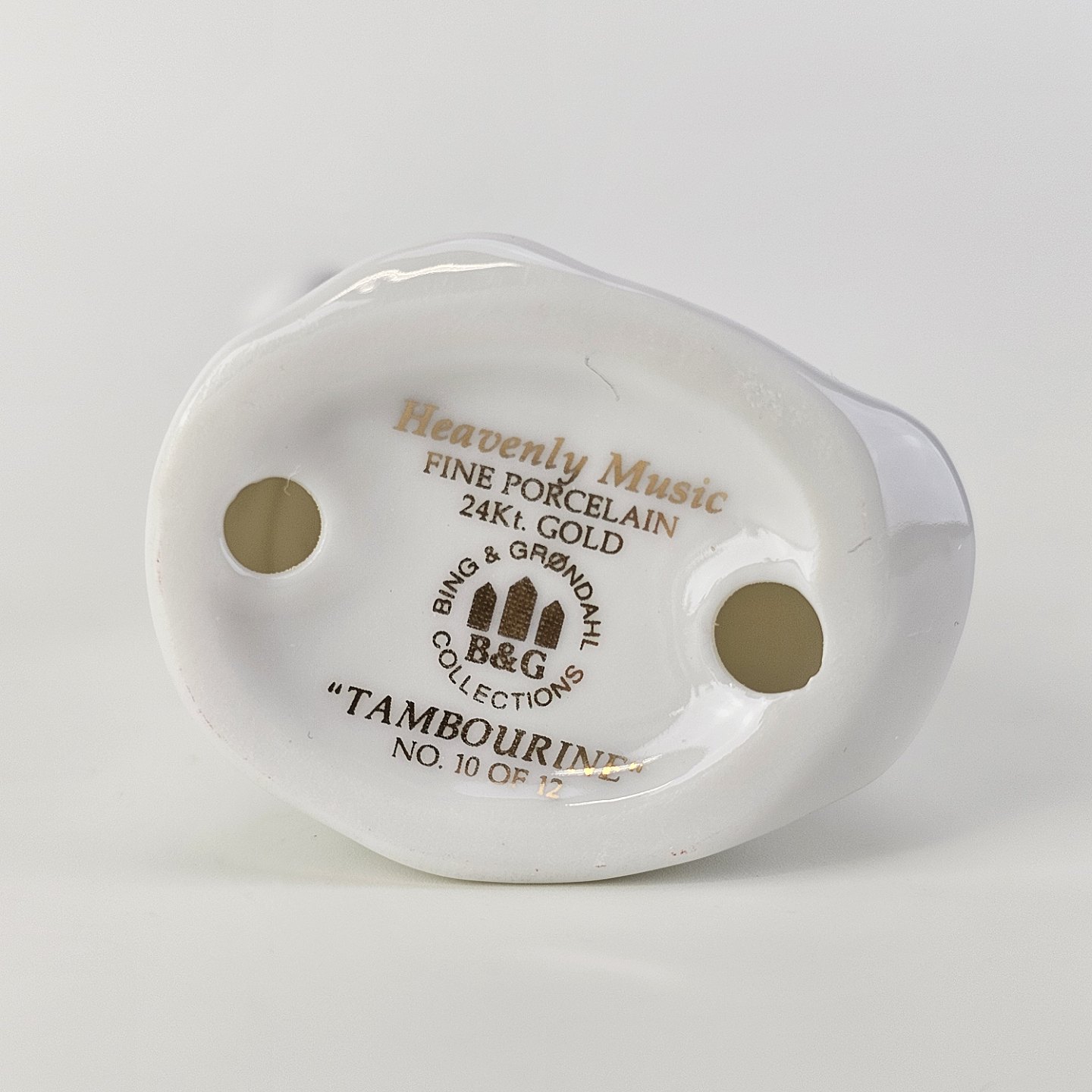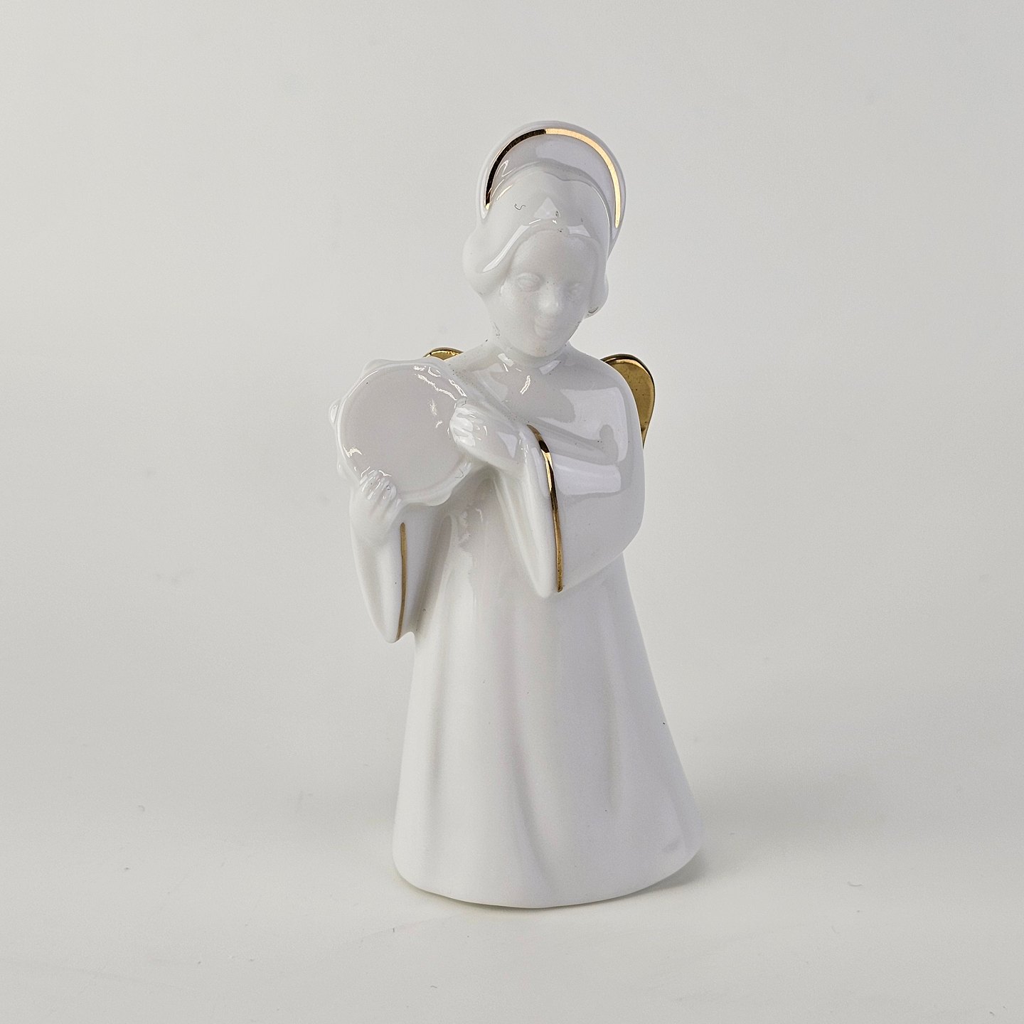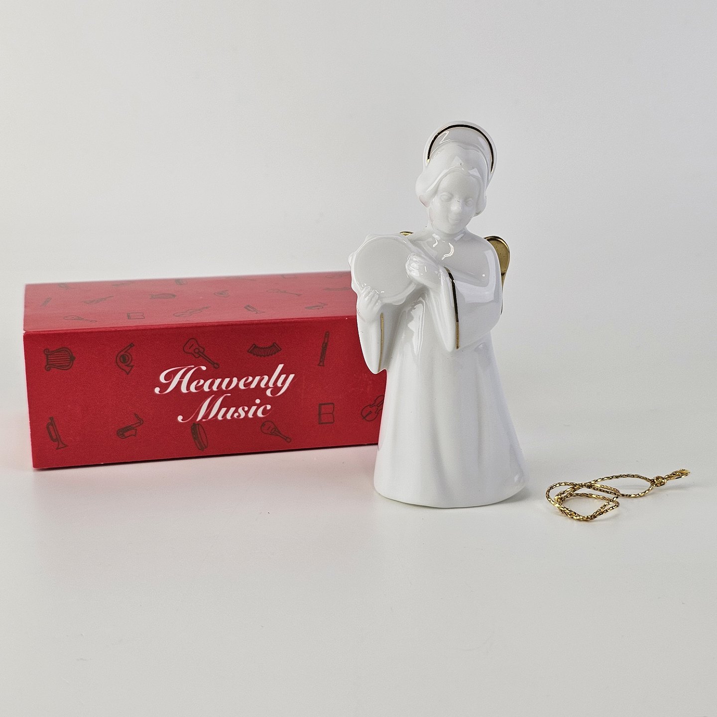 Figur med motiv af en engel med en tamburin. Figuren er i hvidt porcelæn med forgyldte vinger og detaljer i 24 karat guld. 10 af 12 i serien Heavenly Music med titlen Tambourine