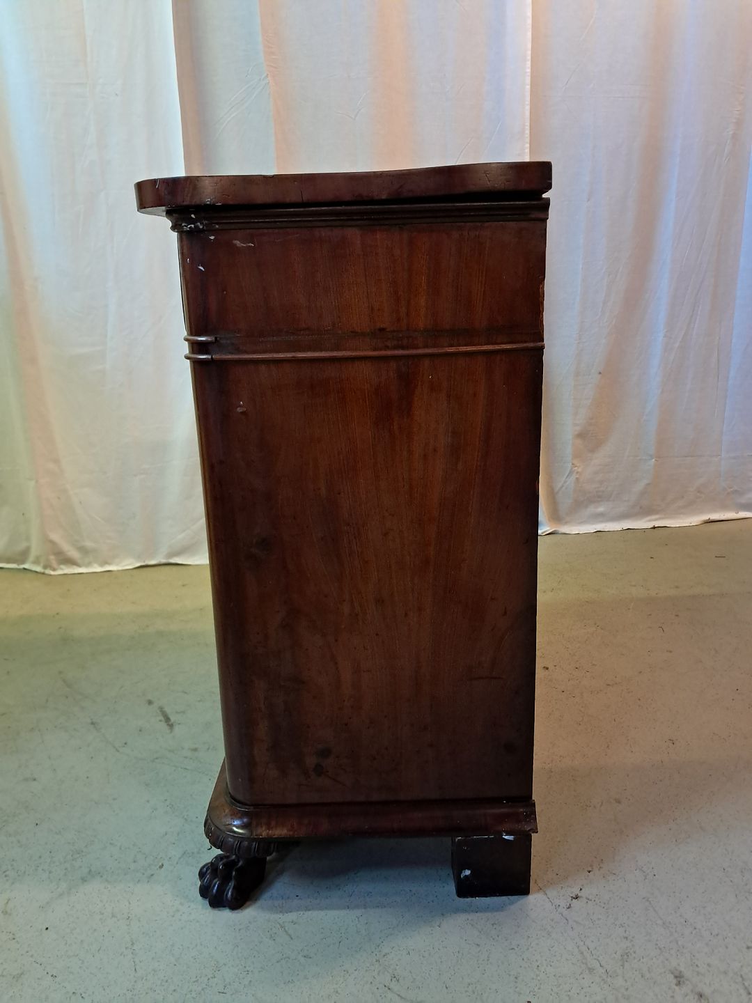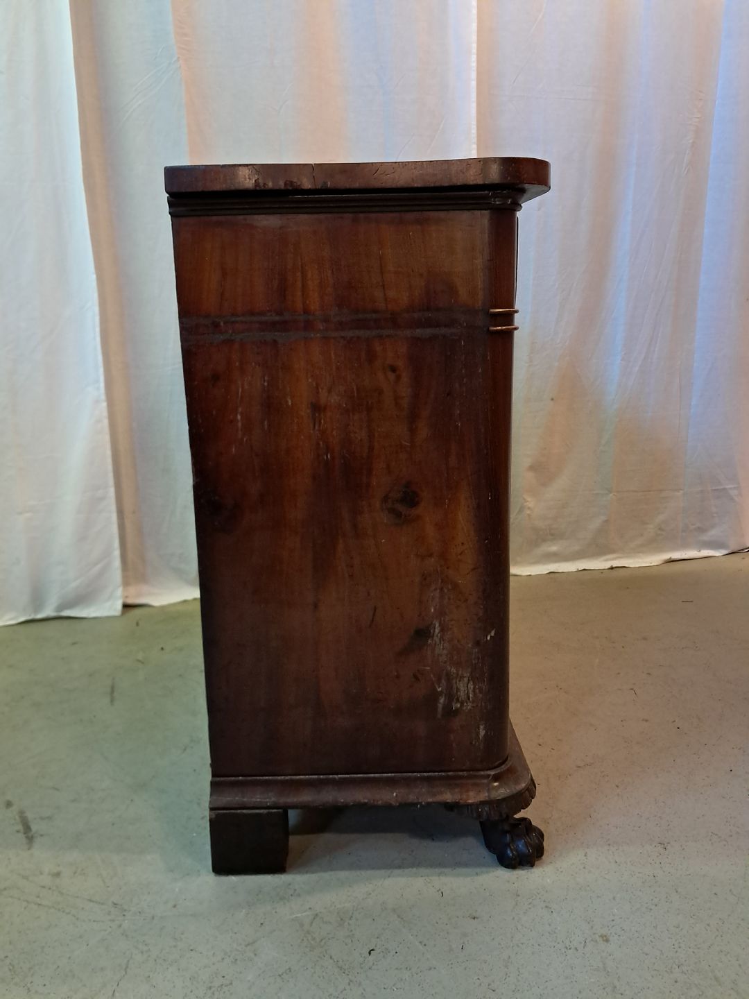 Skab i fineret mahogni, fra 1900erne.Det har brugsspor.
