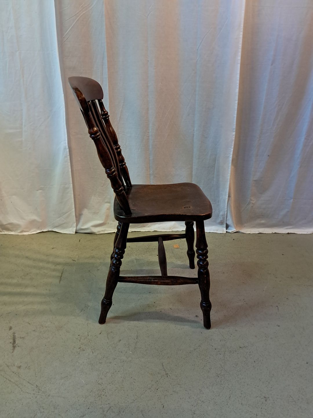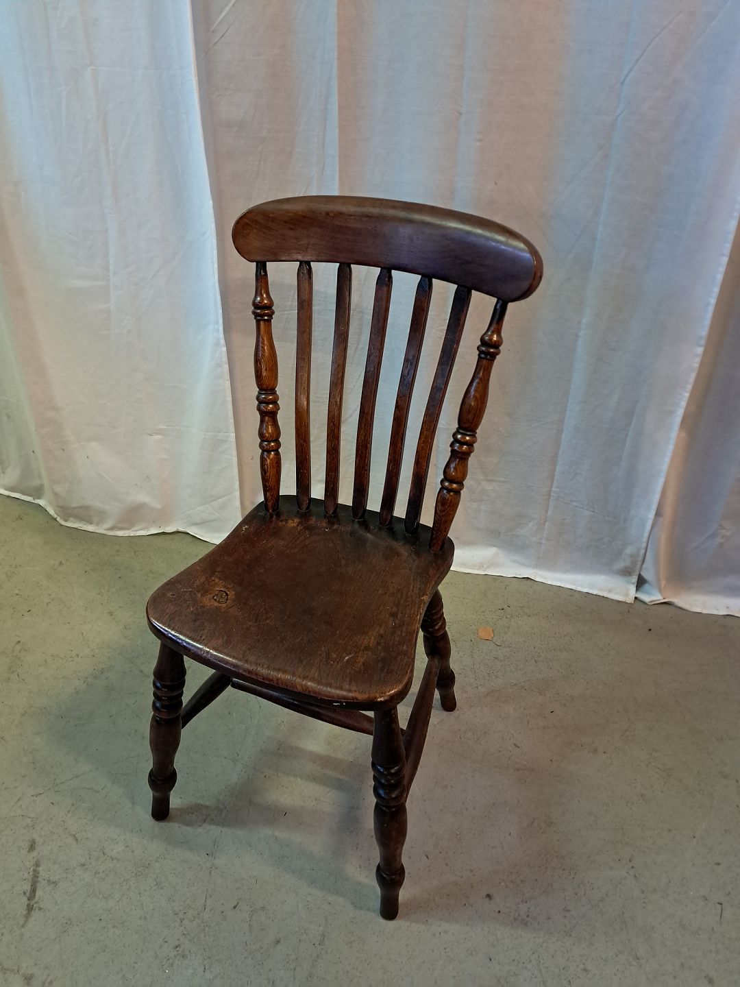 Stol i massivt egetræ, fra 1920erne.Den har brugsspor.