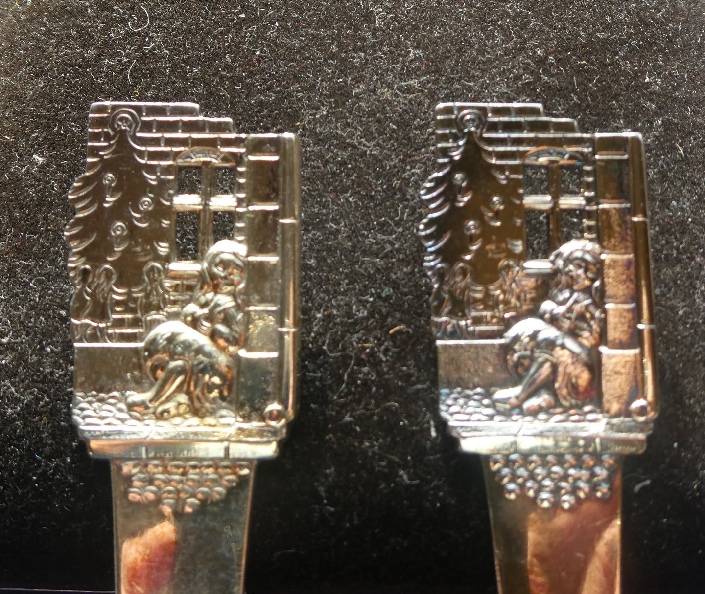 Fairy tales Danish child's cutlery kids cutlery in three Towers gold-plated silver with the Little Match-Seller.H.C. Andersen's fairy tales kids cutlery.