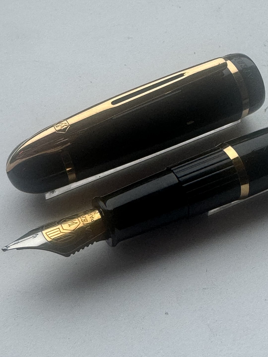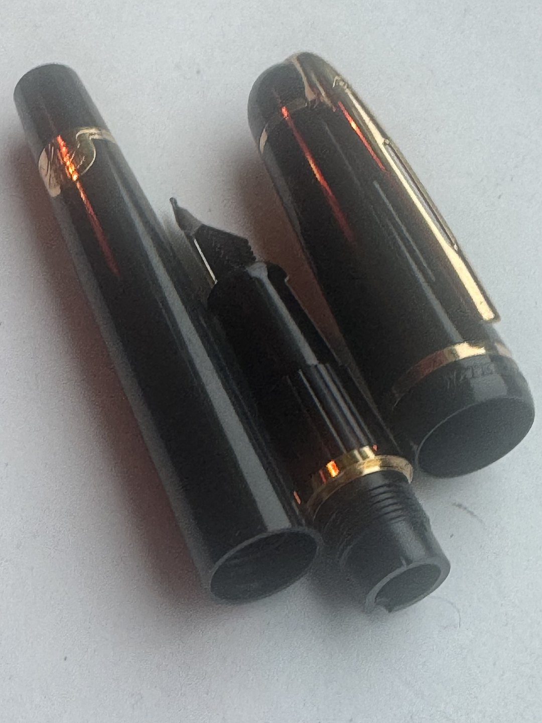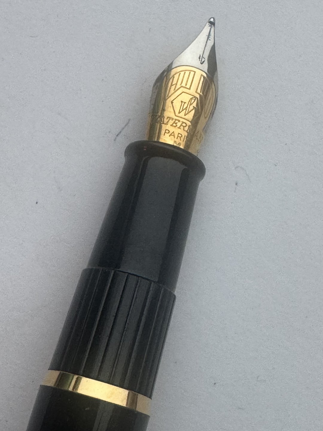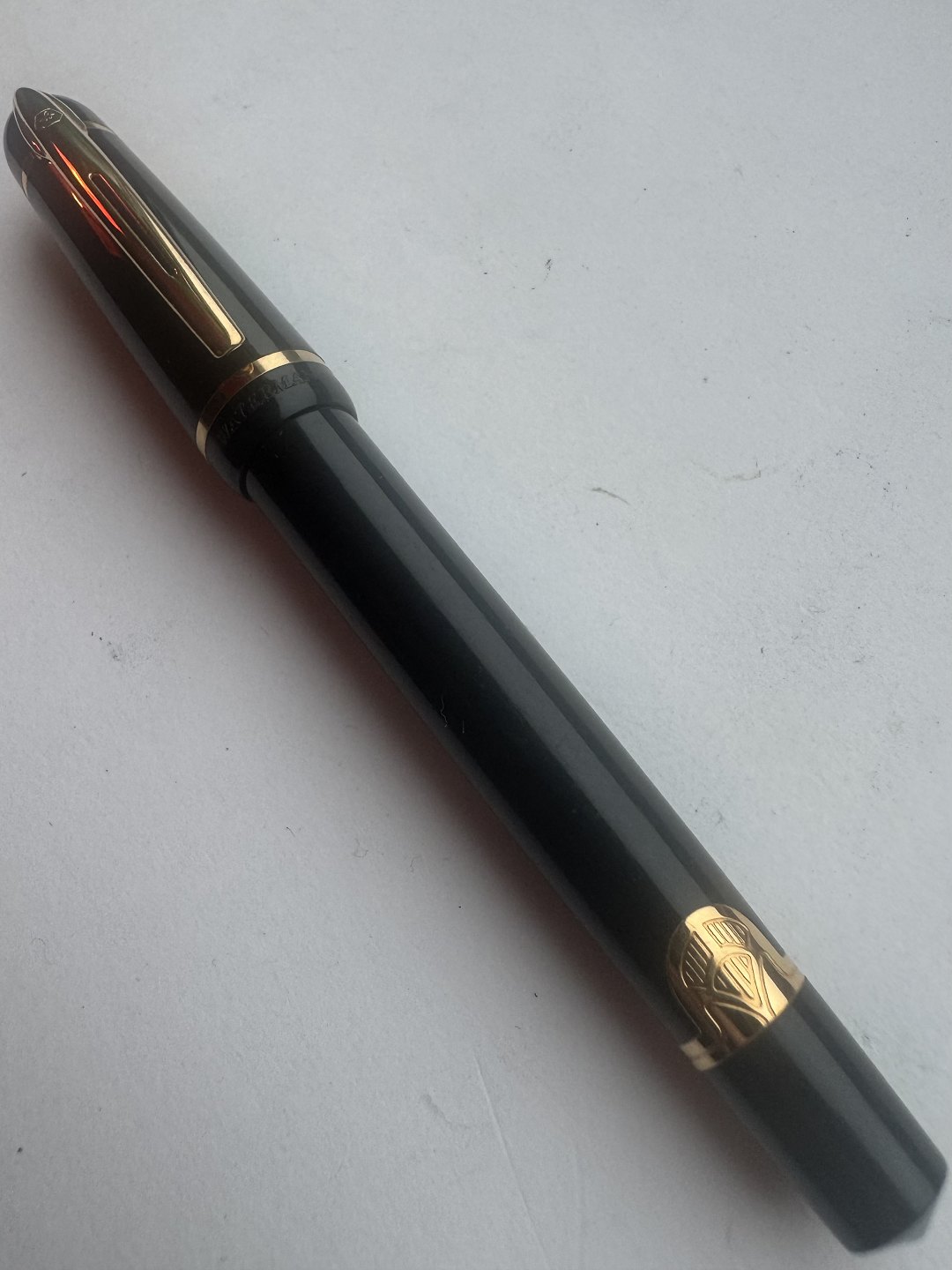 Modern black Waterman fountain pen. Made in France. Cartridge ink refill (ink cartridge). In good condition. Ready to write when buyer has purchased ink cartridges. 13.5 cm long Dealer