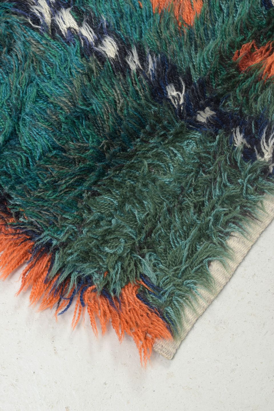 During the 1960s and 70s, rya carpets became central to Nordic modernism. Hand-knotted rugs like this one blended function and aesthetics, often inspired by the colours and rhythms of nature. The combination of deep hues and artisanal quality continues to make them highly collectible today.