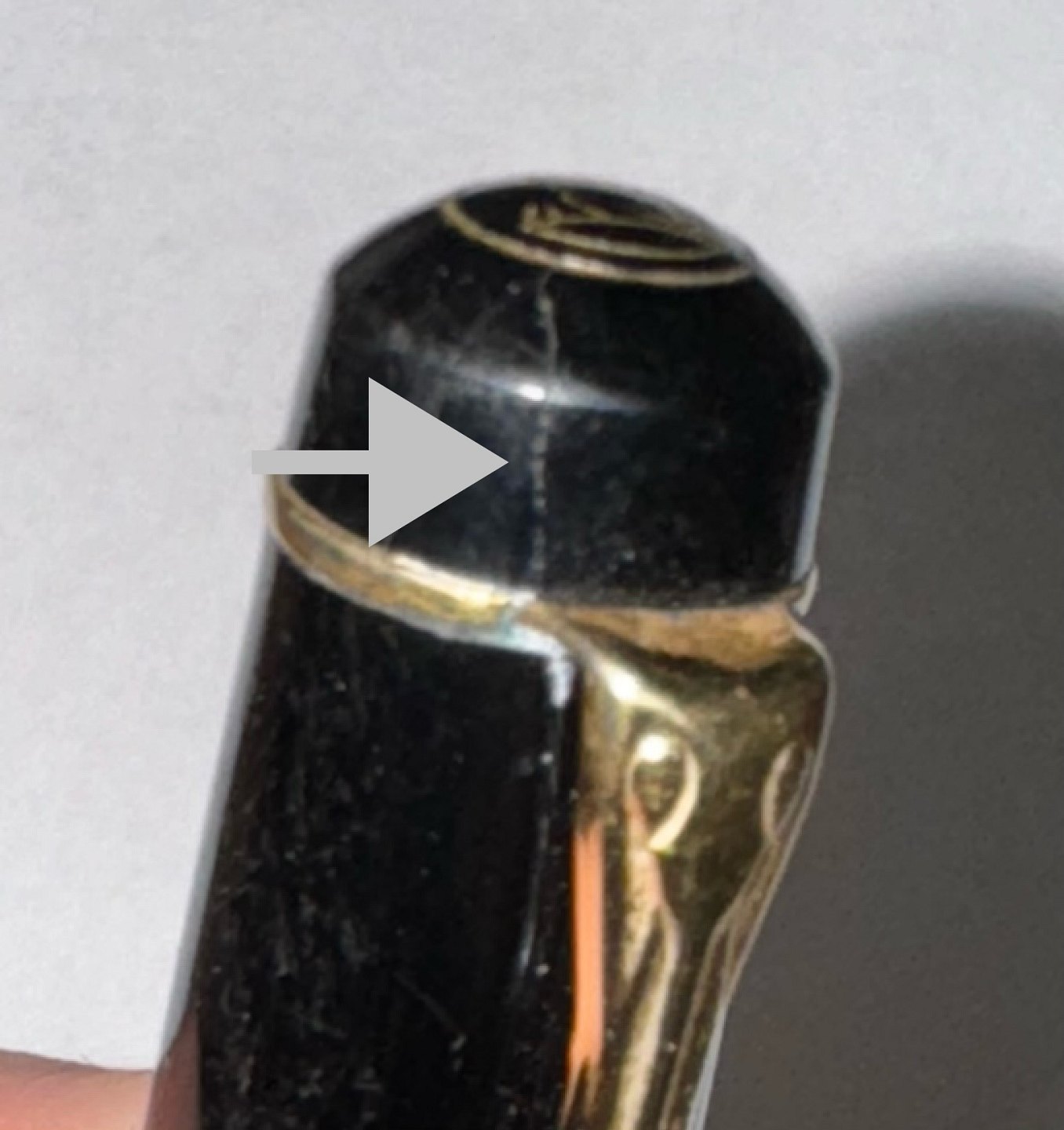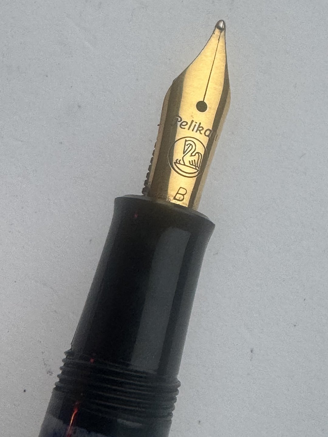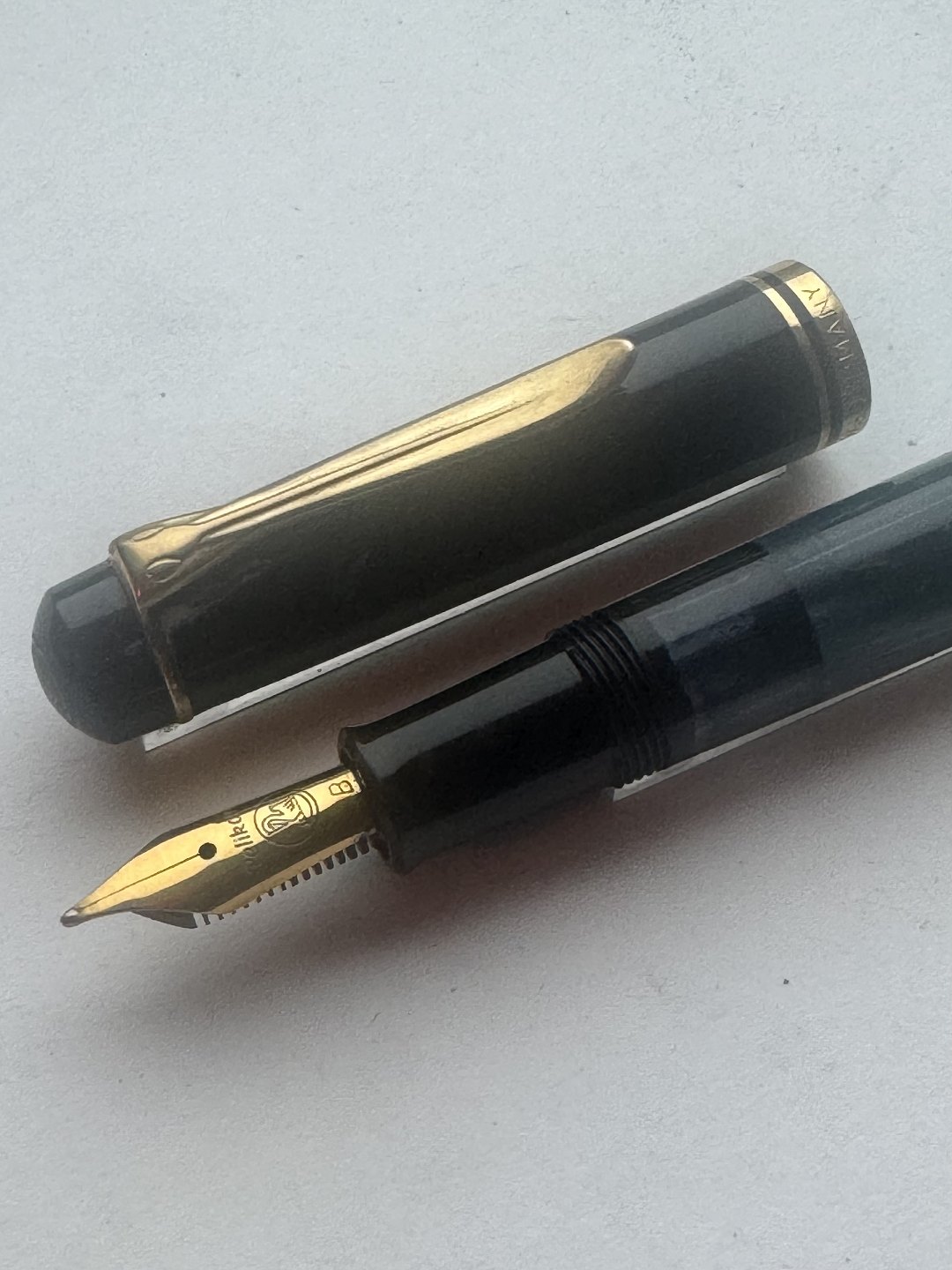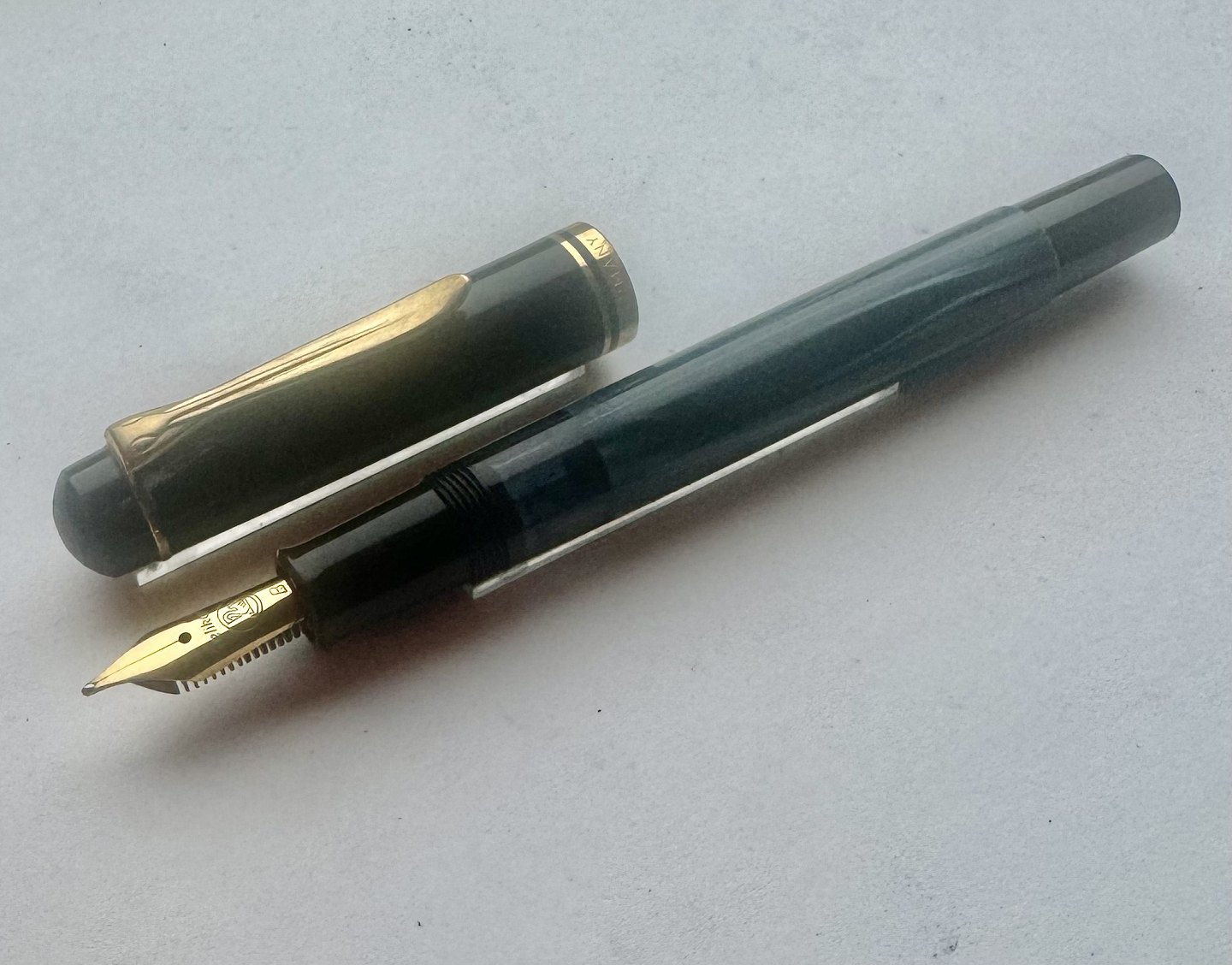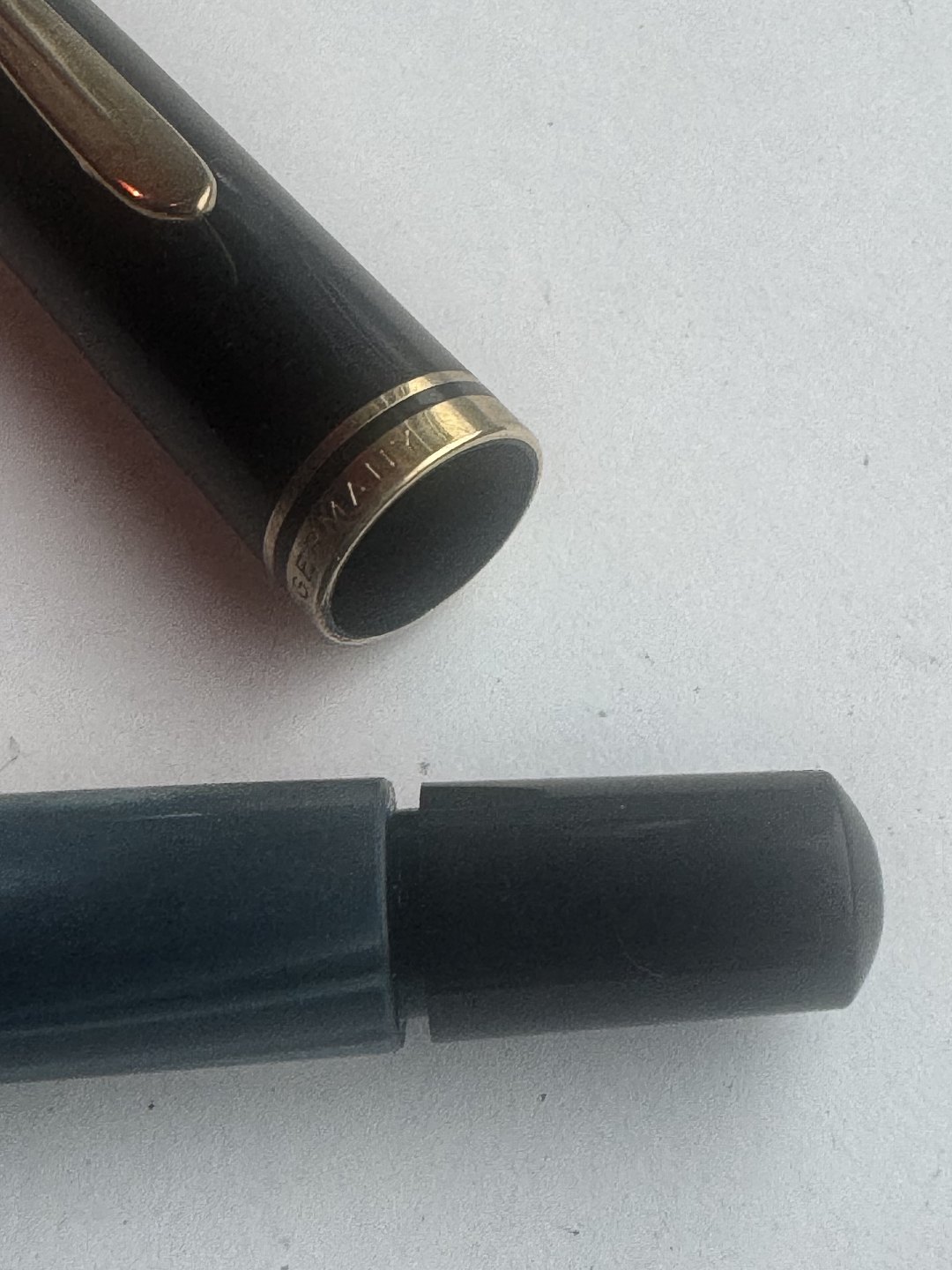 Pelikan M200 fountain pen. Made in West Germany in the 1970s. The small capsule with logo on top of the cap has a crack (see photo). Otherwise in good working condition. Dealer