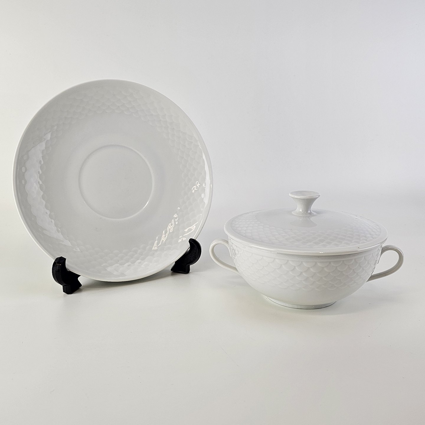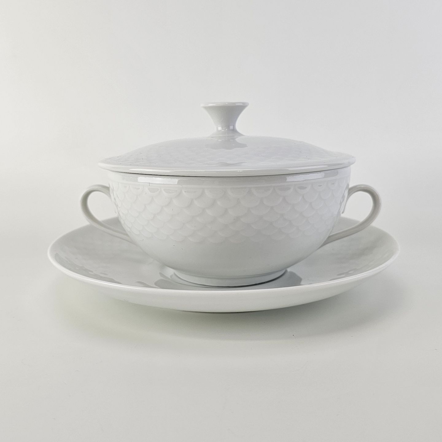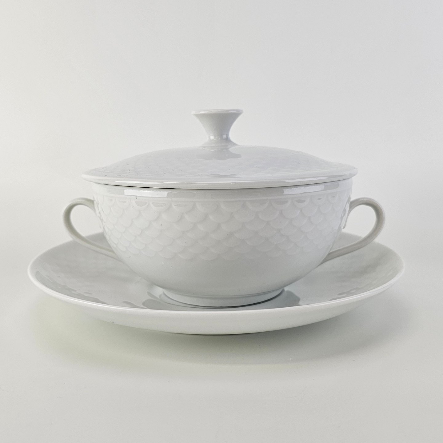 Elegance er hvidt glaseret porcelæn med skæl mønster