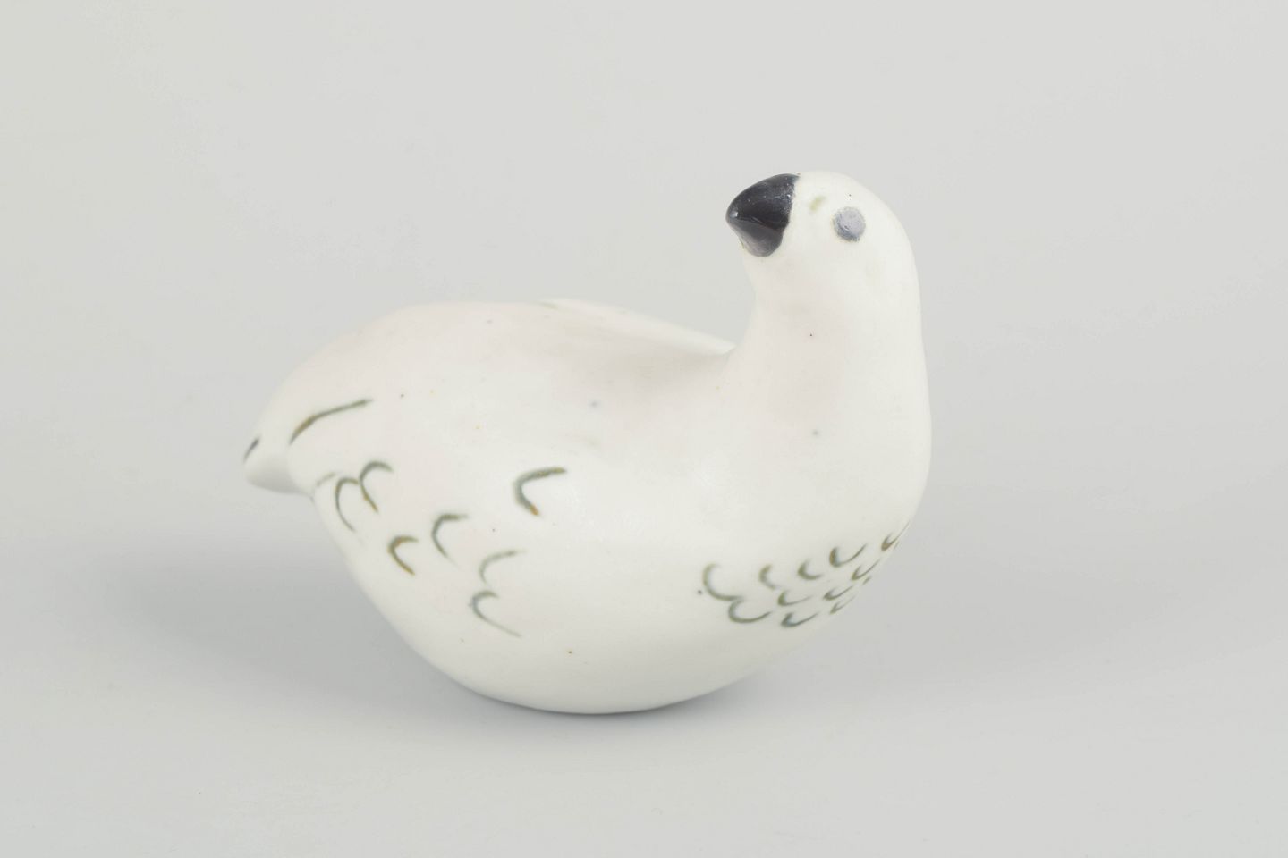 Sculptural bird figure in glazed stoneware, shaped with soft lines and simple brush decoration in green and black tones. Characteristic of Allert’s organic and nature-inspired expression.
