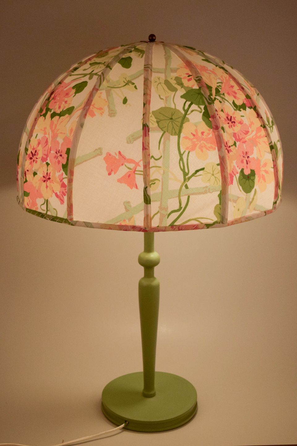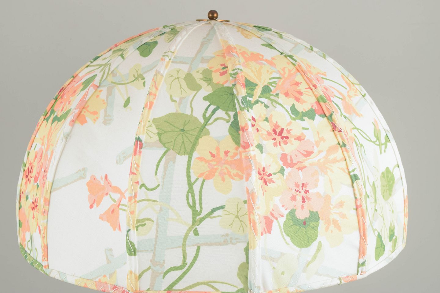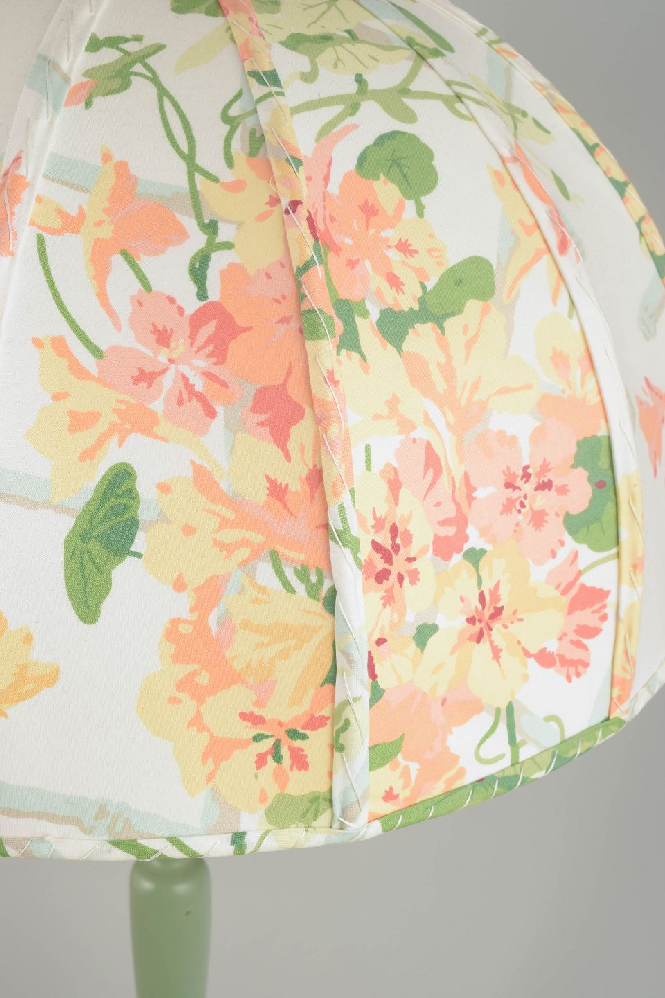 An exceptionally refined and characteristic table lamp designed by Josef Frank for Svenskt Tenn. The lamp features a beautifully domed shade upholstered in a delicate floral fabric in soft pastel tones — a testament to Frank’s masterful use of colour and nature-inspired motifs. The turned wooden base in pale green lacquer adds balance and grace, uniting craftsmanship with organic modernism. A superb and emblematic piece of Scandinavian mid-century design at its most lyrical.