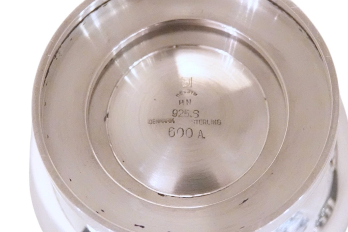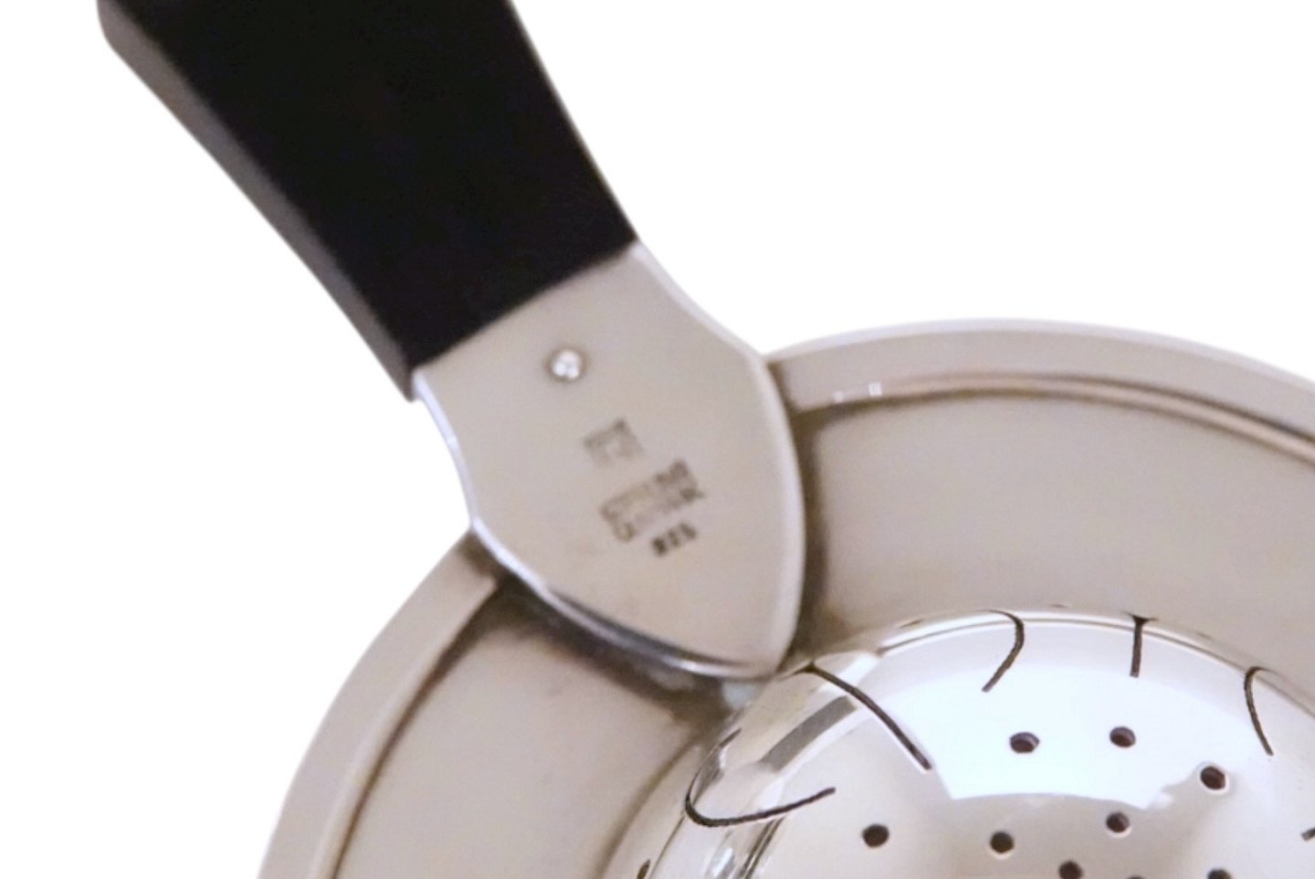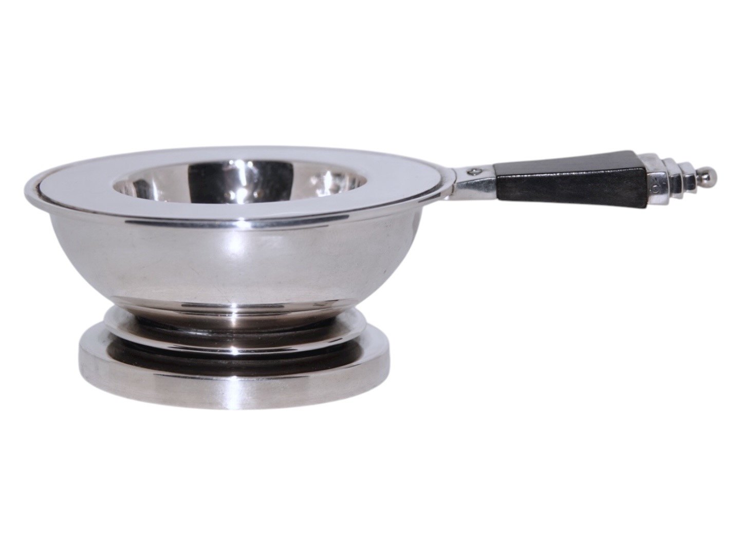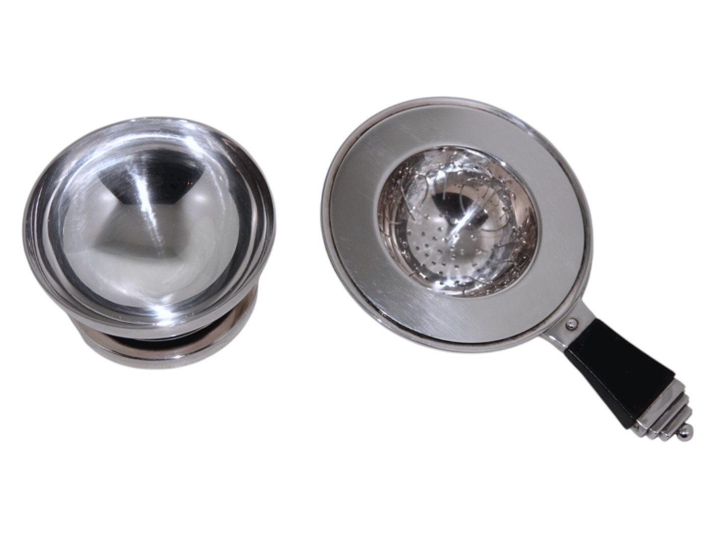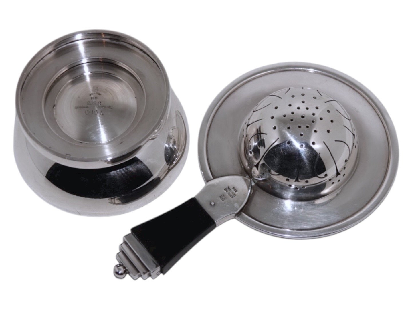 Georg Jensen sterling silver and ebony, Pyramid tea strainer on stand bowl.Designed by Harald Nielsen.