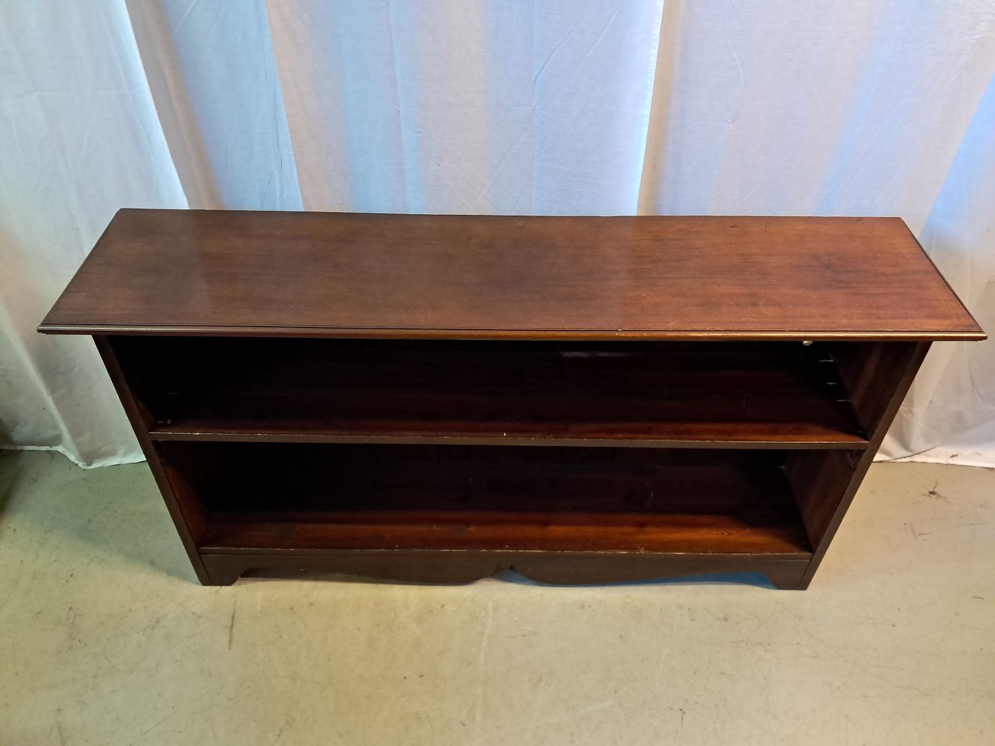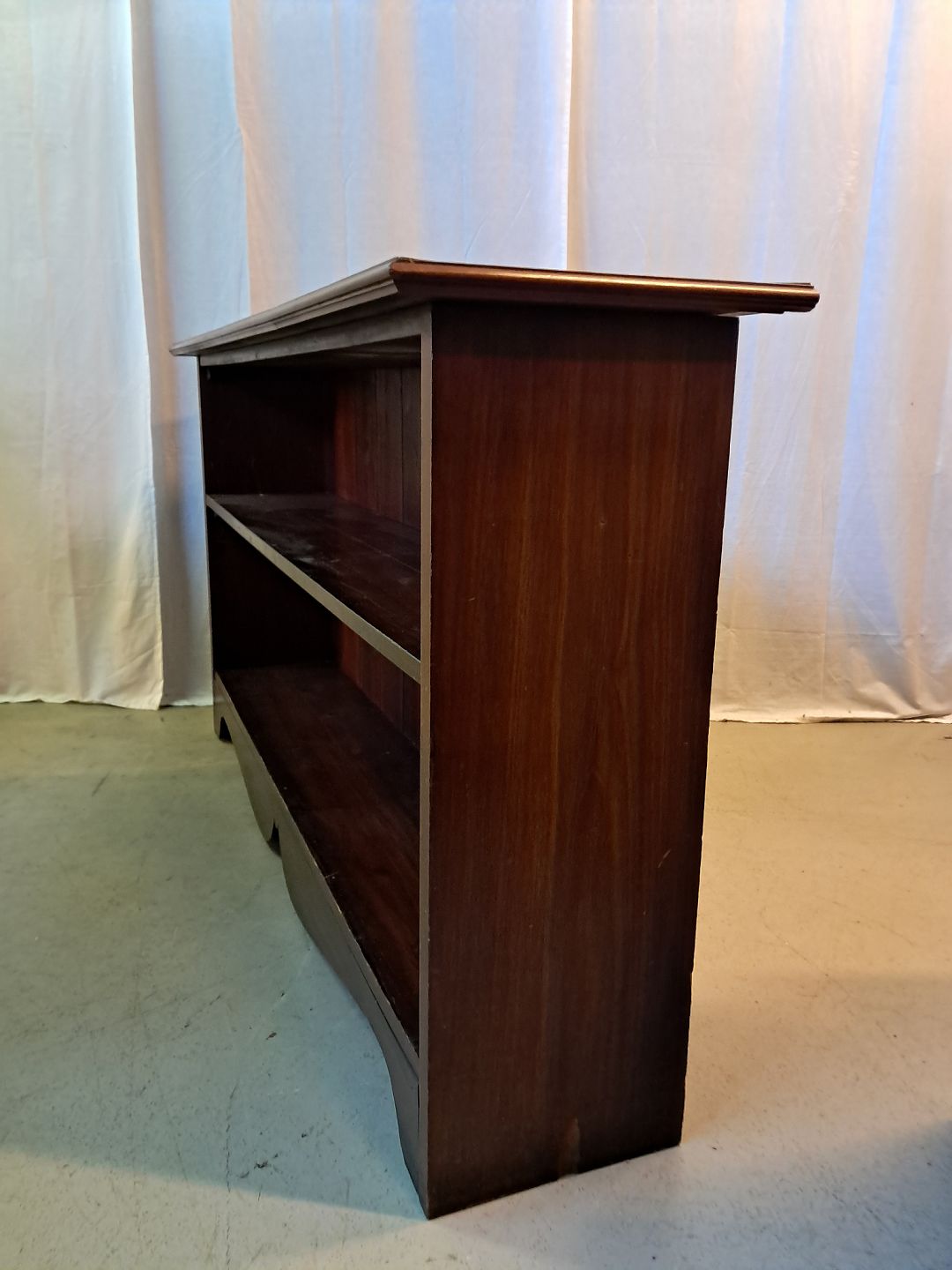 Reol i fineret mahogni, fra 1910erne.Den har brugsspor.