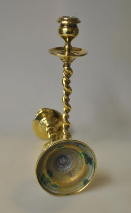 Pair of Danish antique brass candlesticks, 19th century. With twisted stem. H.: 19 cm.Item number: 28512