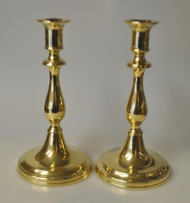 Pair of Danish antique brass candlesticks, 19th century. Baluster-shaped stem. H.: 20 cm.Item number: 28514