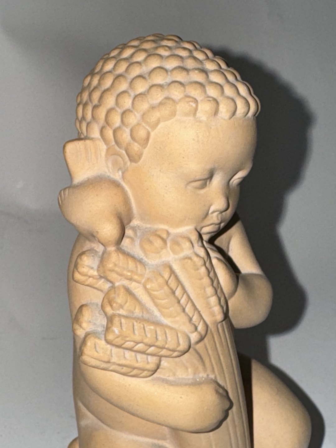 Figurine of a boy in ceramic. Made by Arno Malinowski for Peter Ipsen's Enke. Factory mark on the bottom. Artist's monogram on the back of the base. In perfect condition. H. 12.7 cm Dealer