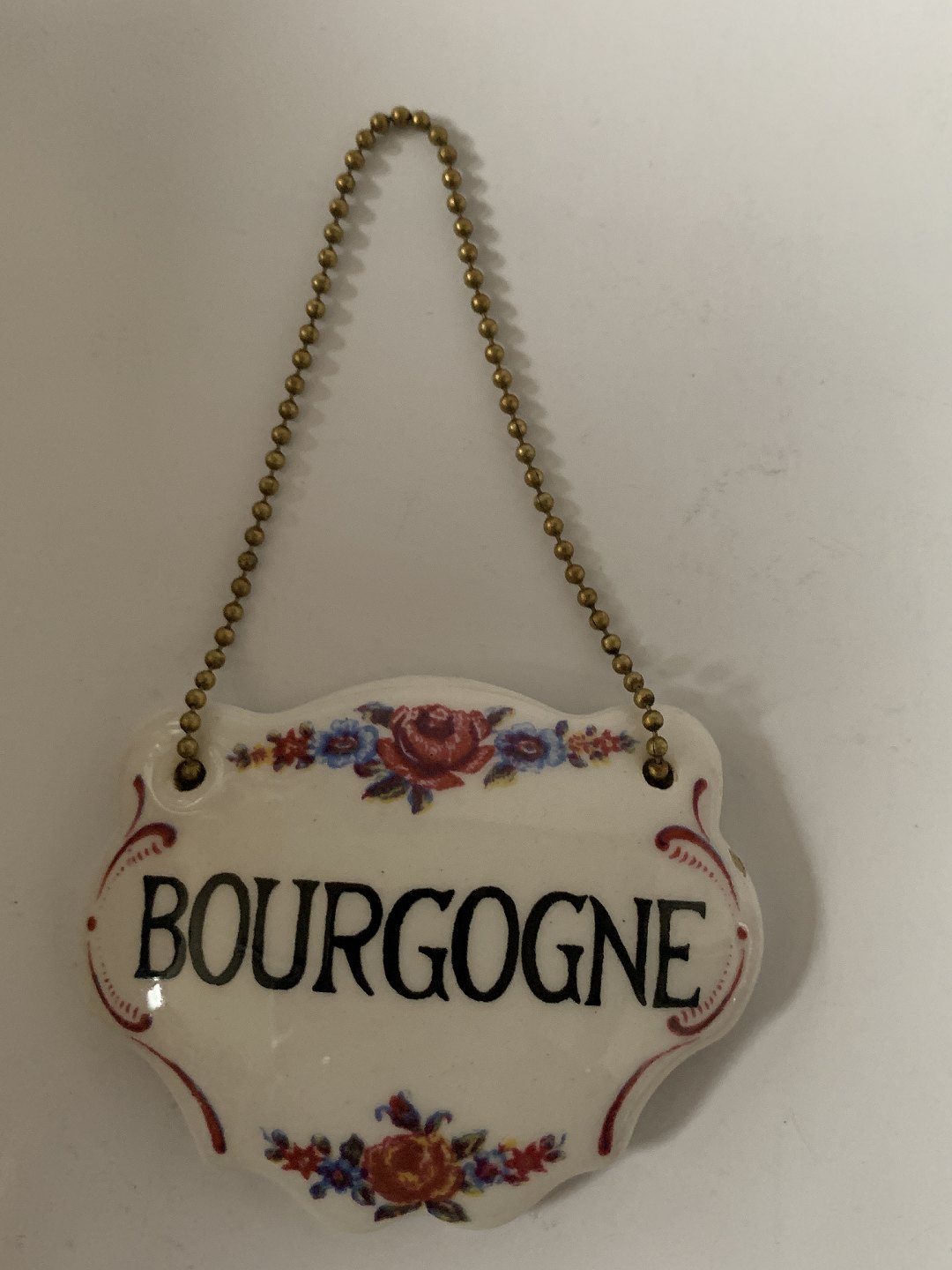 Bottle / Decanter Burgundy sign with chainSize 7 x 5.5 cm.