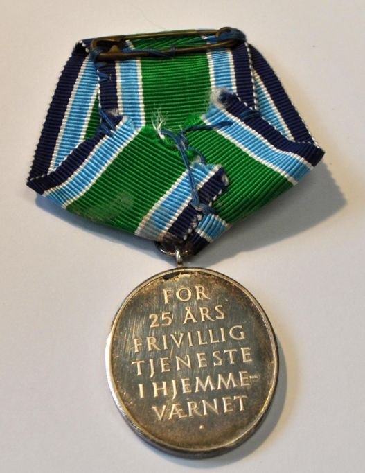 Silver medal of merit, 25 years in the Home Guard. Denmark. With ribbon. In accompanying box. 3.3 x 2.8 cm.Item number: 28377