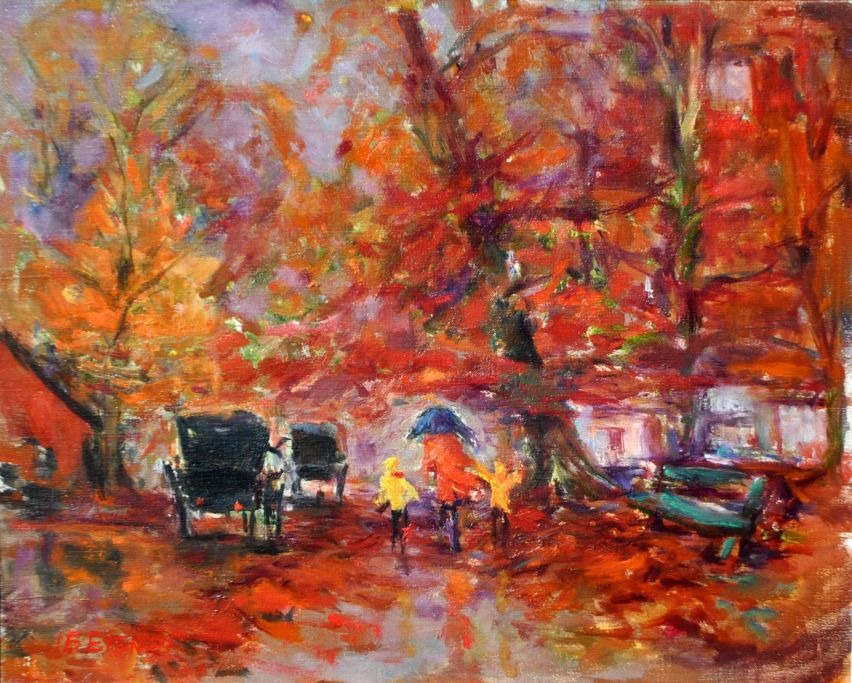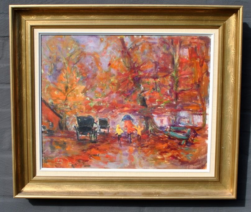 Eisner, Ib (1925 - 2003) Denmark. October rain, Dyrehaven. Oil on canvas. Signed. 40 x 50 cm. Verso marked.Framed: 60 x 65 cm.
