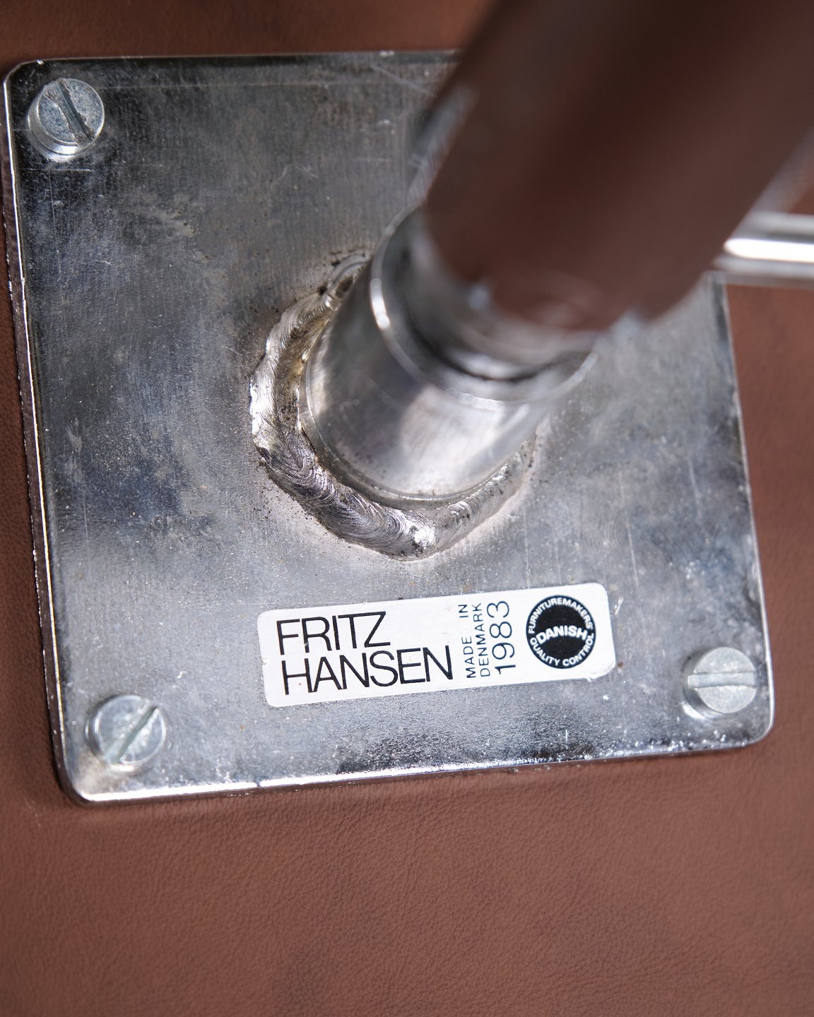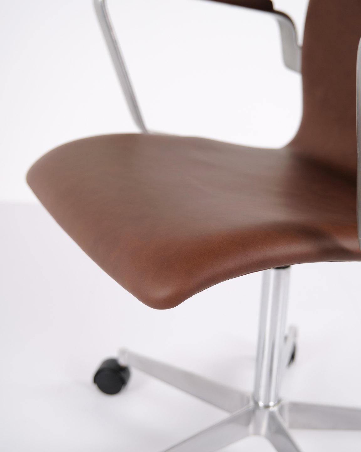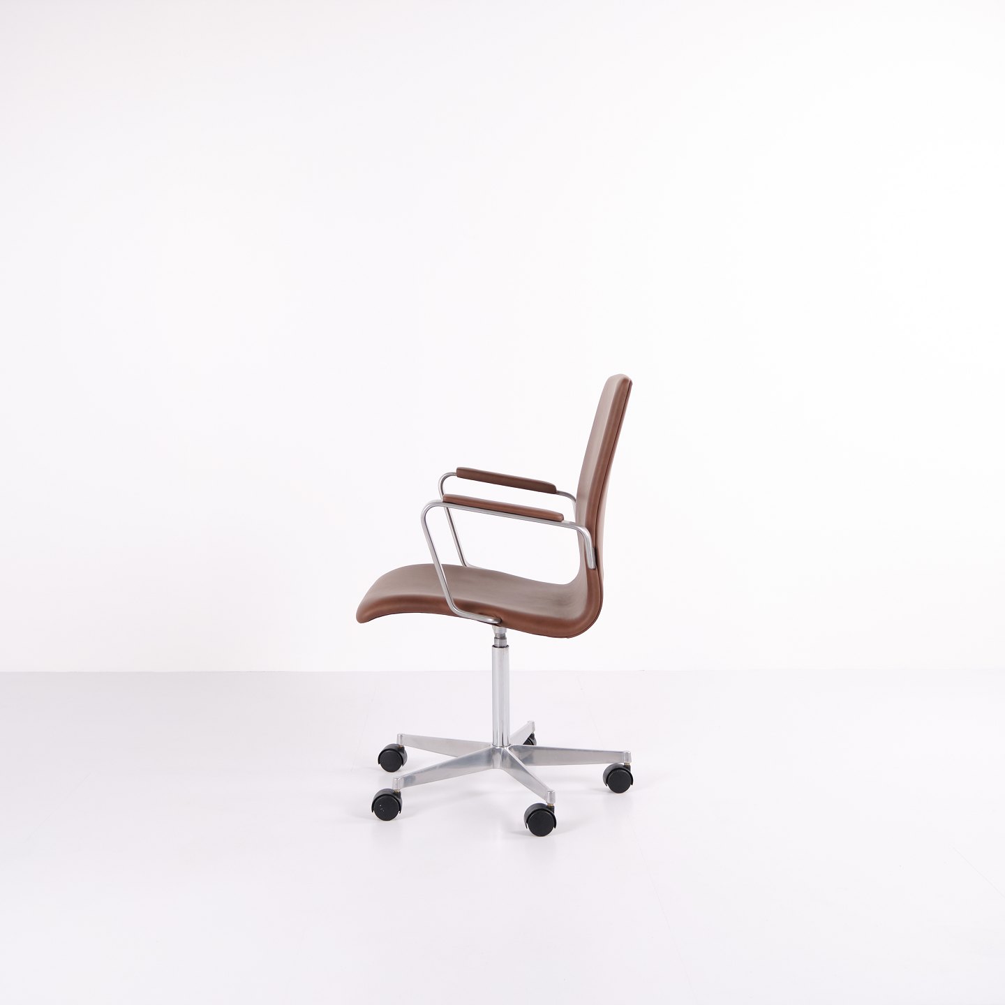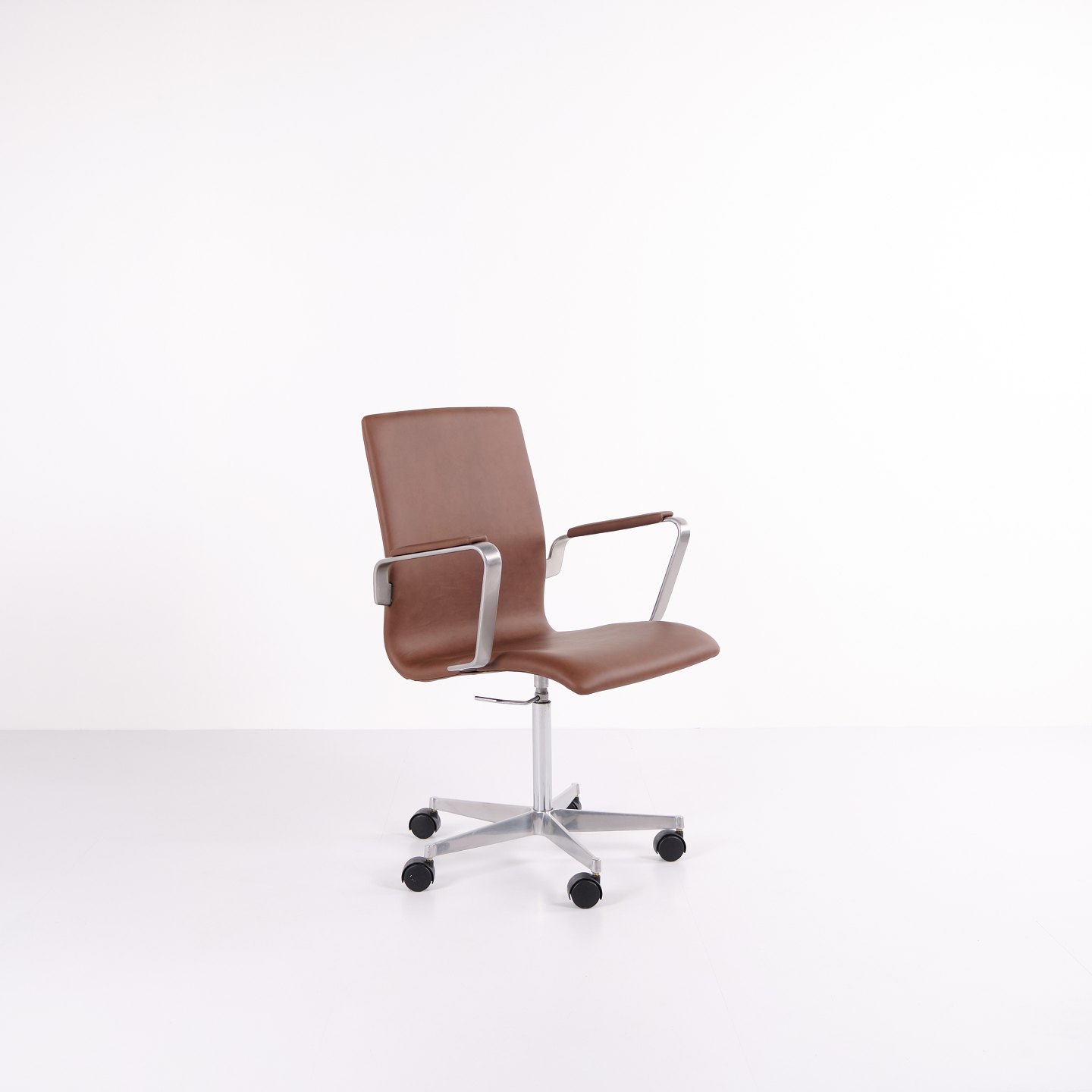 Arne Jacobsen Oxford Classic office chair, model 3291, for Fritz Hansen. Newly upholstered in brown leather.— Origin: Denmark