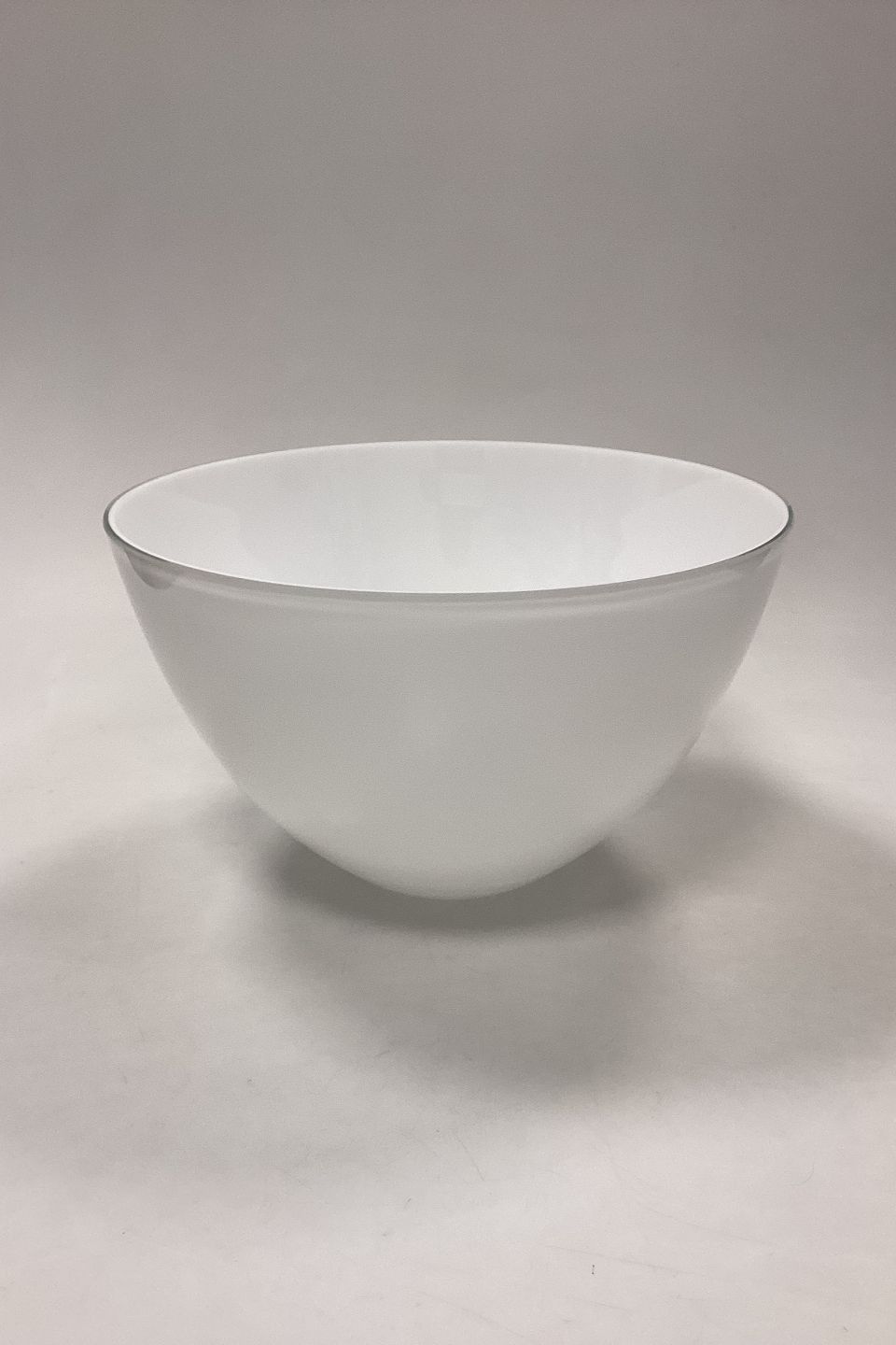 Holmegaard Cocoon Bowl in opal white. Designed by Peter Svarrer in 2003. Signed with sandblasting.Measures 25 cm x 15 cm / 9.84 in. x 5.90 in.