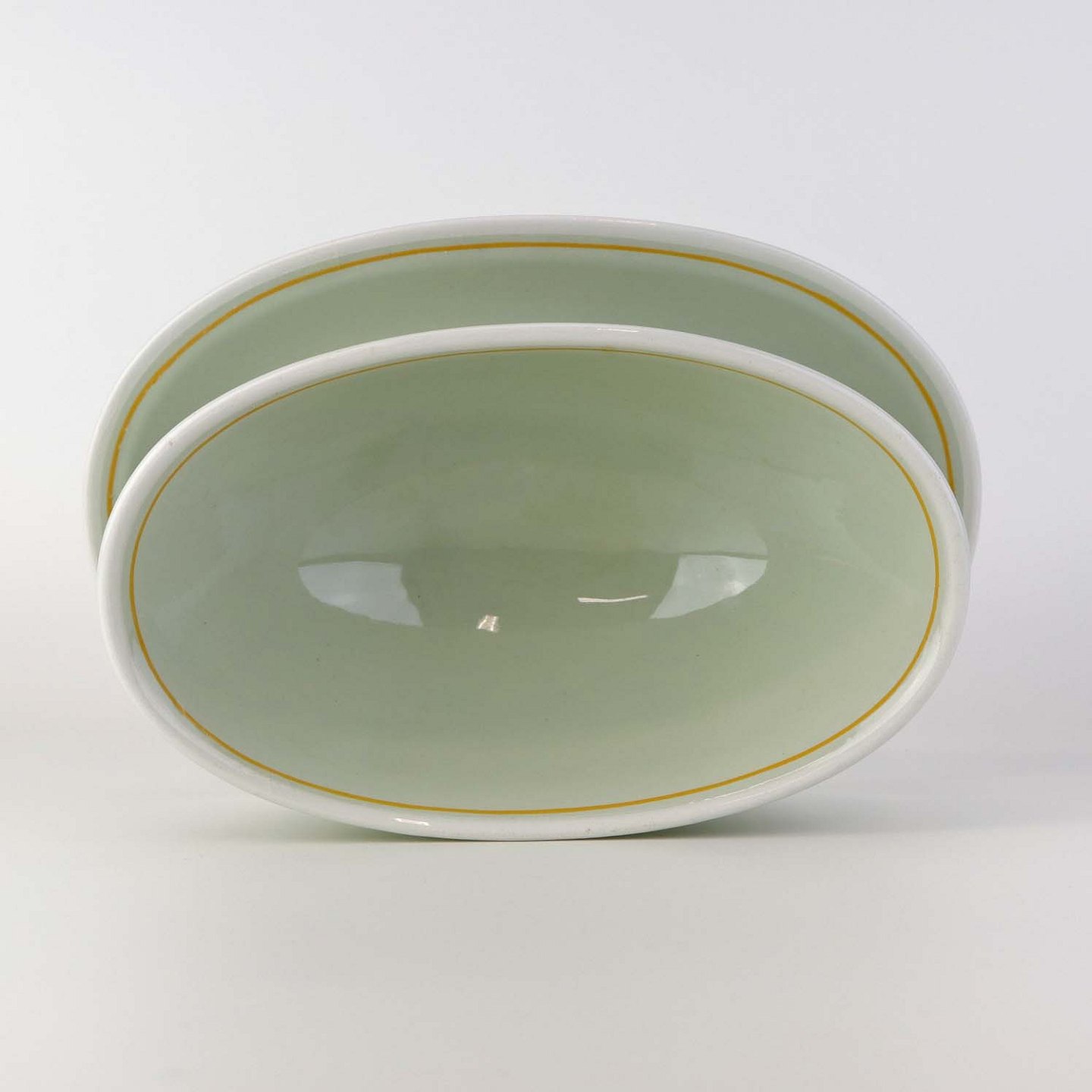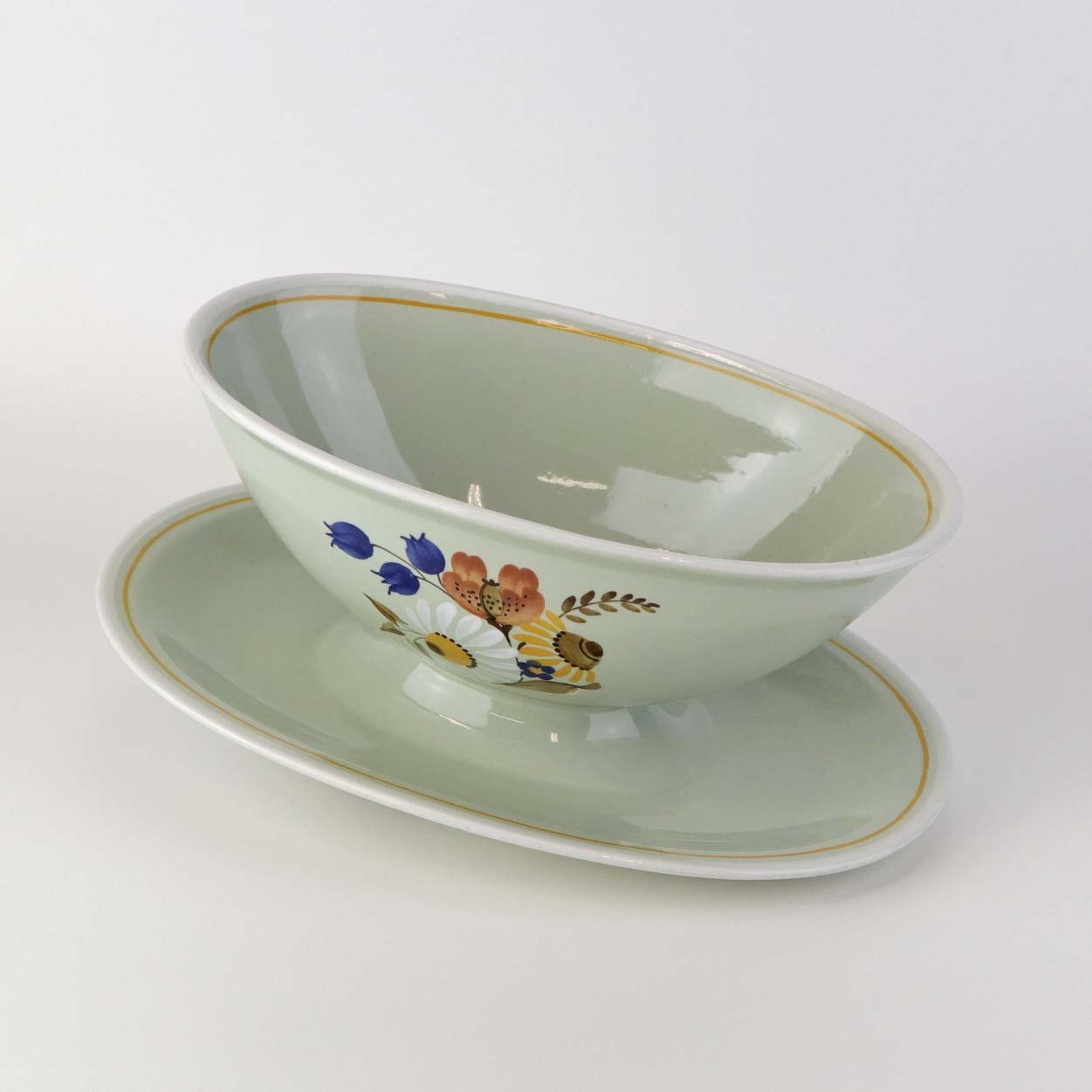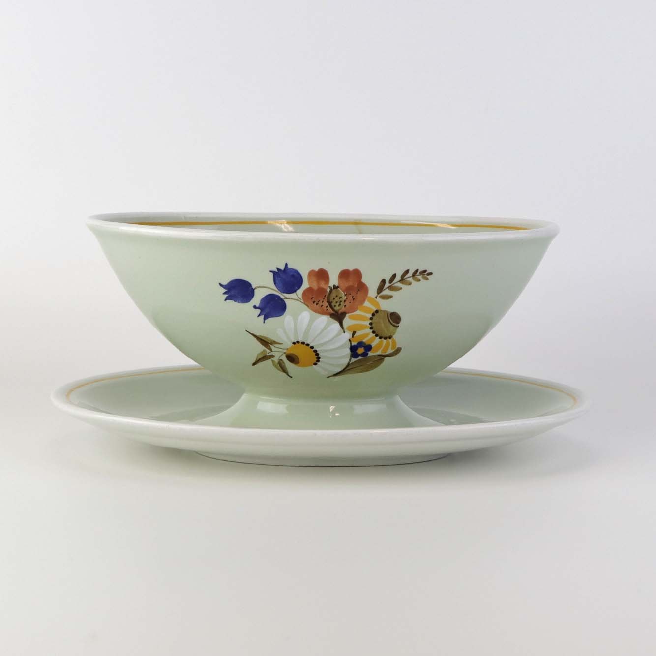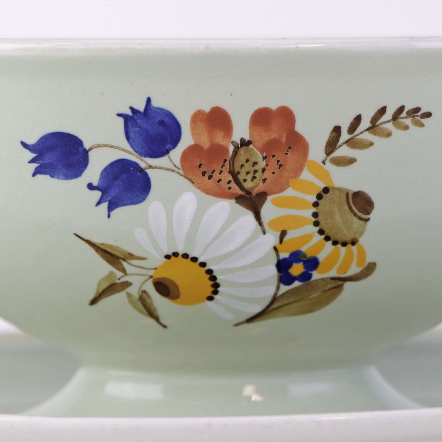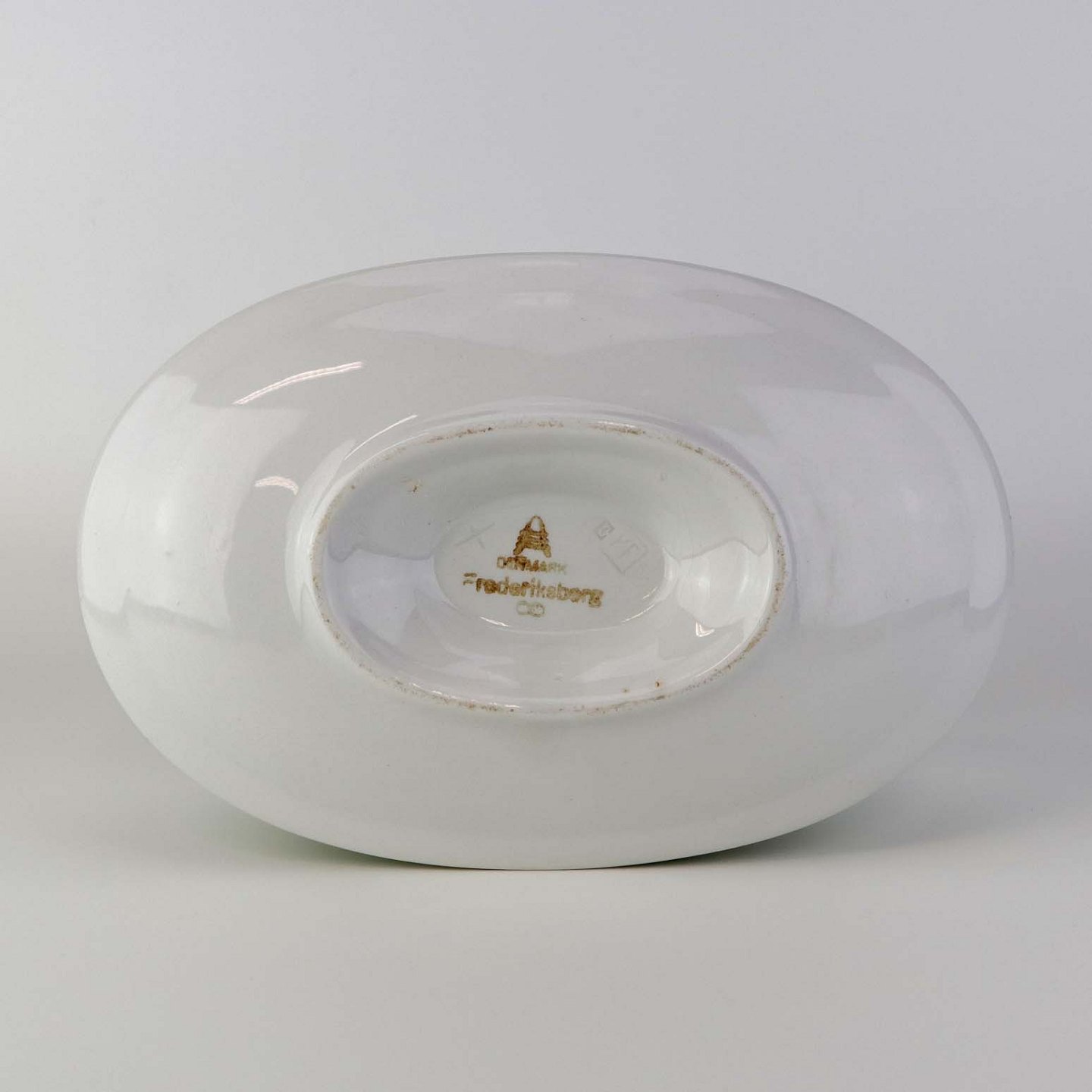 Sovseskål med fast bund i fajance fra stellet Frederiksberg. Formgiver Nils Thorsson