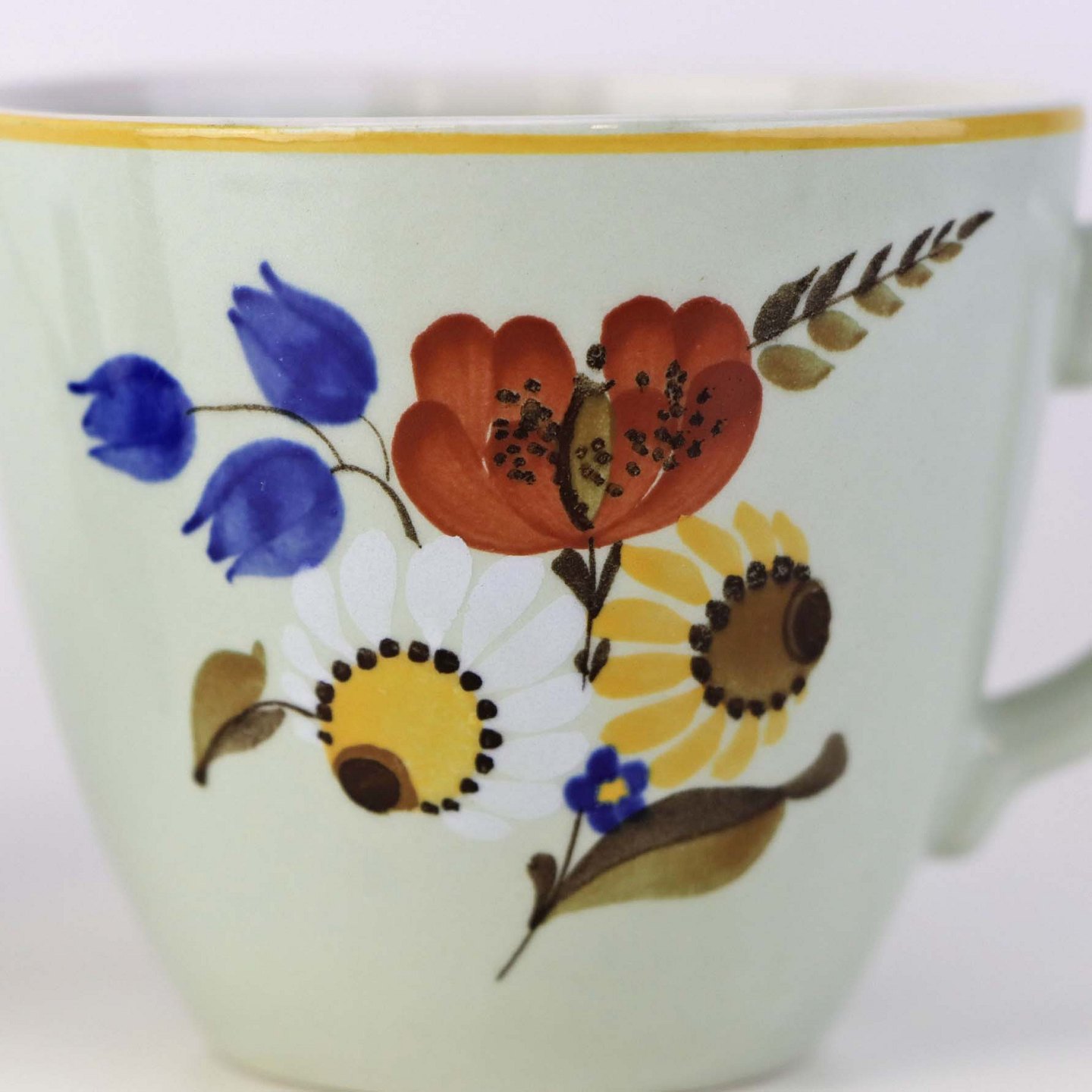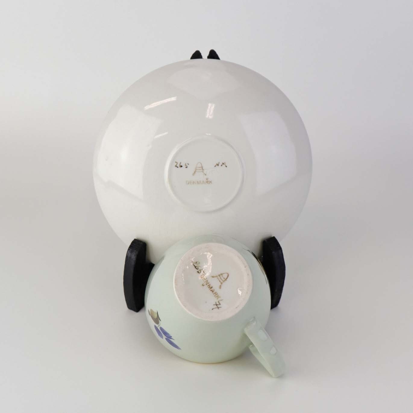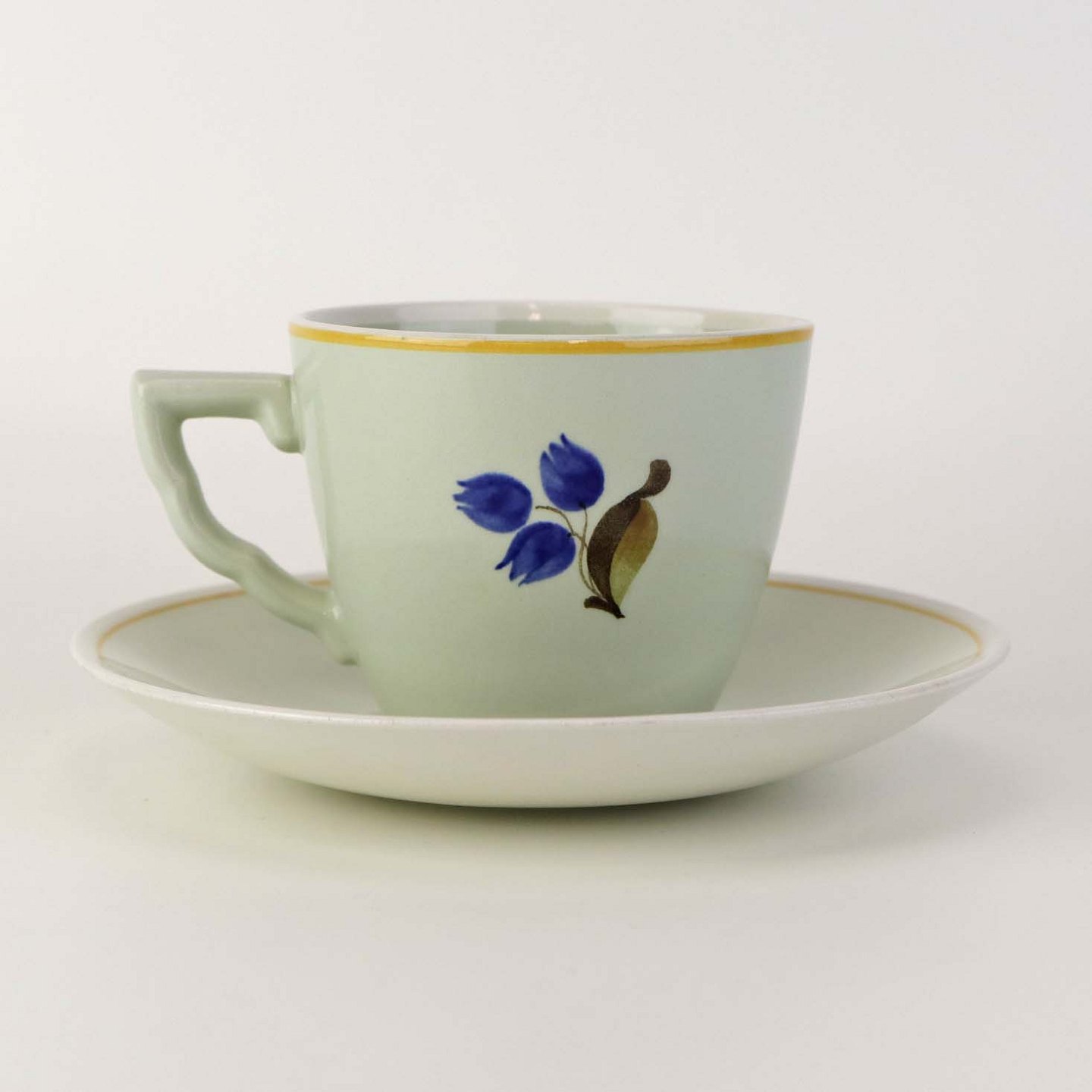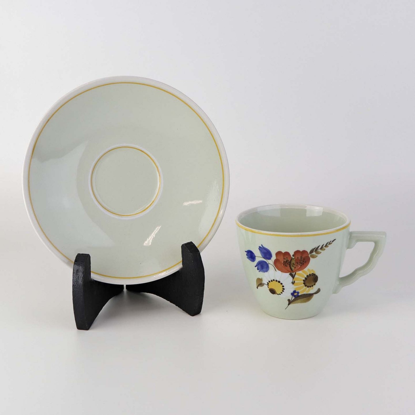 Kaffekop med underkop i fajance fra stellet Frederiksberg. nr. 265Formgiver Nils Thorsson