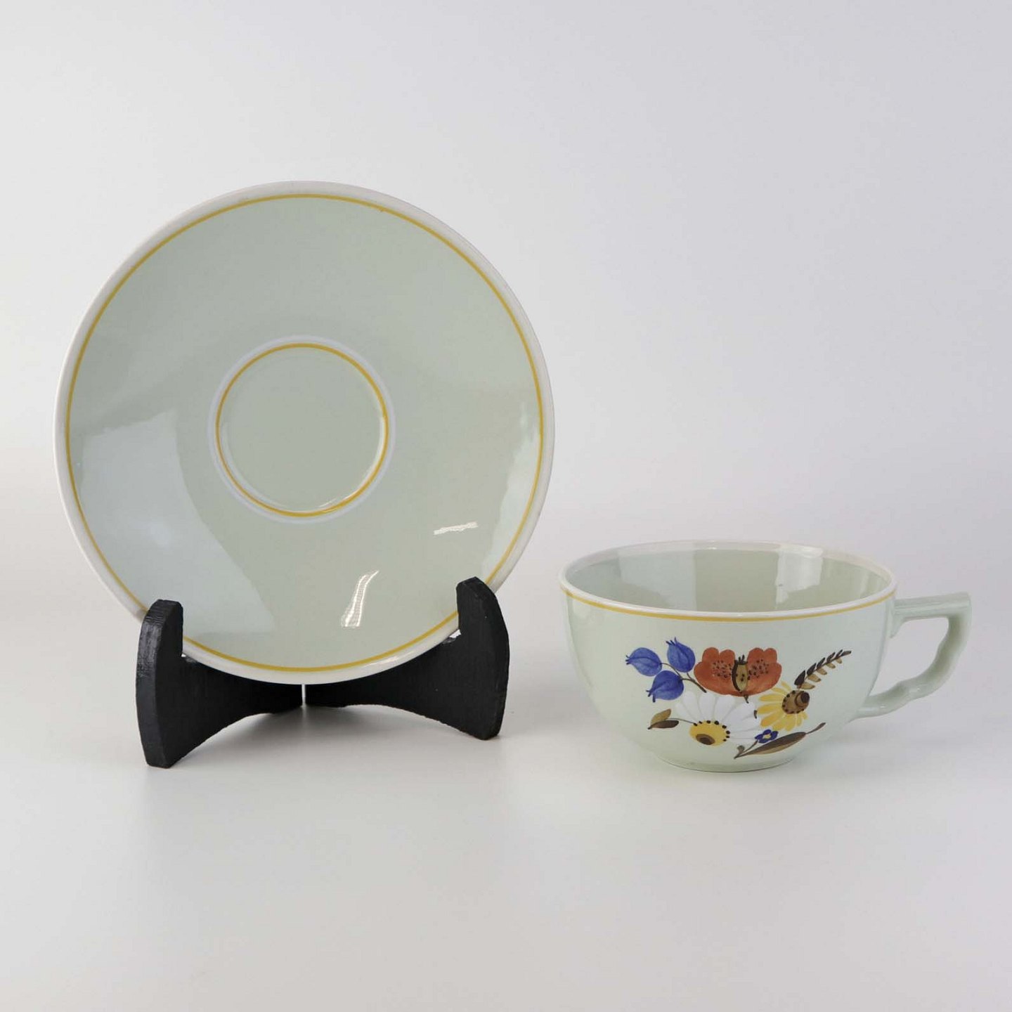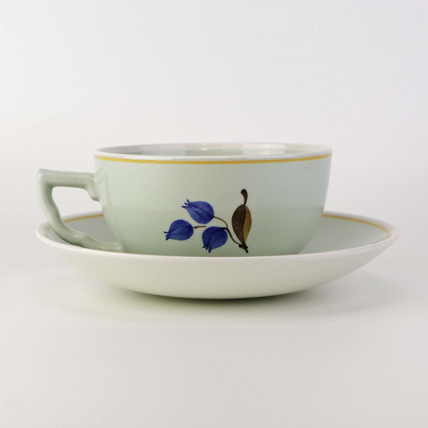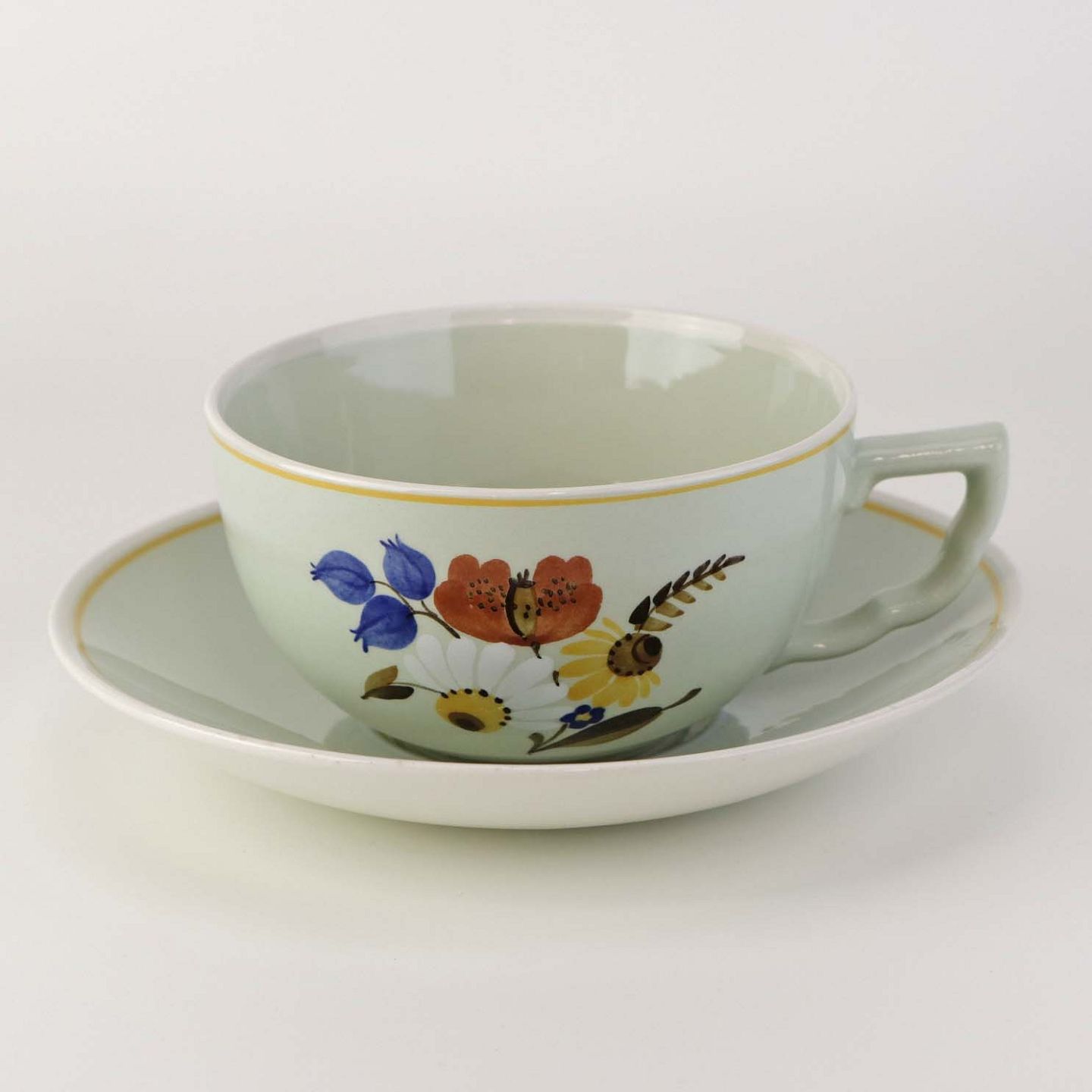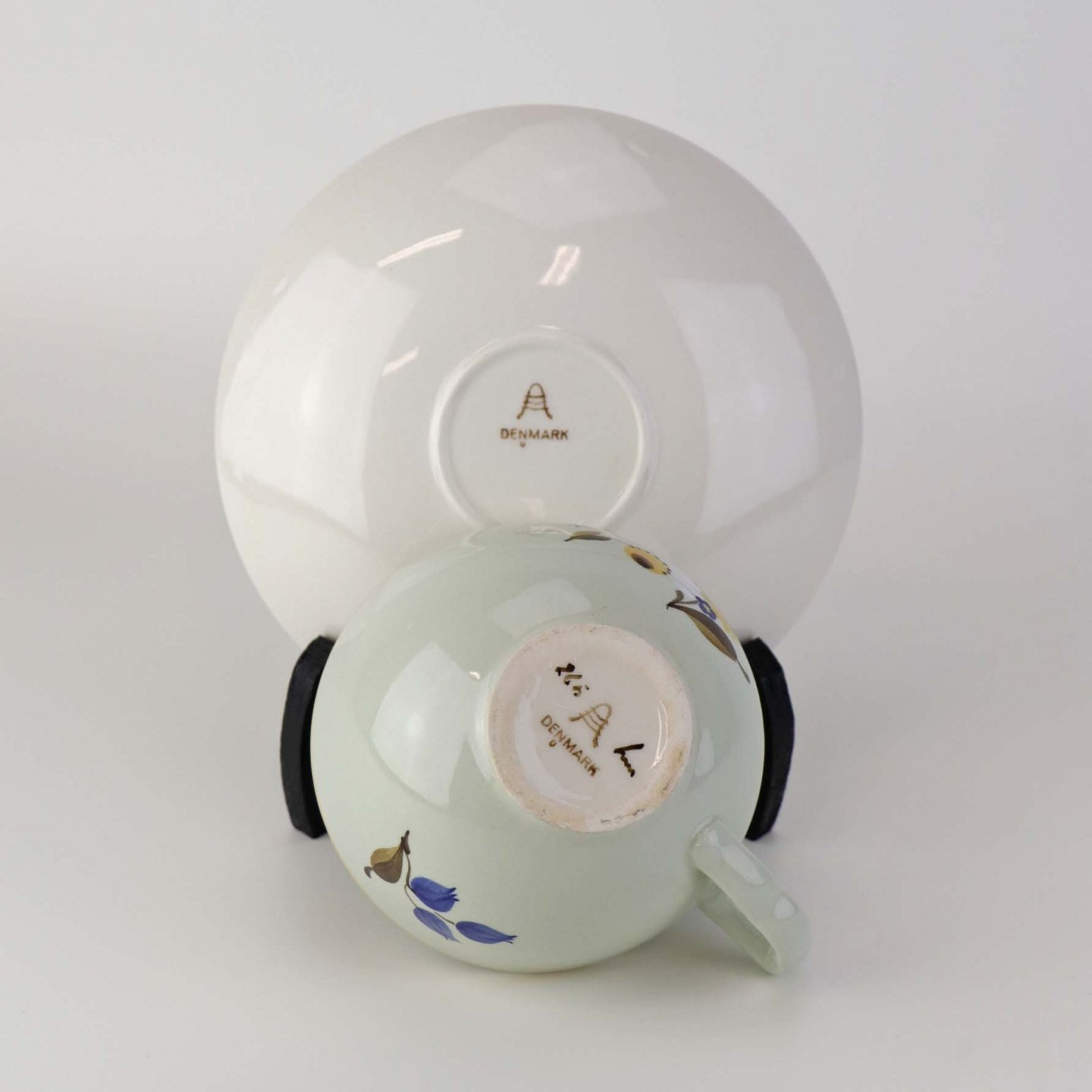 Tekop med underkop i fajance fra stellet Frederiksberg. Nr. 265 Formgiver Nils Thorsson