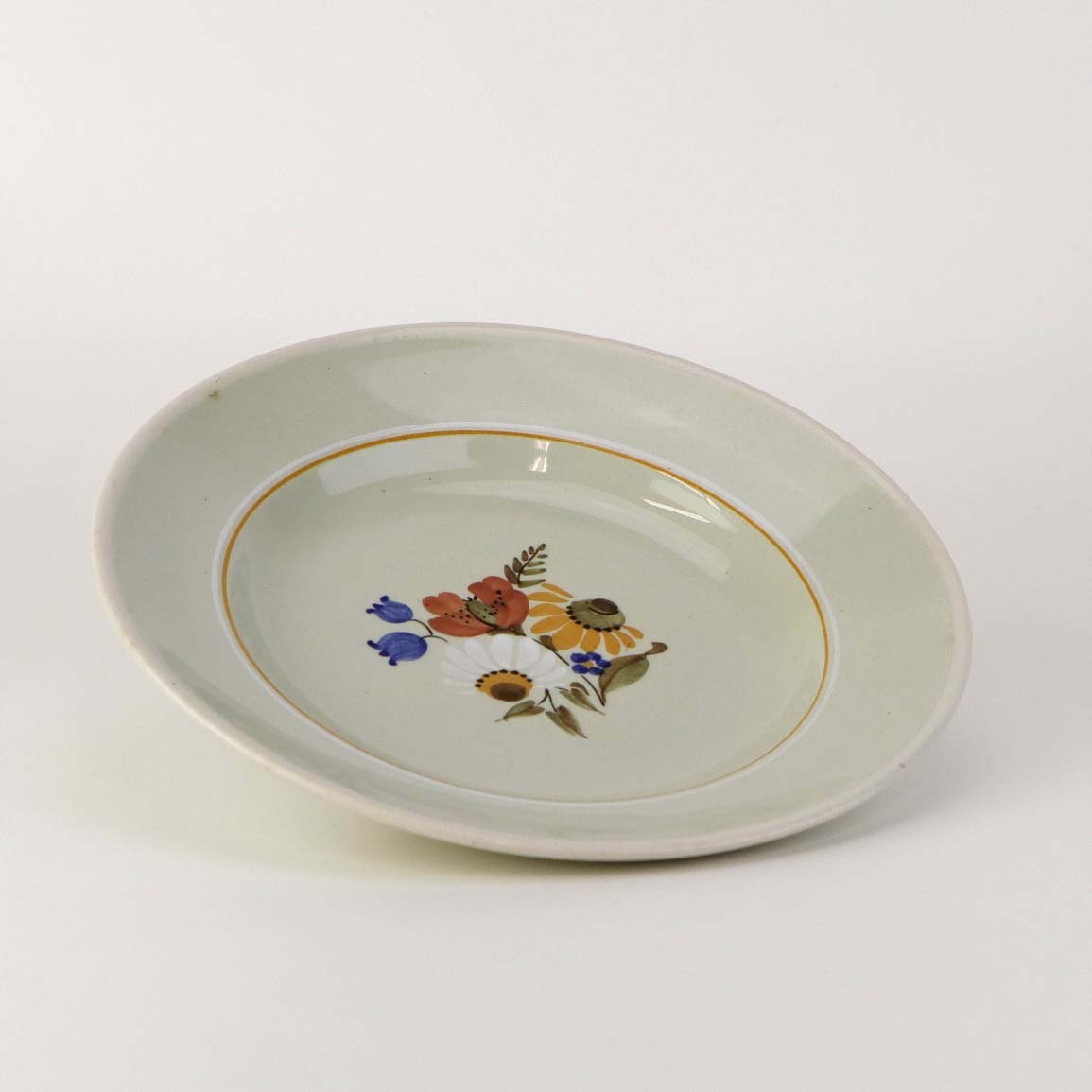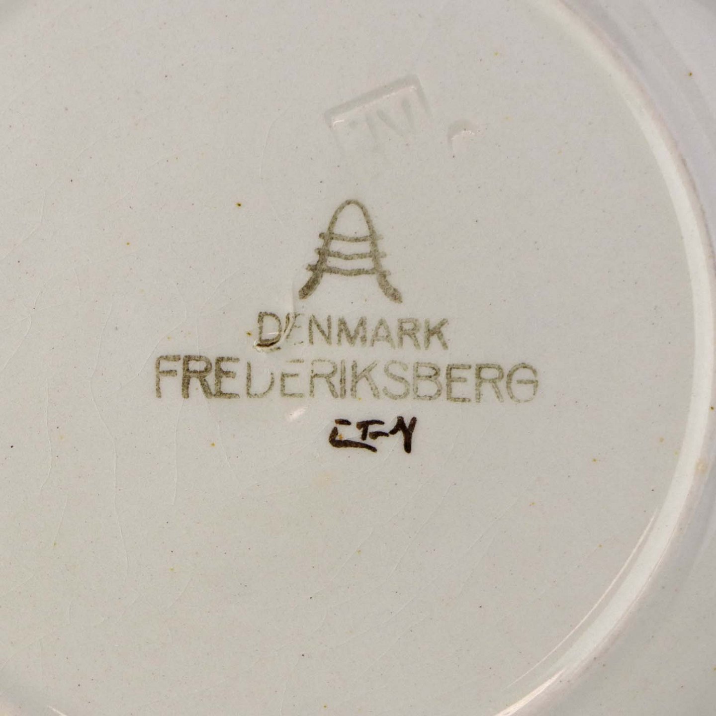 Flad kagetallerken i fajance fra stellet Frederiksberg. Formgiver Nils Thorsson