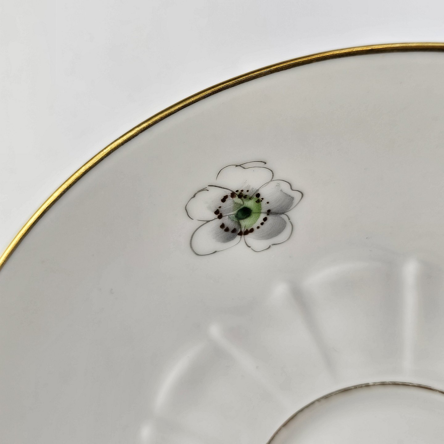 Eremitage er porcelæn dekoreret med hvidtjørn og guldkant