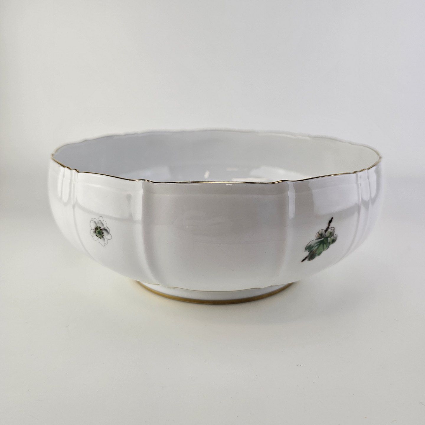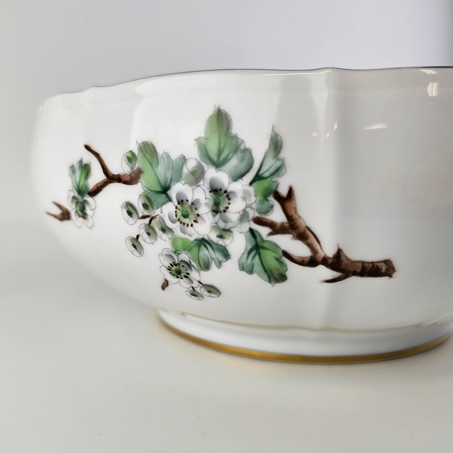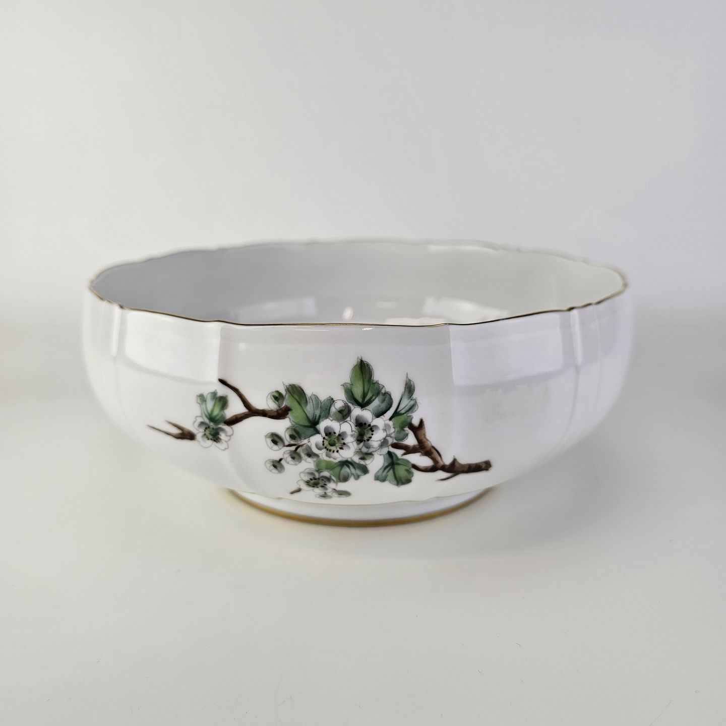 Eremitage er porcelæn dekoreret med hvidtjørn og guldkant
