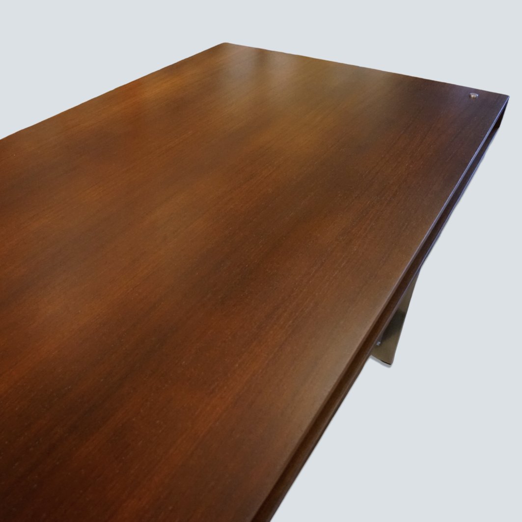 Bodil Kjær freestanding office desk in Wengé wood and chromed steel legs. Four lockable drawers. Drawer module on wheels included. Designed by Bodil Kjær in 1959. Iconic design, also called "The most beautiful desk in the world" and seen in the James Bond movies.Height: 73cm, Width: 100cm, Length: 200cm.