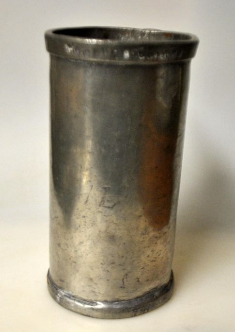 Large measuring cup in pewter, 19th century. England. Stamped. For 1 liter. H: 17.5 cm.Item number: 28413