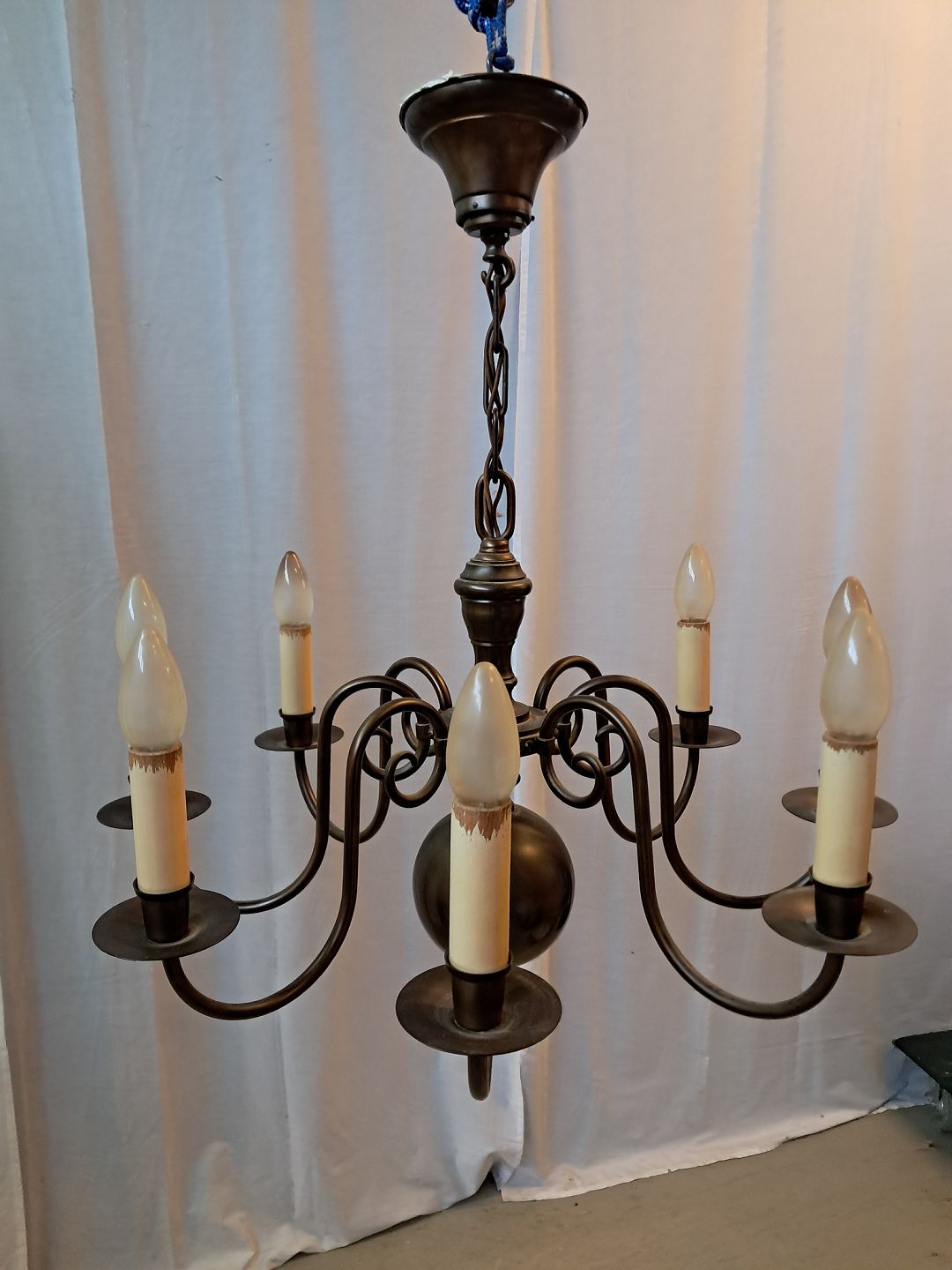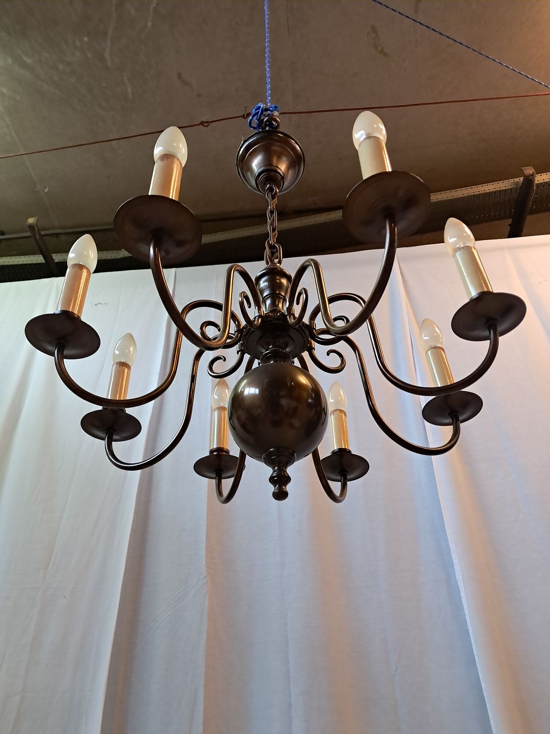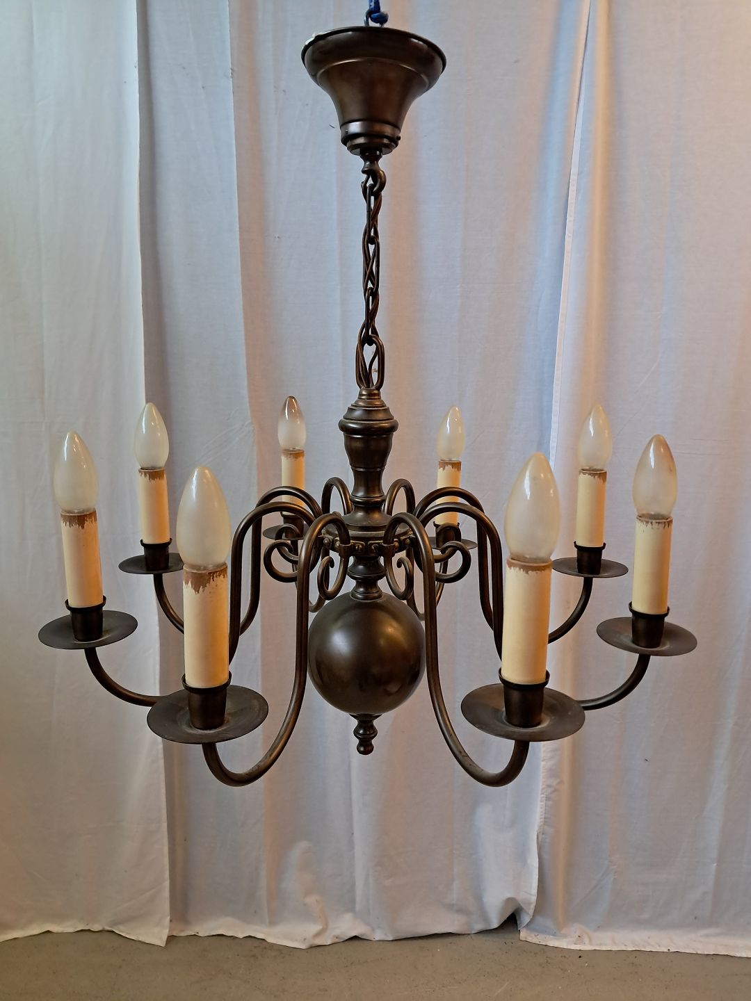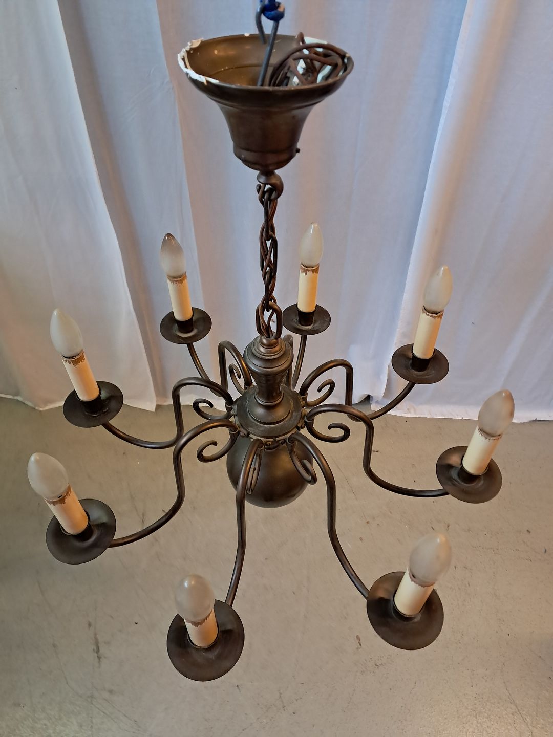 8-armet kirkekrone i bruneret messing, fra 1930erne.Den har brugsspor.