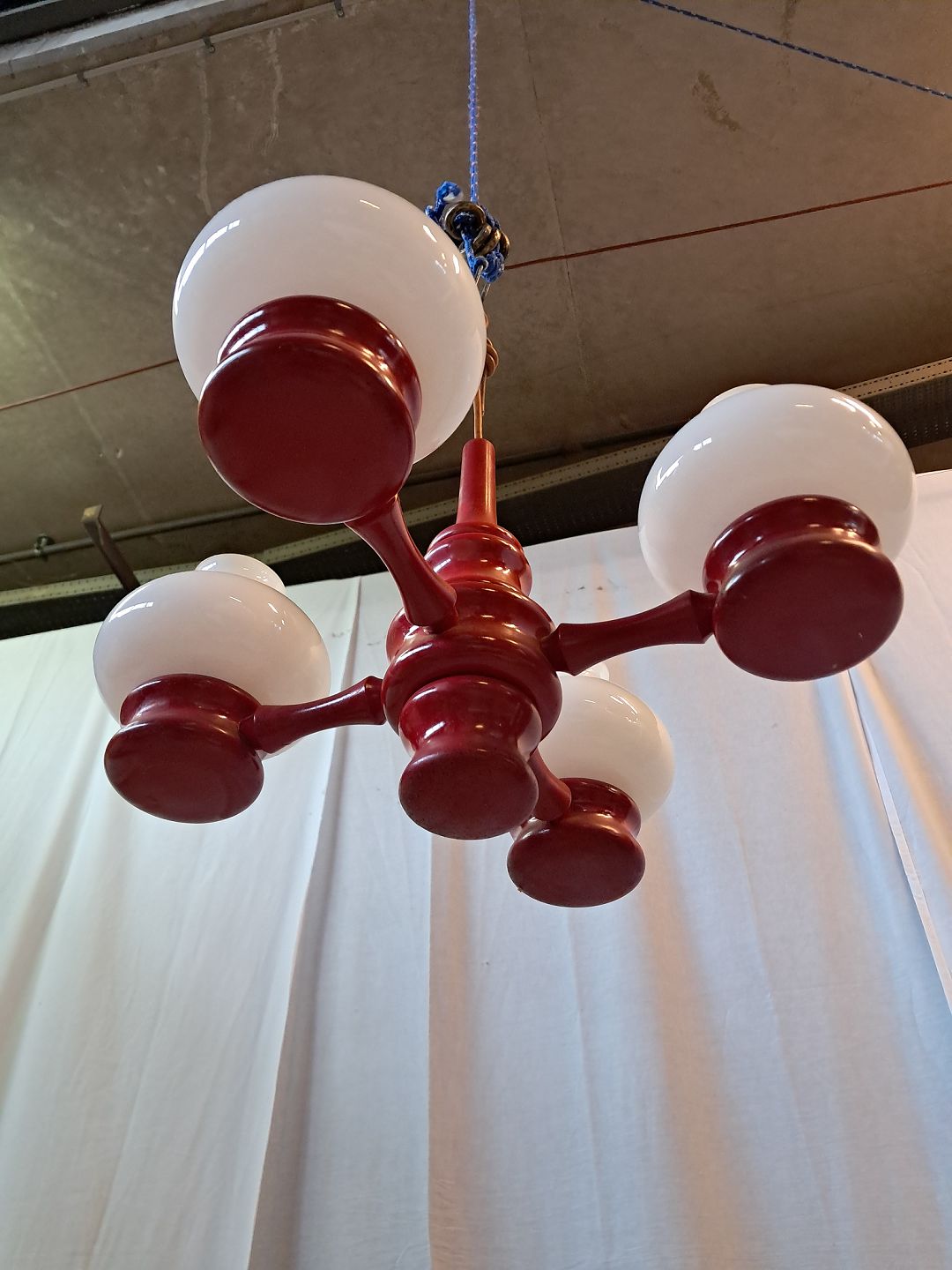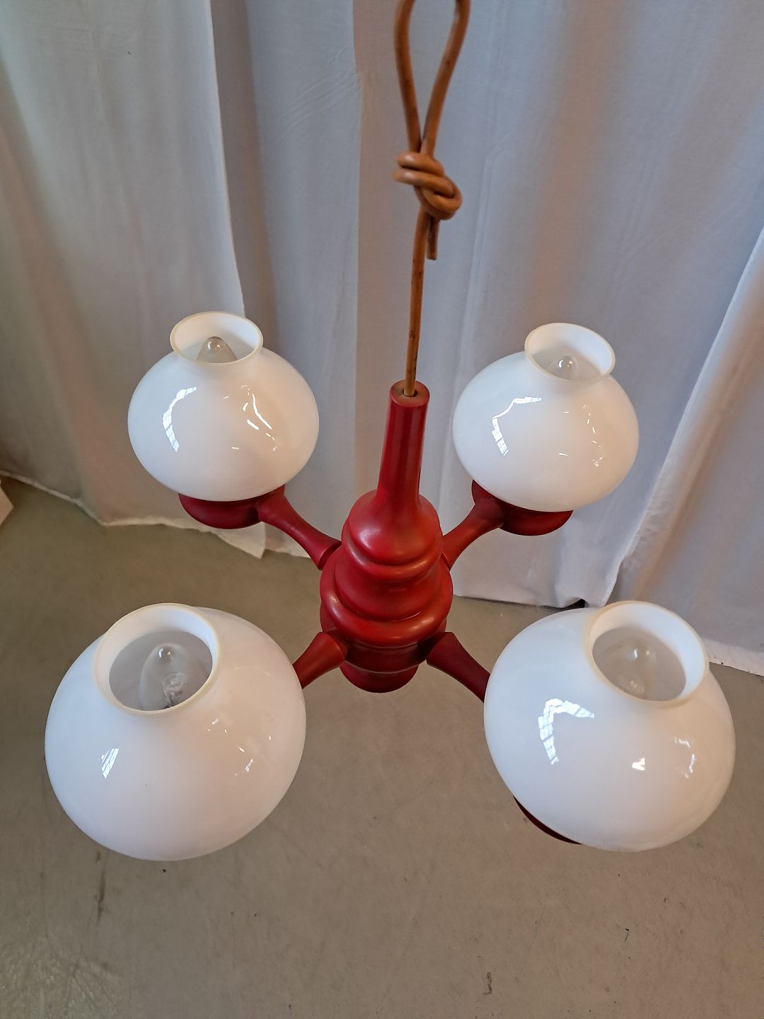 Malet loftlampe med 4 glasskærme, fra 1980erne.Den har brugsspor.