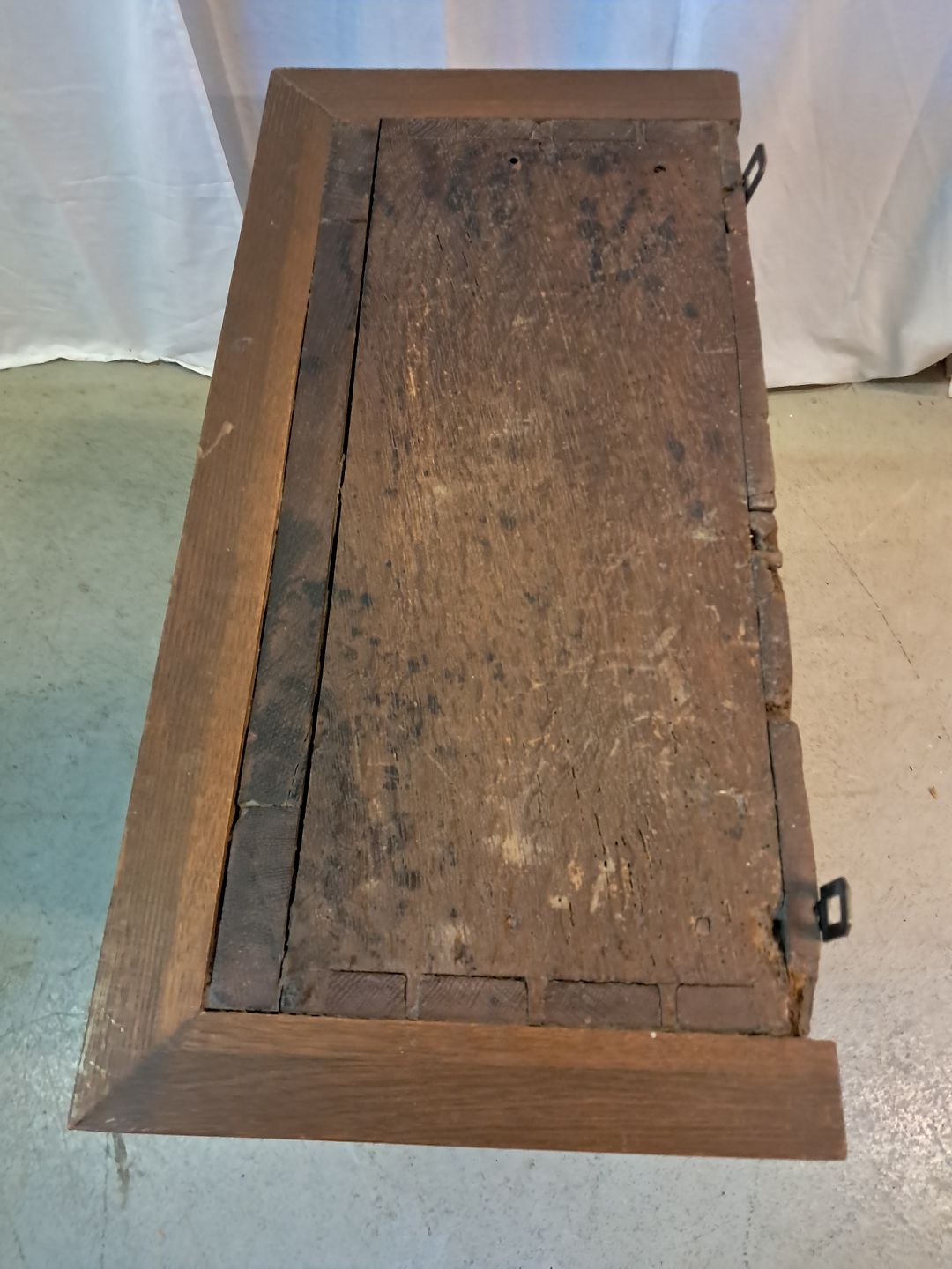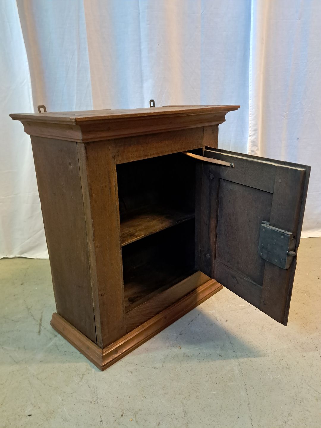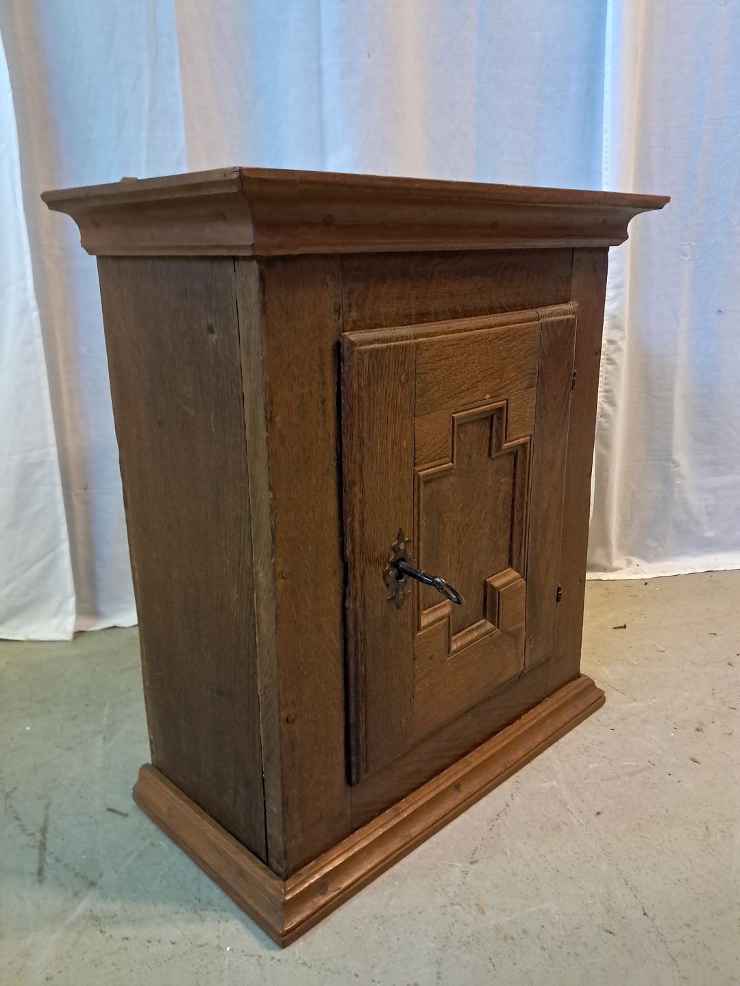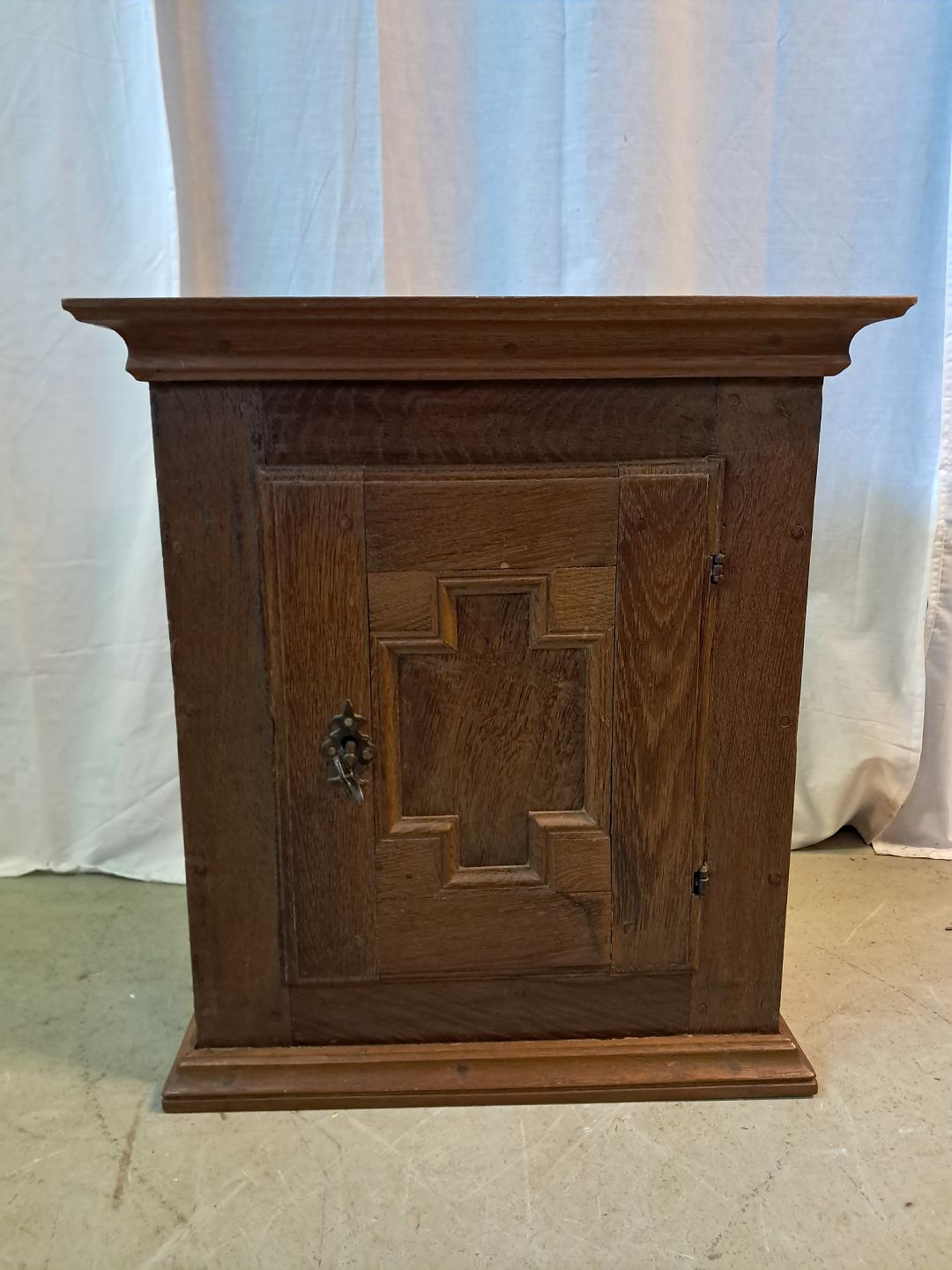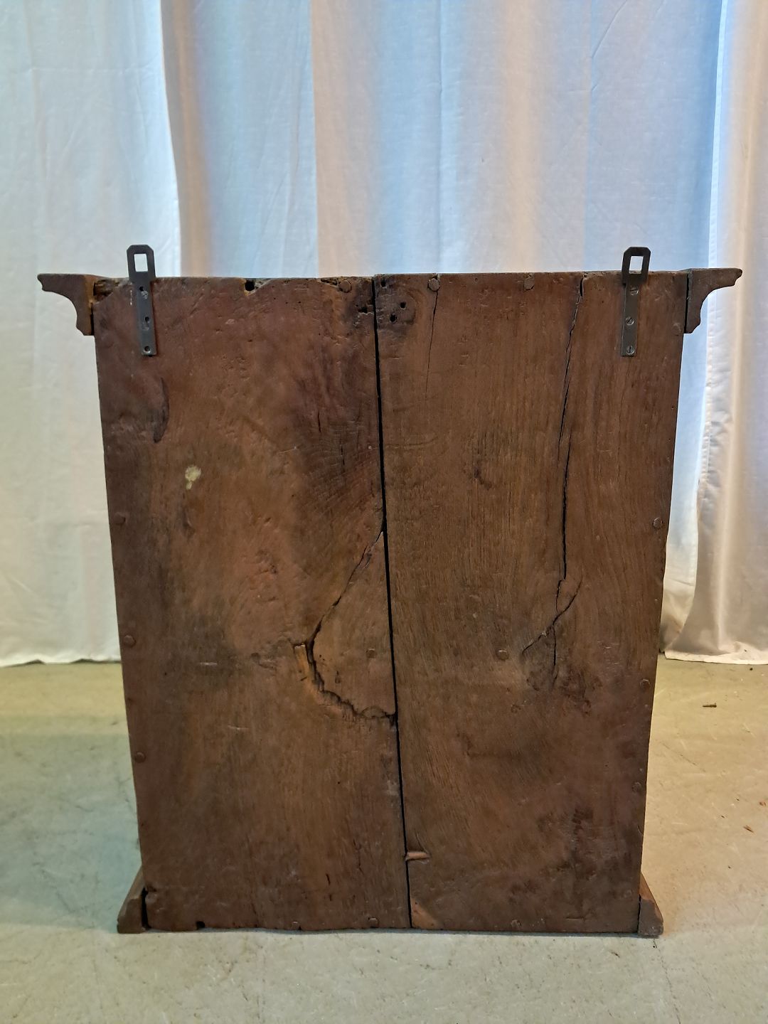 Vægskab i massivt egetræ, fera 1860erne.Det har brugsspor.