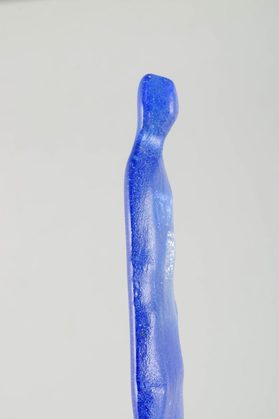 Hand-formed figure in intense cobalt blue glass with a subtle metallic sheen and minimalist silhouette. A sculptural work that merges the human form with Ekegren’s signature experimental approach to colour and texture.