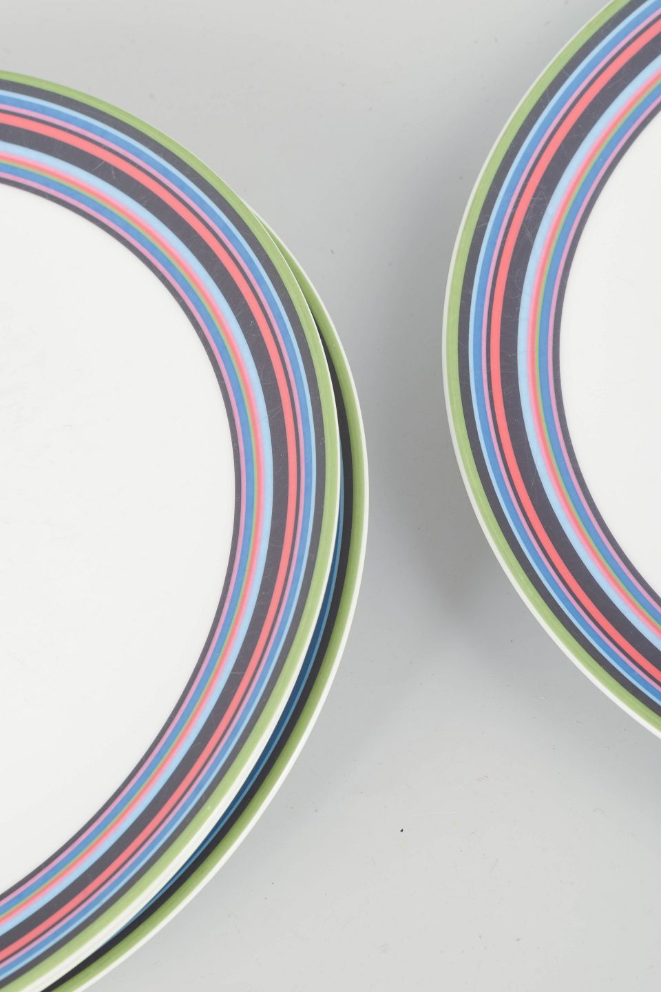 Set of four large porcelain plates featuring the distinctive multicoloured striped pattern designed by Alfredo Häberli for Iittala. The series combines functionality with playful colours and a timeless form, making it a modern classic in Nordic design.