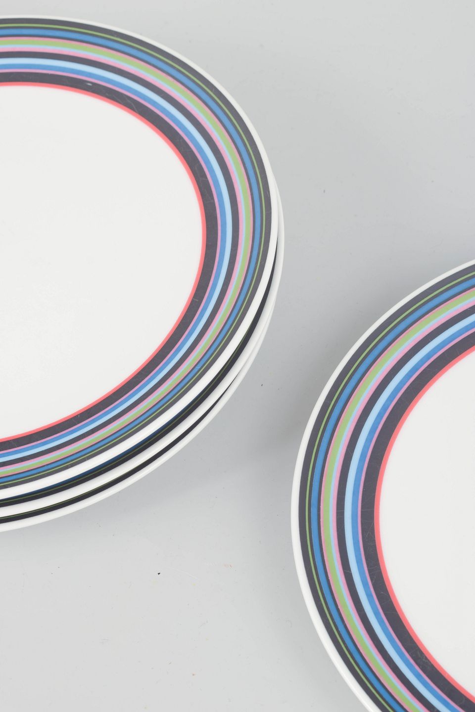 Set of four porcelain plates featuring the iconic multicoloured striped pattern designed by Alfredo Häberli for Iittala. The series combines functionality with a playful yet timeless aesthetic, making it a modern classic in Nordic tableware.