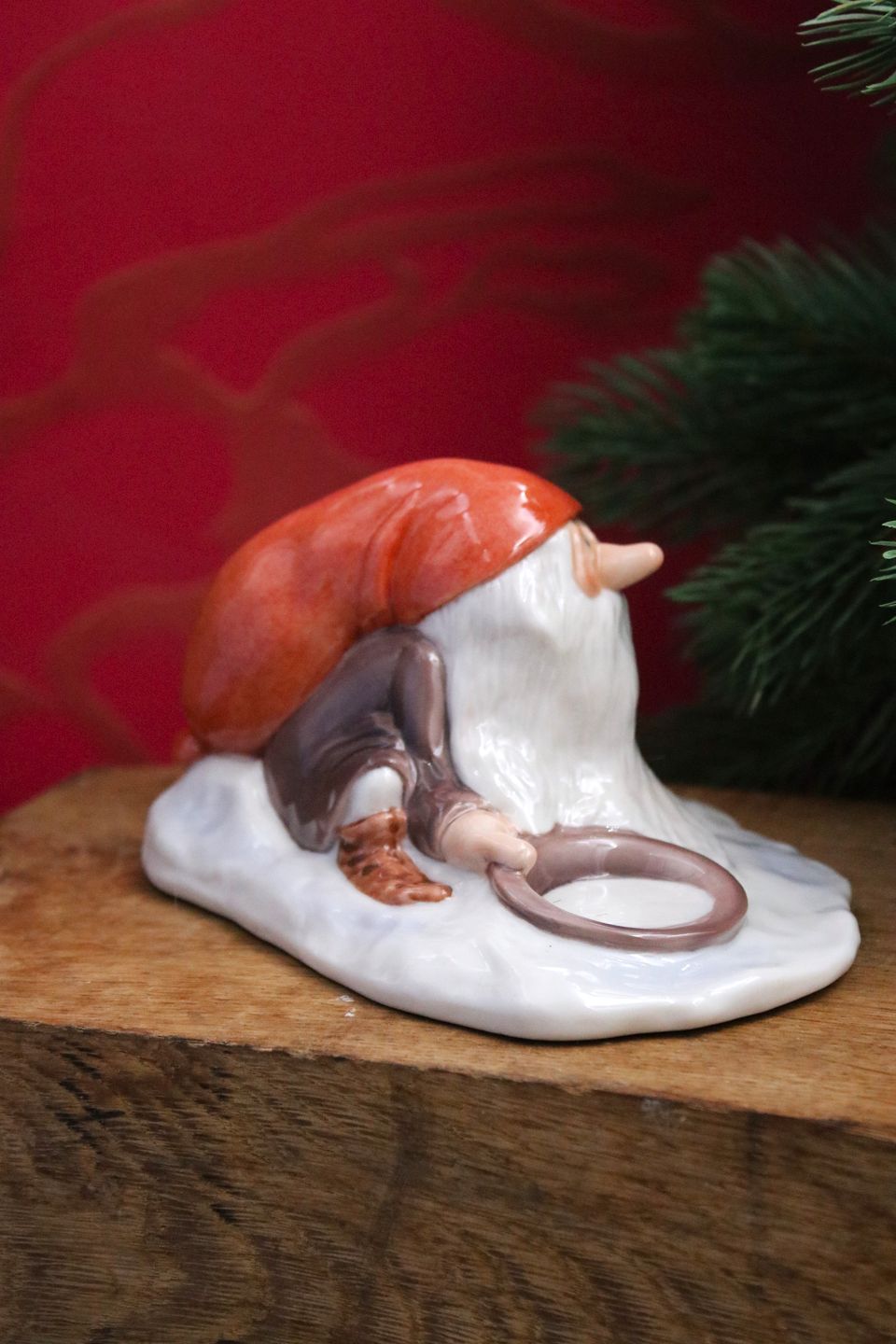 Royal Copenhagen Christmas porcelain figurine of Santa Claus made by Harald Wiberg. H:8cm. / 13.5x10cm. Decoration number: 370.1.sort. Is in good condition.