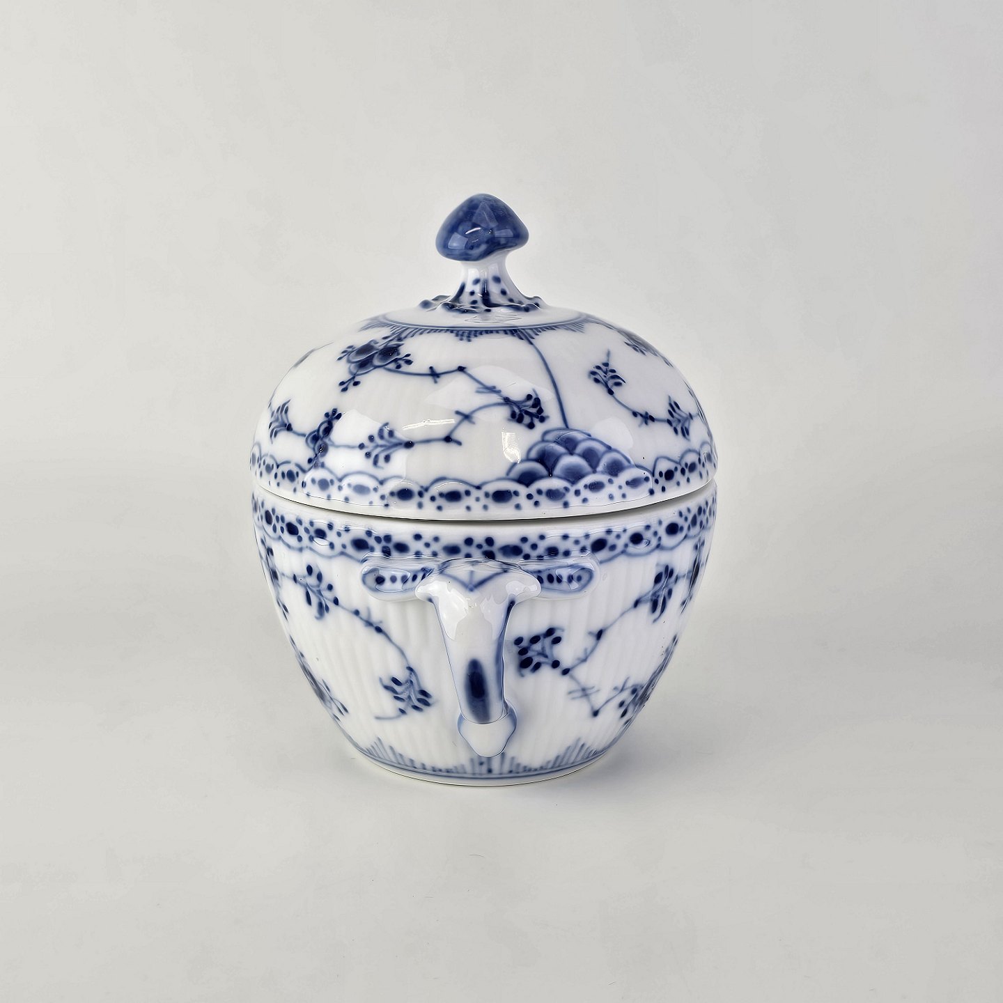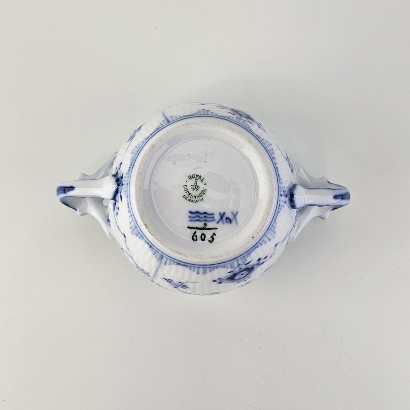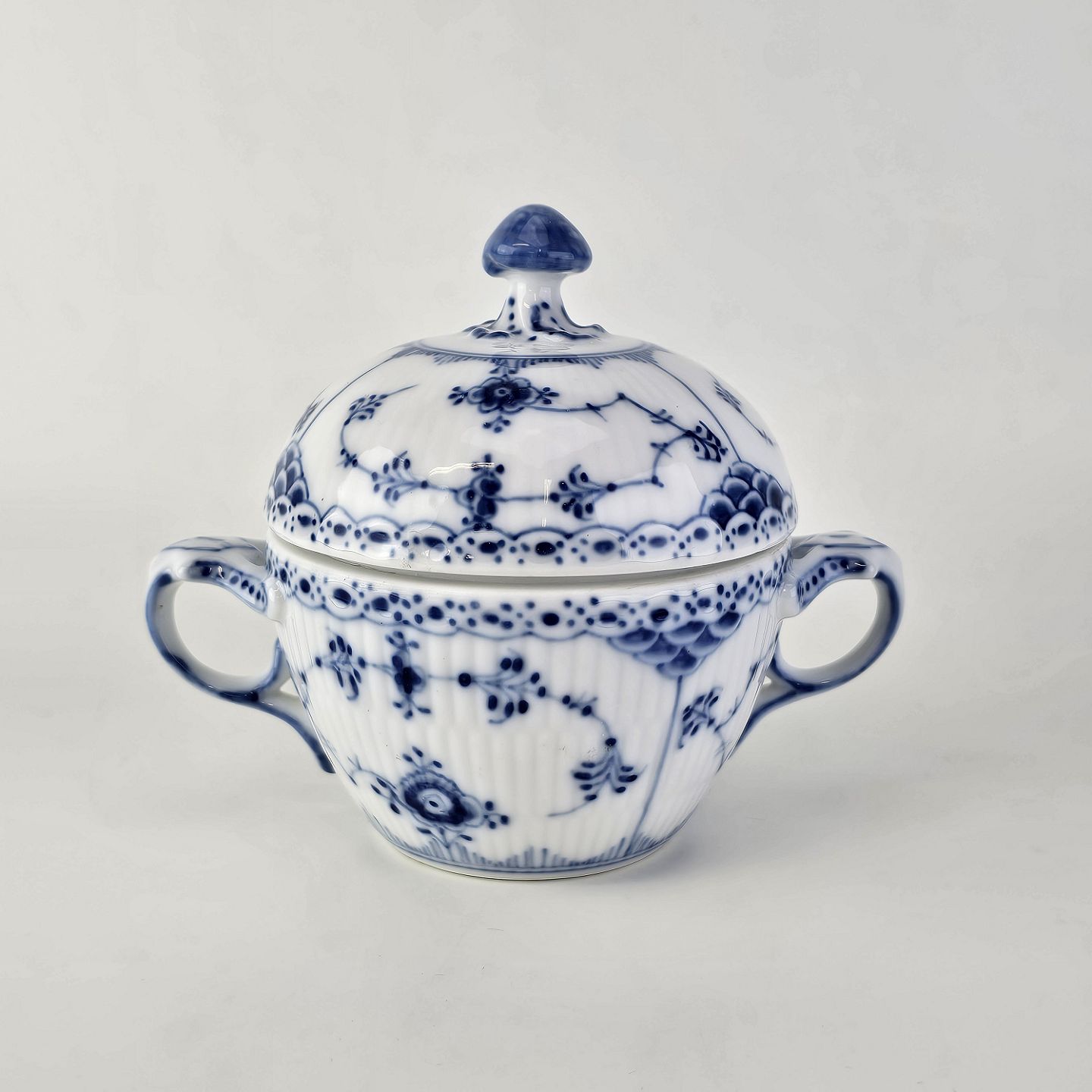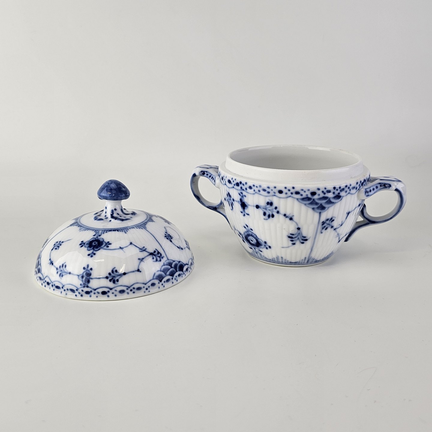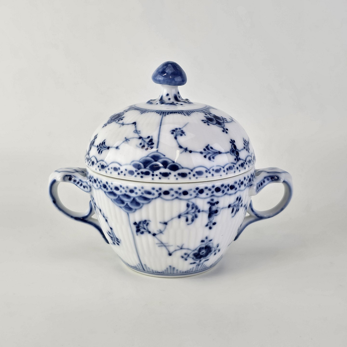 Sukkerskål i kongeligt porcelæn fra stellet Musselmalet HalvblondeNr. 1/605