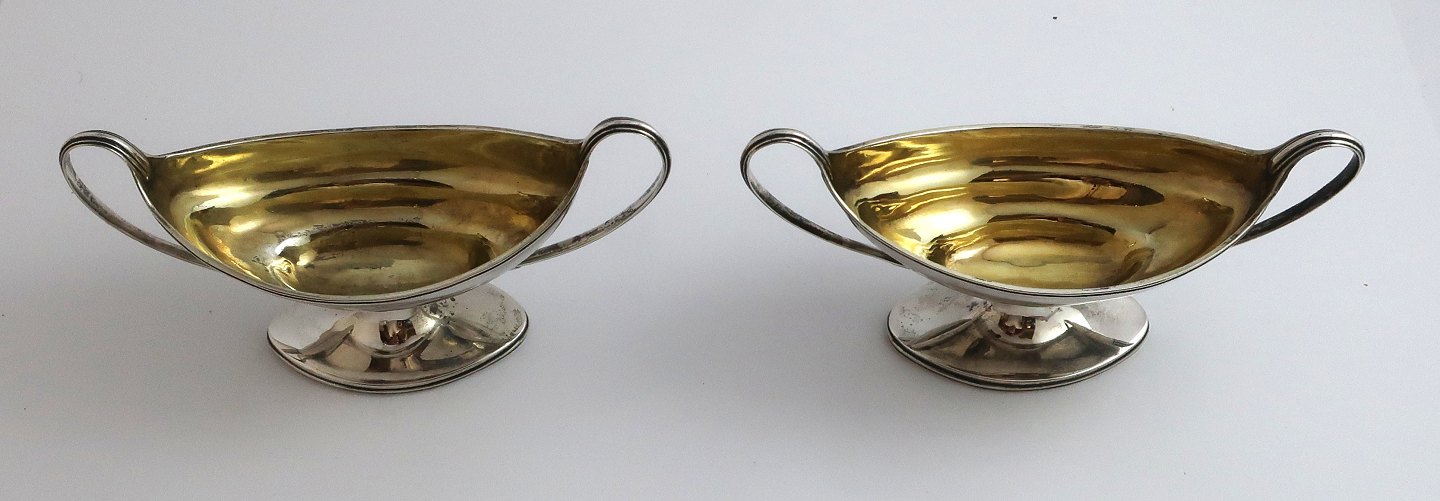 England. Henry Chawner, London (H C). Sterling salt cellar / spice cellar. Gilded inside. Height 7 cm. Width 14 cm. Produced 1787 Dealer