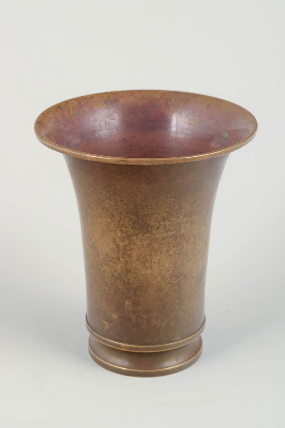 Tumulus bronze vase, 1940s. Denmark.Classic Art Deco vase in patinated bronze with a flaring conical shape and gently curved rim. The warm brown surface has a natural age patina typical of the period.