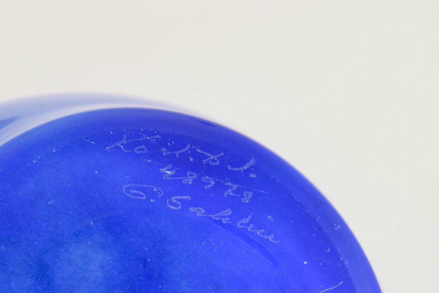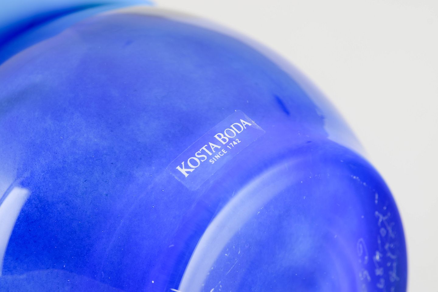 Organically shaped vase in deep blue cased glass with soft, undulating contours—typical of Sahlin’s playful design language at Kosta Boda during the 1990s.