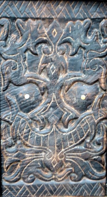 African wooden door with carvings. With bolt on the back. H: 71.5 cm. W: 53 cm.Item number: 28543