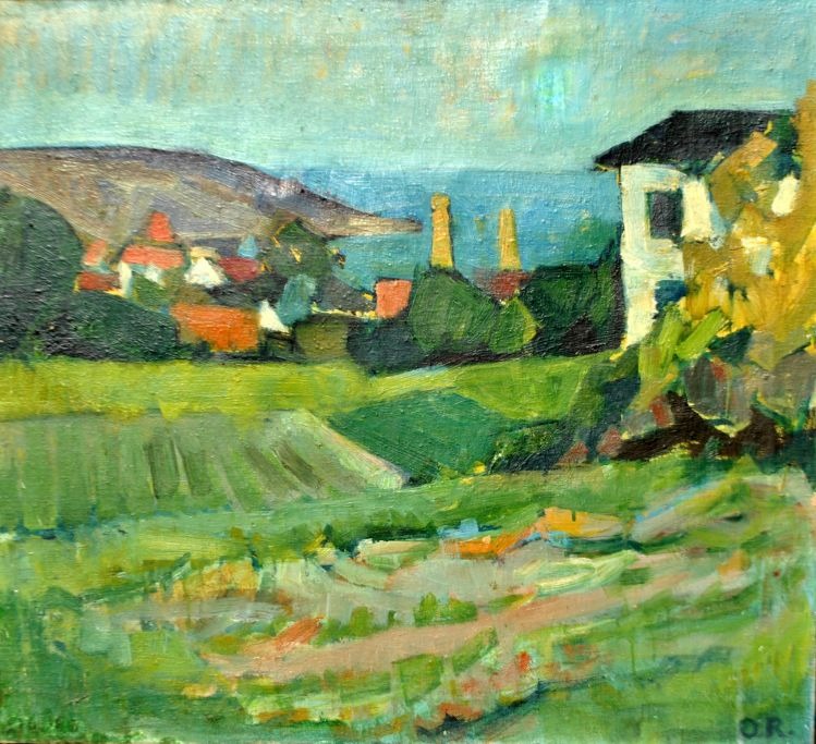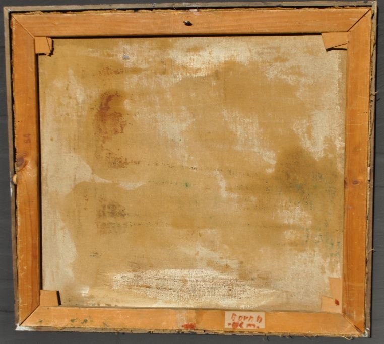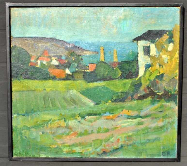 Danish artist (20th century): City area - Bornholm. Oil on canvas. Signed. OR 65 x 72 cm.Framed: 67 x 75 cm.