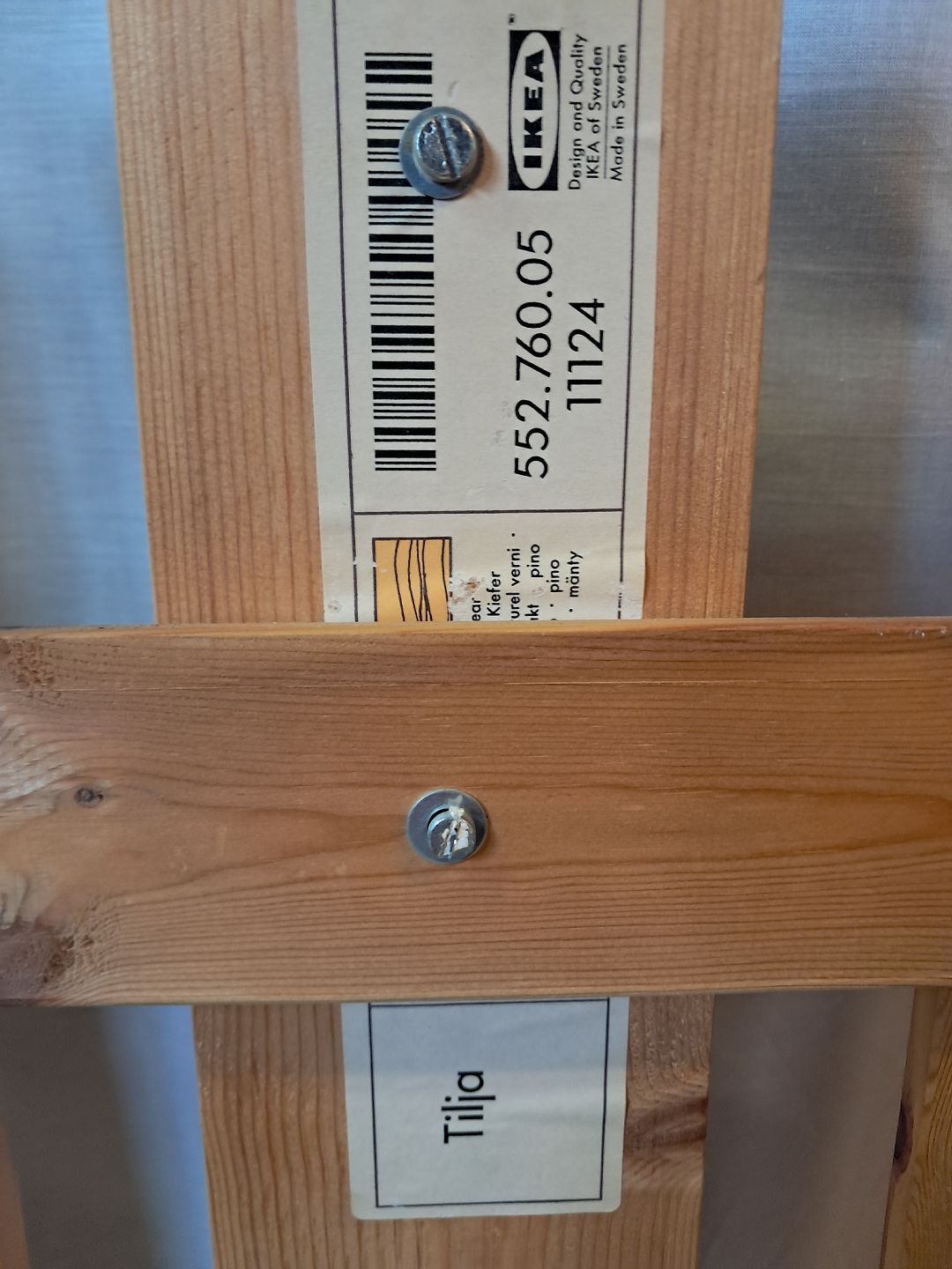 Ikea Tilja knagevæg i massivt fyrretræ, fra 1980erne.Den har brugsspor.