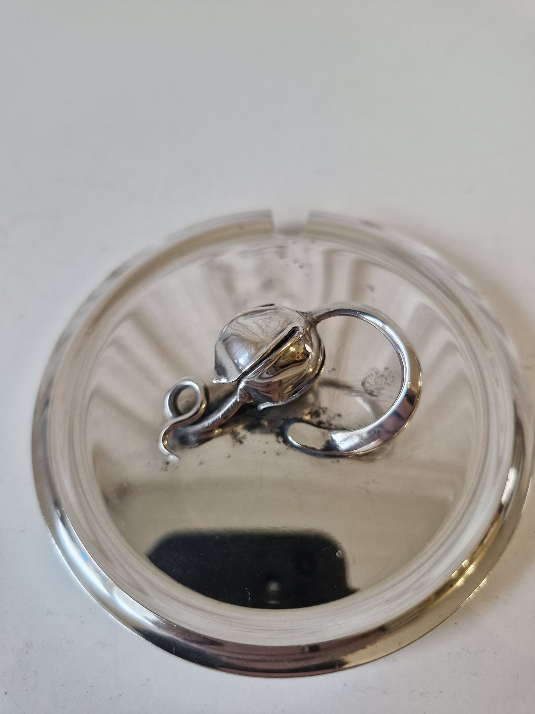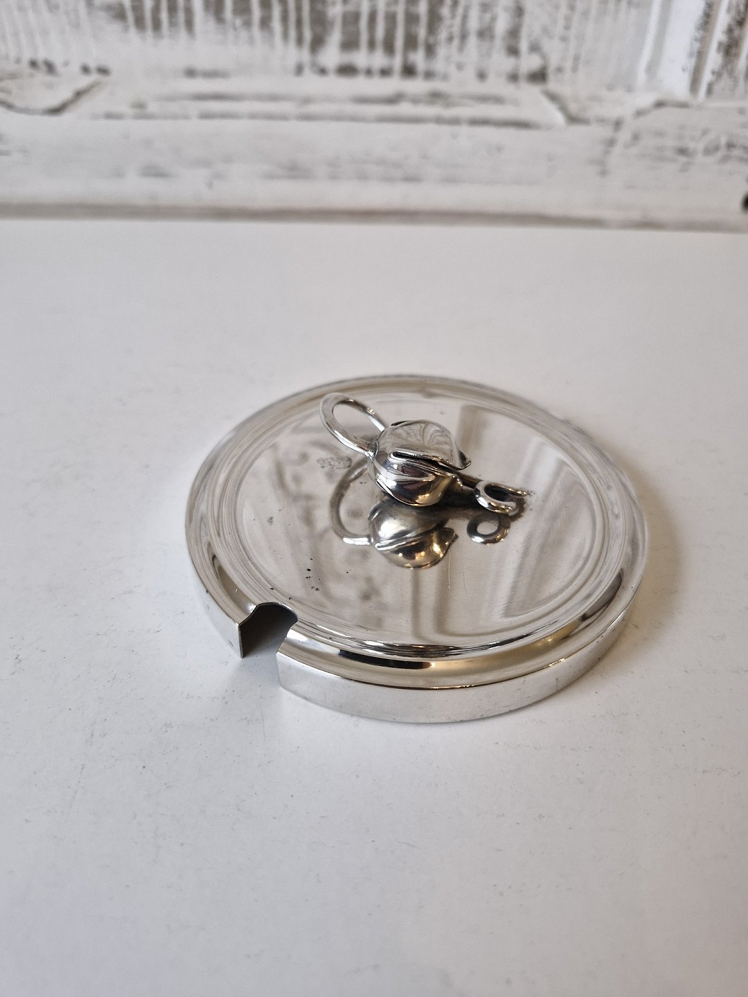 Silver-plated lid for jam jar decorated with rosebud.Stamp: Prima - NS.