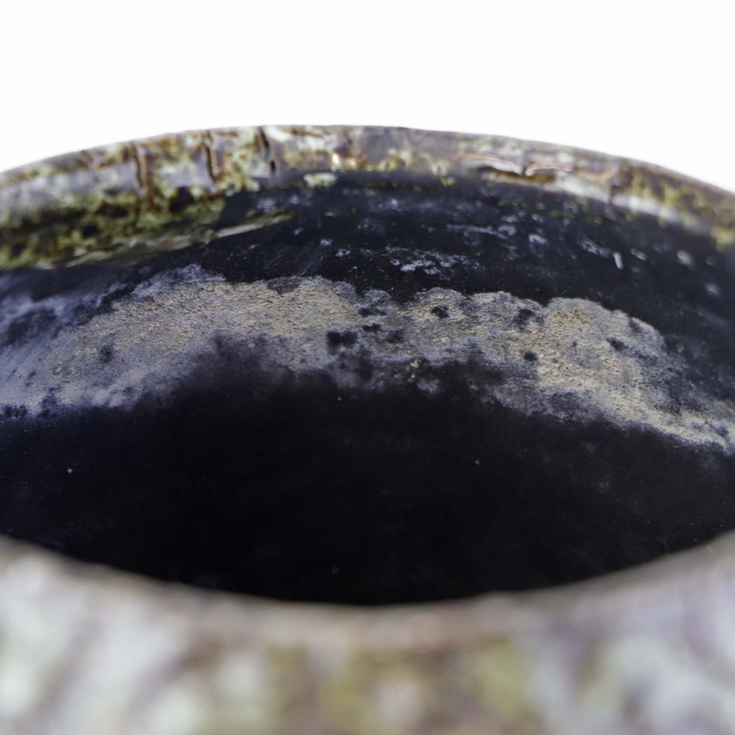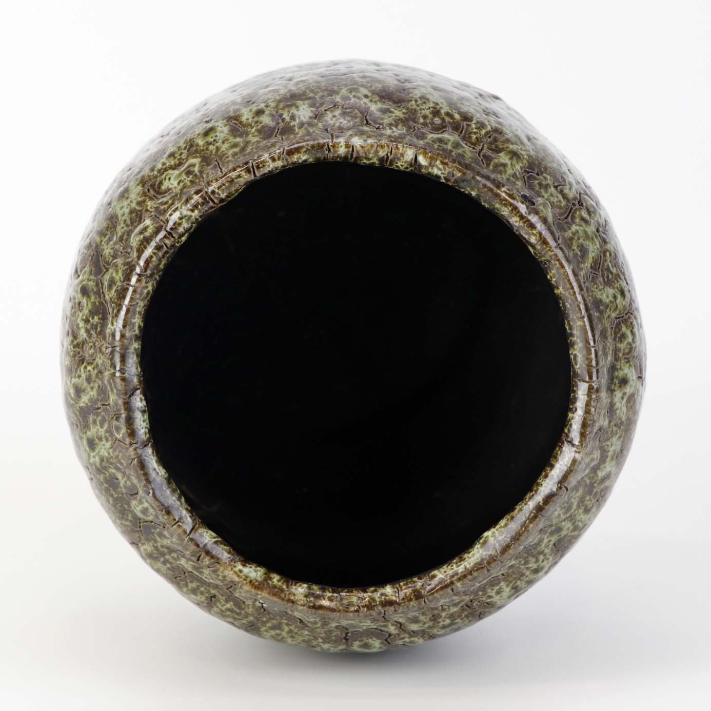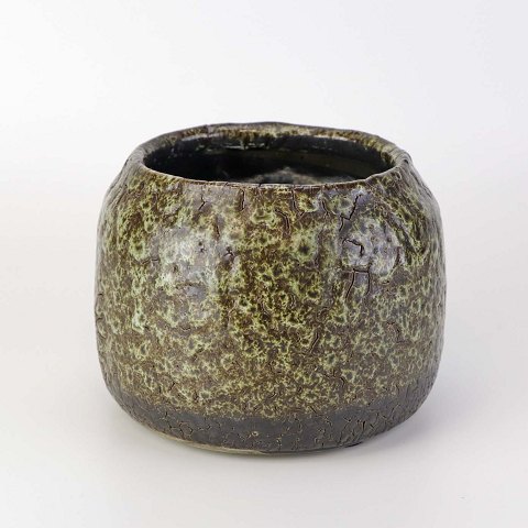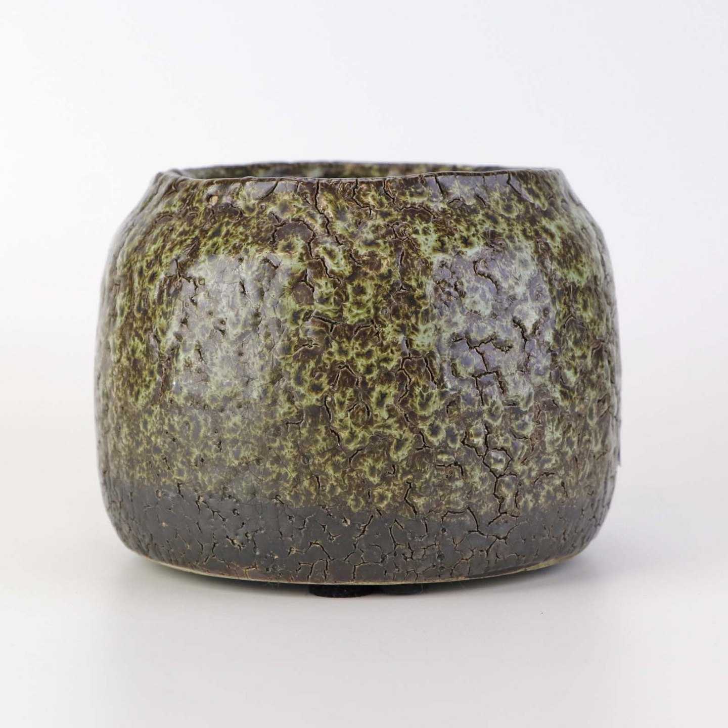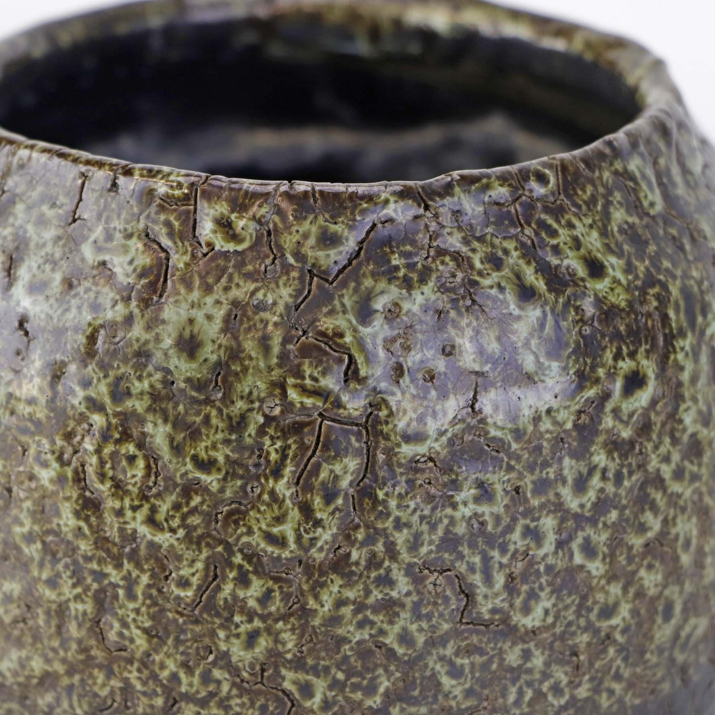 Skjuler til urtepotte i glaseret keramik med krakkeleret mønster i grønbrune farver.Producent ukendt